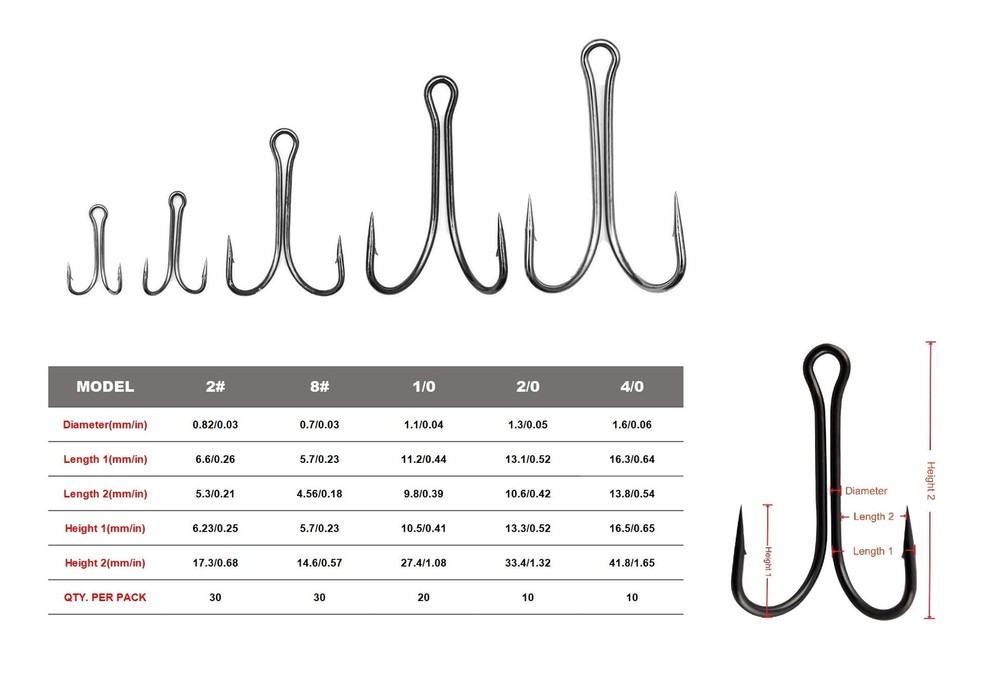 Upgrade your fishing tackle with our premium Double Fishing Hooks Kit, featuring 100 pieces of high-carbon steel hooks in various sizes (2#, 8#, 1/0, 2/0, 4/0) for versatile freshwater and saltwater use. These durable hooks boast a black nickel finish for superior strength and corrosion resistance, ensuring longevity and reliable performance. The wide-gap, needle-point design with perfect angle open shank minimizes snags and maximizes hook-ups, while the sharpened points ensure quick penetration. Ideal for frog-style lures, these hooks are easy to rig and come in a reusable plastic box for convenient storage. Safety note: Keep out of reach of children due to sharp points. 1. 100Pcs/box Kit: 2#(30pcs), 8#(30pcs), 1/0(20pcs), 2/0(10pcs), 4/0(10pcs) with a hard reusable plastic box. 2. Material: Double Hook is made of high carbon steel with black nickle for super strength and corrosion resistance. Strong double frog double fishing hooks. 3. Easy To Use: This double hook is one of the best to fit most frog style lures, can be quickly rigged onto lures without a split ring. They are designed to increase your hookup ratio by a lot especially when fish are not fully committed to the frogs. 4. Perfect Angle Open Shank: Designed with an extra wide gap with points angled perfectly to avoid snags. 5. Sharp Point Hook: The double fishing hooks with sharpened needle points can pierce fast and barbs prevent predators from running away. 6. Please Note: The Hooks are really sharp, so care should be taken when handling them and DO NOT Put it on the place where children can take it easily.