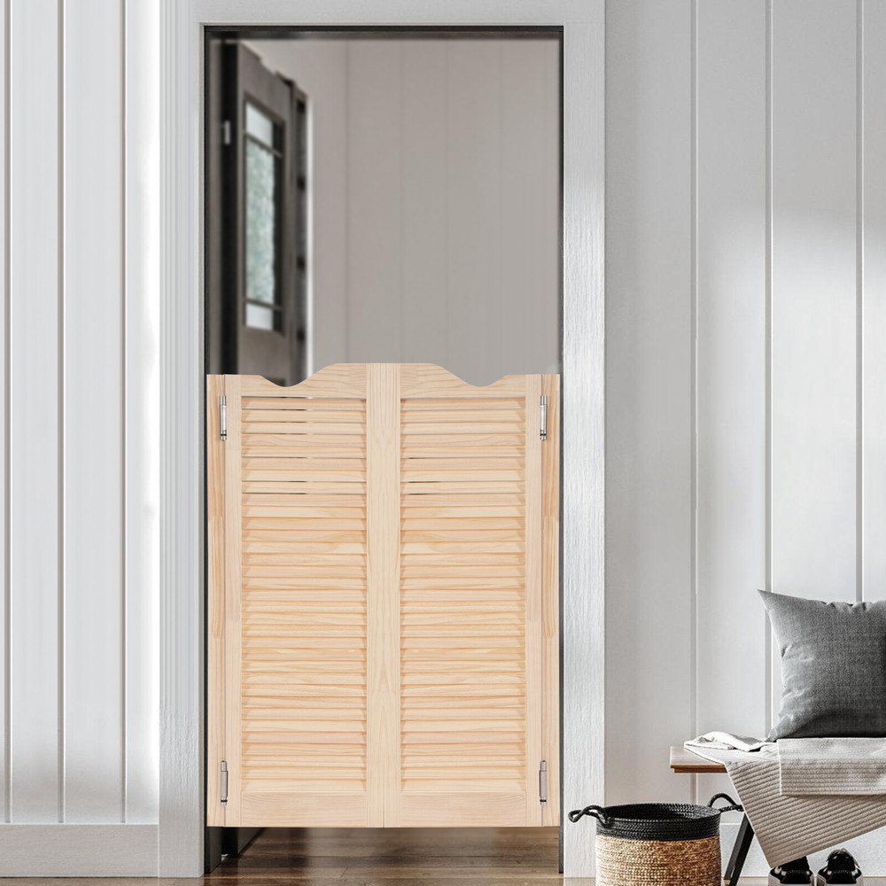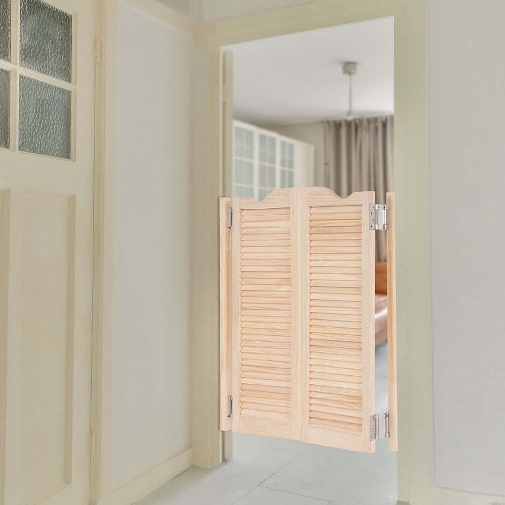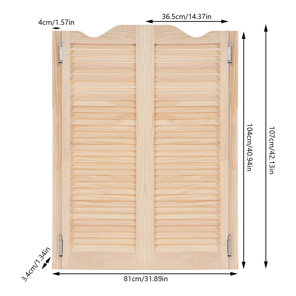 Specification Color: Wood Color Style: Countryside Material: Pine Wood, Aluminum Alloy Process: Polishing Indoor/Outdoor Use: Indoor Installation Required: Yes Mount Type: Wall-Mounted Each Doorpost Size: 4*3.4*104cm/1.57*1.34*40.94in Total Width: 81cm/31.89in Each Door Size: 36.5*3.4*107cm/14.37*1.34*42.13in Package Size: 108*45*8cm/42.52*17.72*3.15in Gross Weight: 14kg/30.86lbs Net Weight: 13kg/28.66lbs Package Included 1Pair* Partition Doors 4 * Hinges Other Accessories for Installation 36.5*3.4*107cm Wood Color Double-door Partition Door Wall-Mounted Partition Door Description Entering an extraordinary space, the magic of space is brought by our double-door partition door. Our product combines aesthetics and practical functionality to help you easily plan your room layout. The product uses high-quality materials to provide you with a safe and healthy environment. Rural style design can adapt to various decoration styles and enhance the overall style. Upgrade now and enjoy a high-quality life! Key Features Sturdy and Reliable: The product is mainly made of high-quality pine wood and does not use paint or other coatings , which is high-strength, wear-resistant , and long-lasting and does not release harmful substances, allowing you and your family to use it with assurance. User-friendly Design: The design of the double door can open and close 180 degrees without rebounding, bringing more convenience to use. In addition, the smooth hinges do not make too much noise, providing you with a quiet working or resting environment. Useful Assistant: It is an entrance door to provide privacy for your bar counters, corridors, gardens, etc., isolating them from outside disturbances. It can also be used to divide the space into different functional areas, making the layout logical and practical. Aesthetic Appearance: The pleasing wood color and louver patterns give it a comfortable and aesthetic visual experience, adding a natural atmosphere to the indoor space. Simple Installation: Simple construction and complete accessories allow you to complete the installation and start using it in a short time. Easy Clean-Up : The surface of the product is smooth and the structure is simple. You can easily use a soft cloth to wipe it clean. Ideal Gift: With a fresh appearance and complete functions, this item can be regarded as a holiday or housewarming gift for parents, friends, and lovers so that they can enjoy a more convenient life. Customer Service: We aim to provide quality products and services. If you have problems, please feel free to contact us. We will reply and solve the problem for you as soon as possible. Details Solid Doorposts: It is convenient for you to install and can also prevent damage to the wall. Reserved Grooves: They can help you quickly determine the hinge position and ensure a stable installation. Application This product can be widely used in corridors, kitchens, clubs, libraries, checkout counters, offices, cafes, shopping malls, bars, reception rooms, clubs, living rooms, balconies, terraces, and other scenarios. Installation Steps for Hinges 1. Hands-on the doorpost to make holes in the wall and install expansion bolts. 2. Fasten the hinges to the doorpost and the door. 3. Insert an Allen key into the adjustment hole to each hinge, and insert the pin. 4. Adjust the bottom hinge in the same way. 5. All hinges must be installed at the same time. Specification Color: Wood Color Style: Countryside Material: Pine Wood, Aluminum Alloy Process: Polishing Indoor/Outdoor Use: Indoor Installation Required: Yes Mount Type: Wall-Mounted Each Doorpost Size: 4*3.4*104cm/1.57*1.34*40.94in Total Width: 81cm/31.89in Each Door Size: 36.5*3.4*107cm/14.37*1.34*42.13in Package Size: 108*45*8cm/42.52*17.72*3.15in Gross Weight: 14kg/30.86lbs Net Weight: 13kg/28.66lbs Package Included 1Pair* Partition Doors 4 * Hinges Other Accessories for Installation Notes Please measure your door opening and select the door size closest to your opening width. For ease of installation, the size of the door opening needs to be slightly larger than the overall width of the product. Please do not expose the product to sunlight or soak it in water for a long time. Please allow the slight color difference caused by the shooting light and 1-3cm error due to manual measurement, and make sure you do not mind before ordering. Payment Delivery details Terms of sales About us Contact us Payment We accept ebay payment 。 Fees such as import duties, taxes are not included in the item price or shipping costs. These charges are the buyer's responsibility. Delivery details Shipping: 2-9 working days to: USA Terms of sales We maintain high standards of excellence and strive for hundred percent customer satisfaction. Feedback is very important to us. We hope that you contact us immediately before you give neutral or negative feedback, so that we can address your concerns. It is impossible to address issues if we do not know about them! About us Your satis faction is our ultimate goal. We work hard to earn your trust and future business. Our certified technicians have tested each item before shipping. The unit comes with 1 year limited warranty on all manufacturing defects. a) If you receive a defective item, you may return it or ask for a discount. Please contact us within 14 days after you receive the package. b) What you returned must be intact and in its original packaging as re? u. Customer is responsible for shipping costs of the returned item. c) We will cover the cost of shipping back t with the shipping rate indicated in the registration page. We will send you a new unit or refund the full payment you paid. Thank you. Contact us Business Hour Business Hour: Monday To Friday: 8:30 AM to 5:00 PM (Beijing China time) Due to time zones, our reply to your questions may not be immediately. But within above working time, we will reply your email within 24 hours. If it's non-workdays, please kindly be patient and wait till Monday. Pl