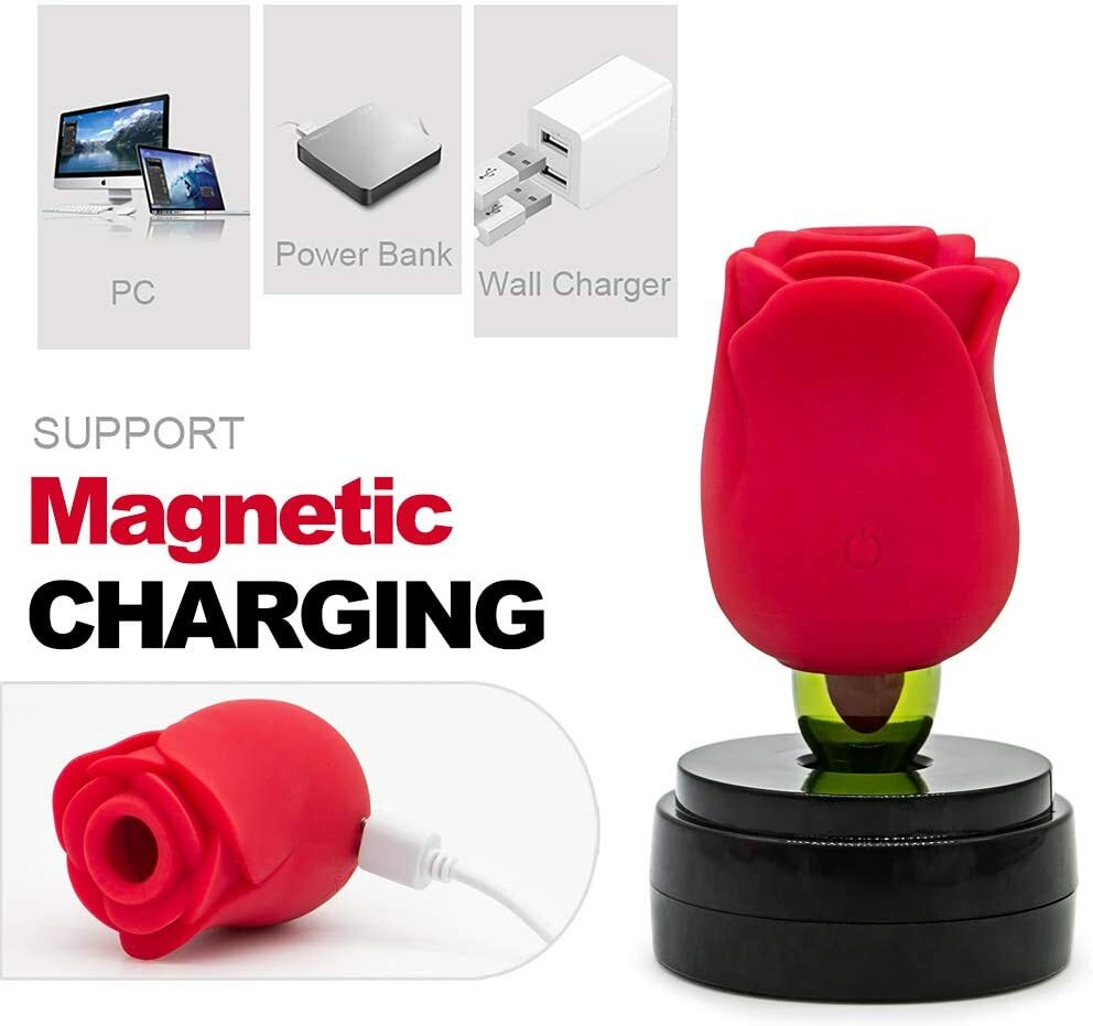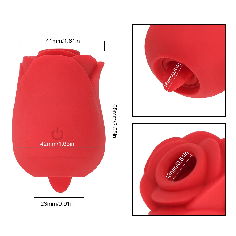 100% new and high quality Life waterproof,easy to clean Material: Medical grade silicone,ABS Pattern Setting: slight sucking+6 vibration/Licking modes Power Source: USB Magnetic Charging Charging time: 2h Working time: 0.5-1.5h Noise: Less than 60db Size: 2.68inx1.77in Color: Red Package: discreet shipping , not any sensitive words on package Package List: 1 x rose vibrator with box 1 x charge cable 1 x user manual How to Use: ---press and hold the power button for 3-5s to turn on/off ---then click to change frequencies Notice: --- Clean with soap before and after every using. --- Do not use cleaners containing alcohol, petrol or acetone --- Do not place in boiling water or soak ---Do not use on swollen or damaged skin ---pls get full charged before first using.