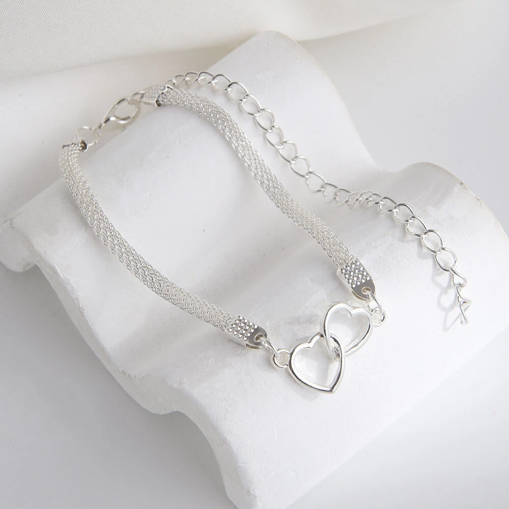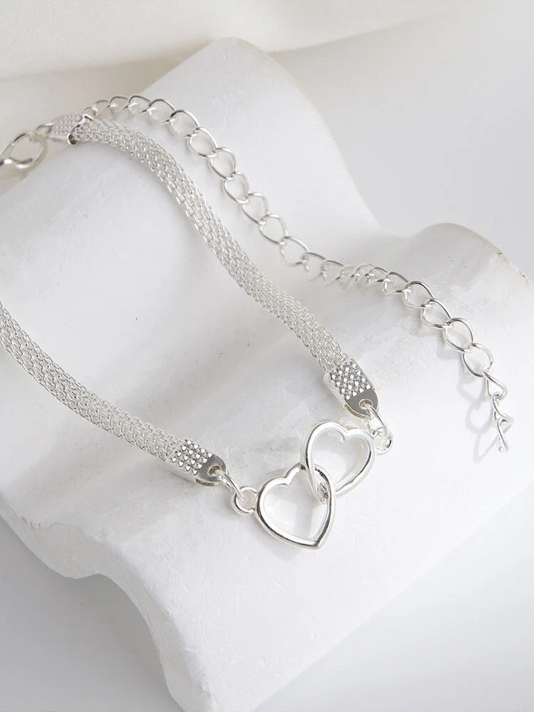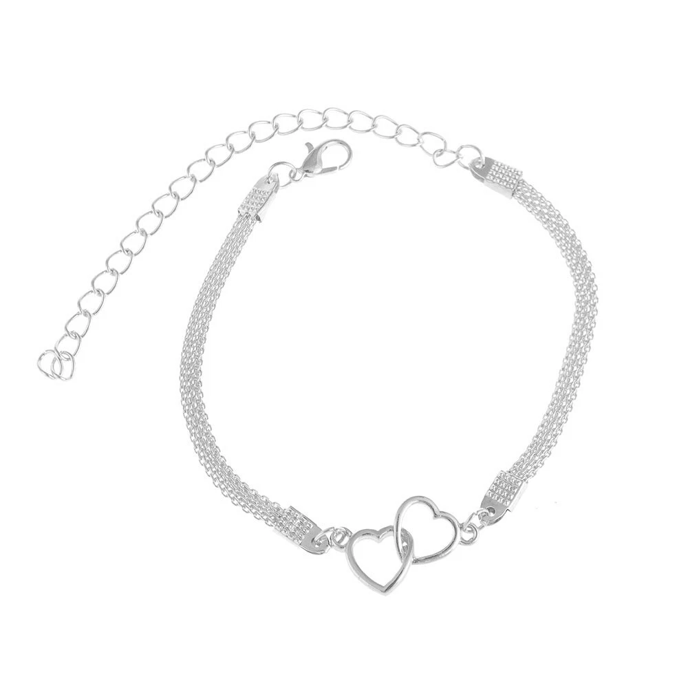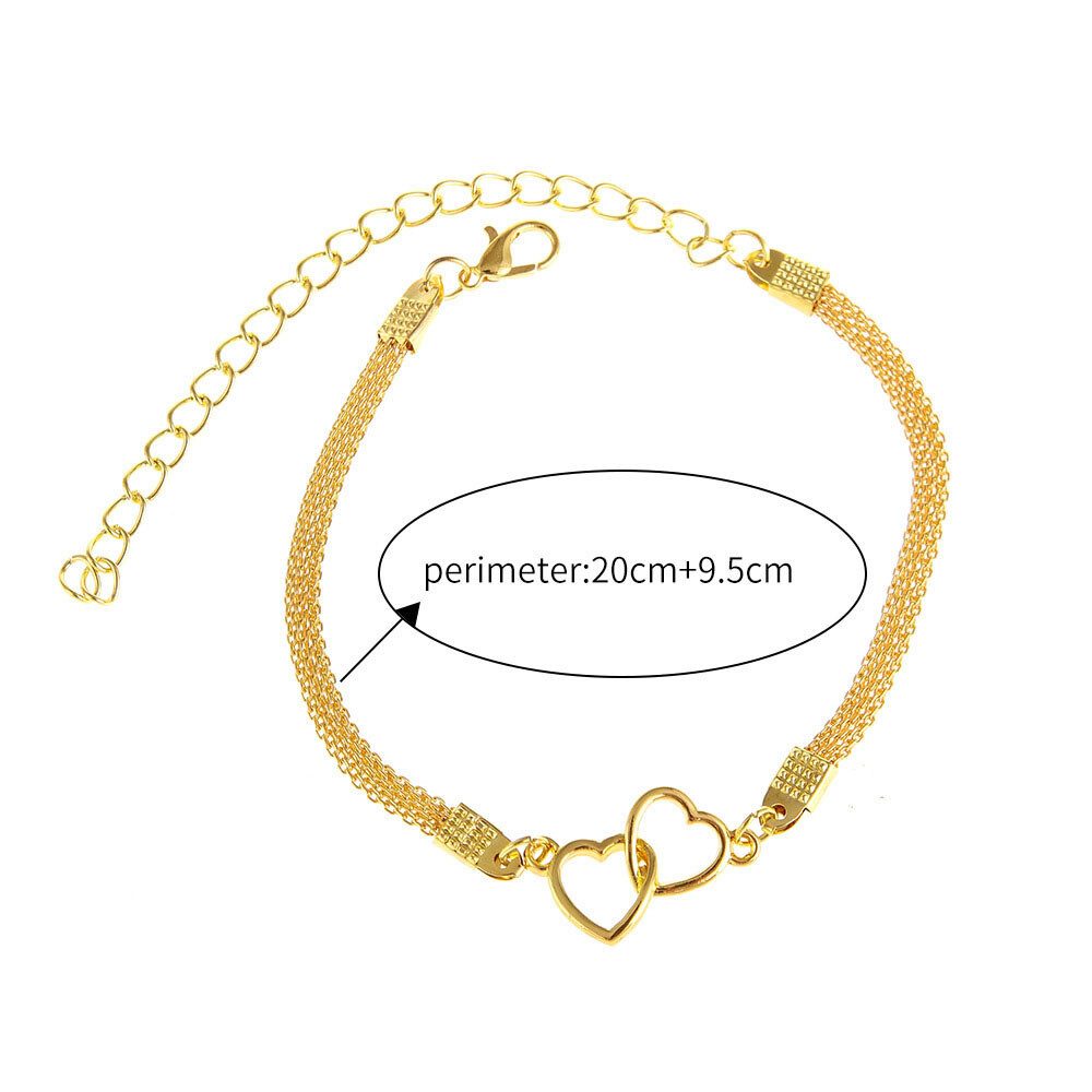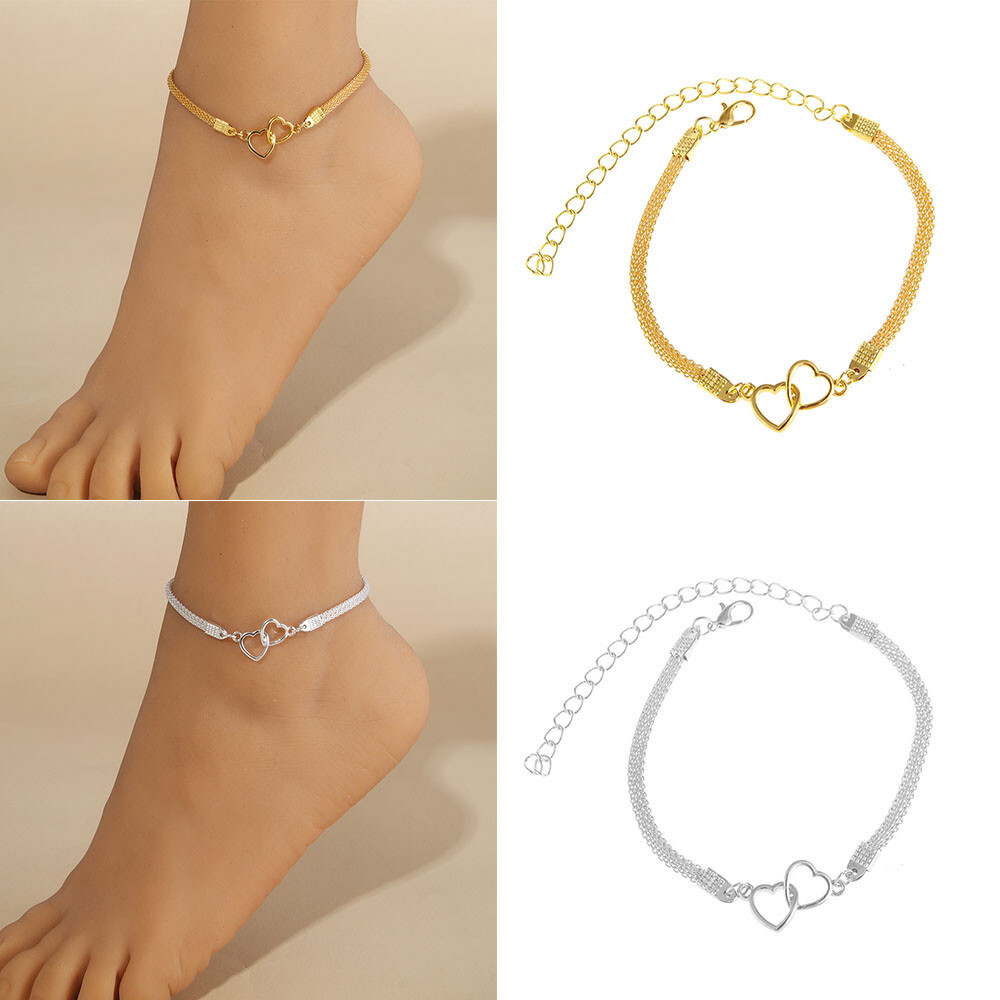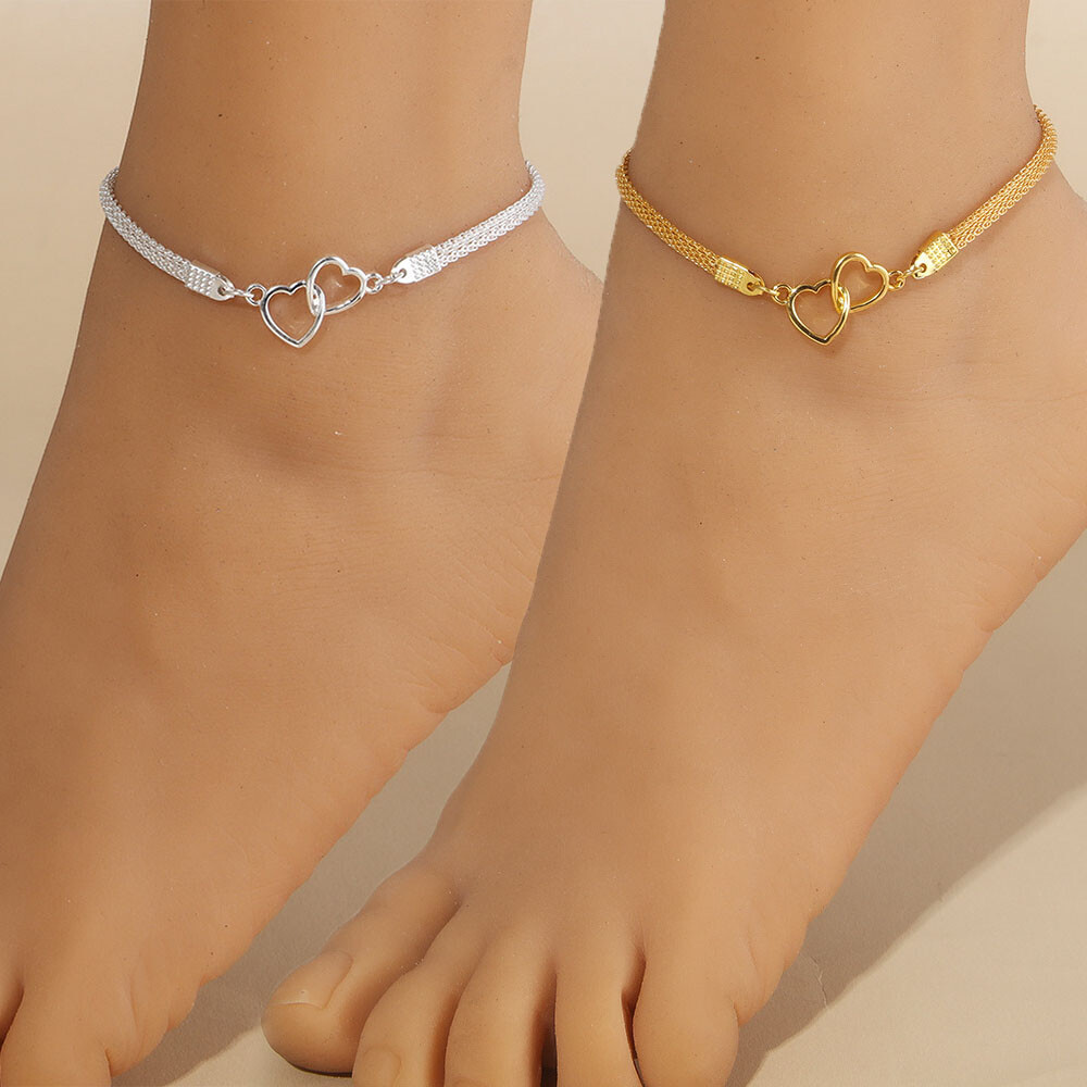 Double Heart Alloy Anklet Bracelet for Women Foot Jewelry