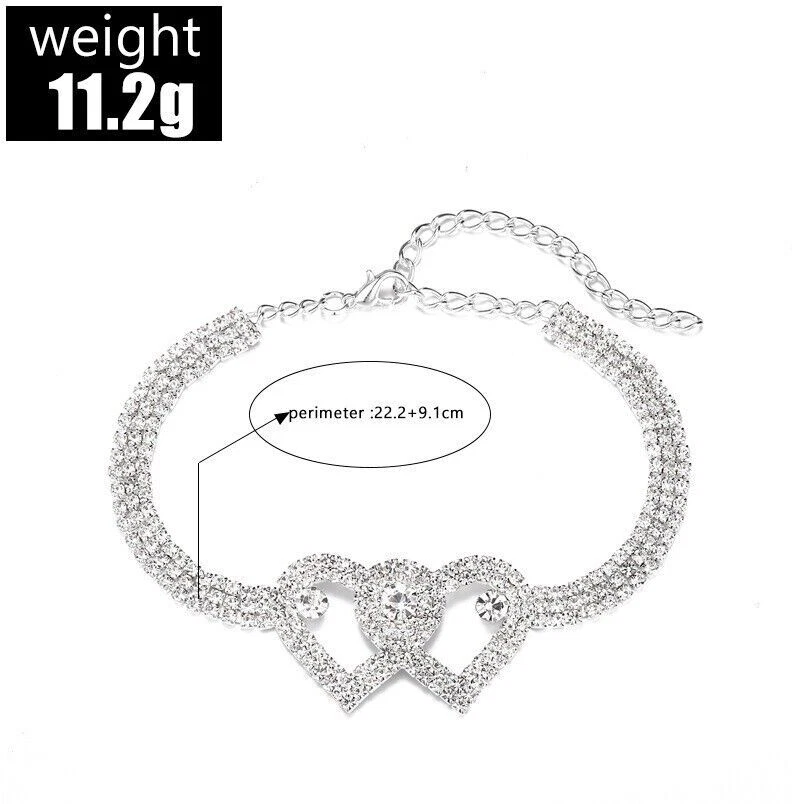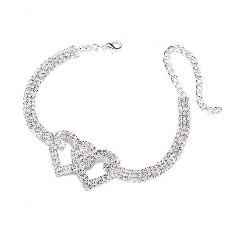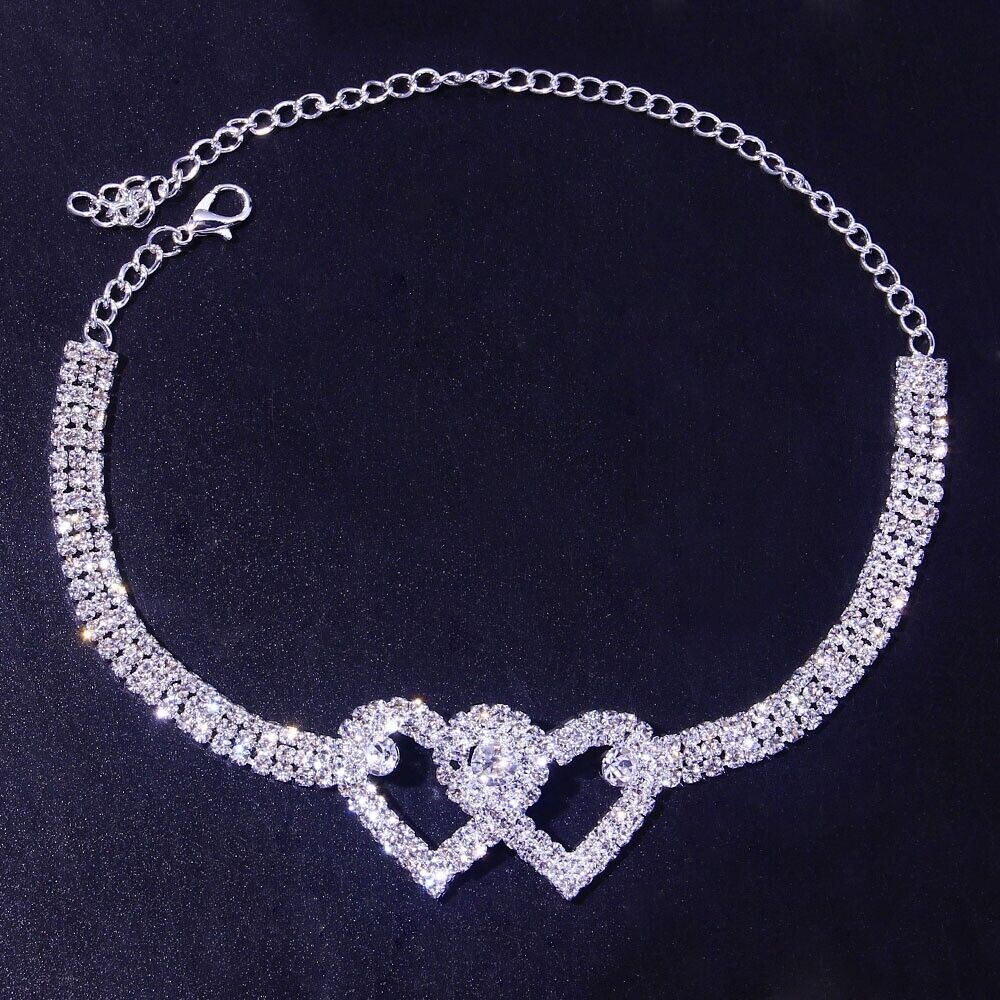 Double Heart Crystal Ankle Chain Bracelet Love Bling Barefoot Jewelry
