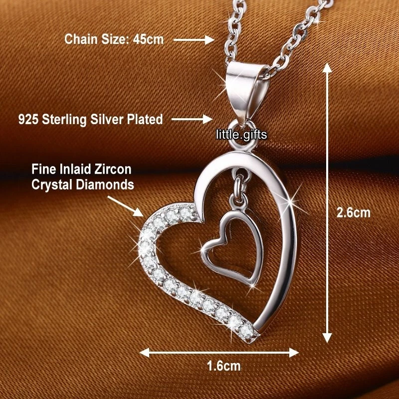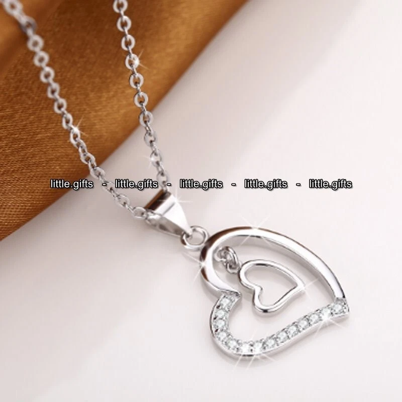 Double Heart Pendant Necklace This is a unique double heart shaped pendant to show your loving and unbreakable bond. A high-quality layered pendant, with a small inner heart and a larger outer heart. With 14 small sparkling crystals on the outer side of the heart. The necklace has a high-quality finish and is suitable for everyday wear. The necklace sparkles and shines beautifully. The pendant comes with 16-inch chain with 2-inch adjustable extender. So maximum length is 18 inches. This is a unique keepsake gift which is suitable for any occasion . Comes with a Free Organza Gift bag . Condition: Brand New. Pendant Size: 2.6cm High by 1.6cm Wide. Chain Included: Yes. Chain Size: 16 inch + 2 inch Adjustable extension (Total 18 inch) Shine & Quality: High. Included: Organza Gift Bag. Delivery We offer Fast & Free UK delivery. All items packed and posted within one working day of purchase. Contact Us If you have any queries, please feel free to contact us through eBay messages and we will be happy to help. We respond to all queries within one working day.