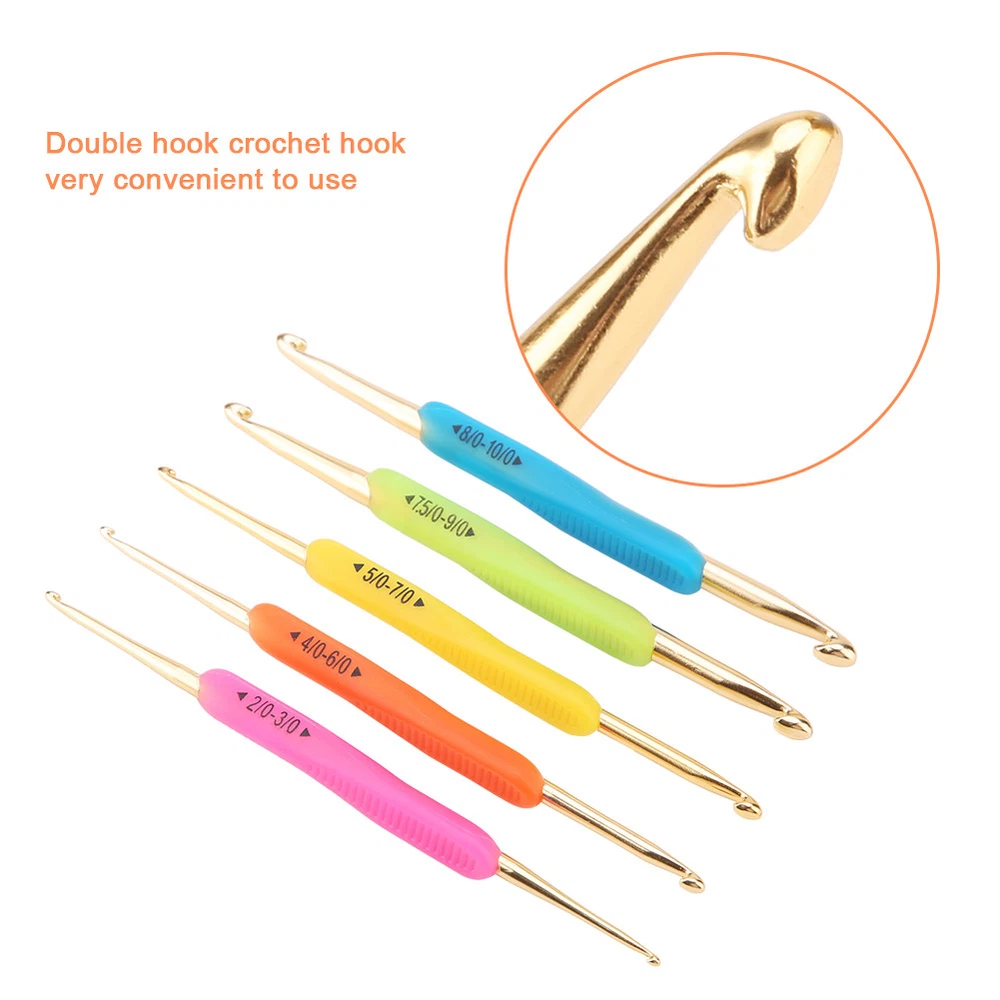 Feature: 1. This crochet hook is equipped with double head of different sizes, very convenient to use. 2. The handle of crochet hooks are made of rubber and followed ergonomic design, it makes you crochet for hours without fatigue, feeling pain or cramping on hands or thumbs. 3. The needle is made of aluminum, which has been polished for a smooth finish and have no rough edges to avoid hurting your hand,allowing the yarn to glide effortlessly over it. 4. Every hook is printed with both letters and numbers, so you will never be confused which hook works best for which loop. 5. A great gift for your mom, wife, or girlfriend who like knitting. Specification: Features: This crochet hook is equipped with double head of different sizes, very convenient to use. The handle of crochet hooks are made of rubber and followed ergonomic design, it makes you crochet for hours without fatigue, feeling pain or cramping on hands or thumbs. The needle is made of aluminum, which has been polished for a smooth finish and have no rough edges to avoid hurting your hand,allowing the yarn to glide effortlessly over it. Every hook is printed with both letters and numbers, so you will never be confused which hook works best for which loop. A great gift for your mom, wife, or girlfriend who like knitting. Specification: Material: TPR + Aluminum Quantity: 5 PCS Weight: Approx.42g/1.5oz Total Length: Approx.13.5cm/ 5.3in Color: Random Specifications: 2/0-3/0 4/0-6/0 5/0-7/0 7.5/0-9/0 8/0-10/0 Hook Head: 2/2.5 2.5/3.5 3/4 4.5/5.5 5/6 Package List: 5 * Crochet Hooks Note: Please allow 1-2 mm error due to manual measurement. Because of the difference of light and screen, the color might be a little bit different from the picture. 1. Our listing price includes the value of goods,packaging cost,and export taxes,not including international duties. 2. duties,taxes,and charges are not included in the item price or shipping fee. 3. T he duties are buyers' responsibility .Please check with your country's customs office determine what these additional costs will be prior to your purchase. 4. All disputes arising from the duties will be submitted to ebay for solution. 1. Any questions, pls. contact us via ebay message or email us. We will reply your message within 48 hours. If you do not receive our reply within 48 hours, pls. post a message again because sometimes our message system may block some emails. 2. If you are satisfied with our service, pls. kindly leave us a positive feedback and give us the Detailed Seller Rating with all " 5 " in very area 3. Our aim is to provide Level Customer Service, your recognition will encourage us greatly and serve you better. We strive to keep all our customers satisfy. We will do our up most to exceed your expectations in customer service, communication and dispatching of your orders.