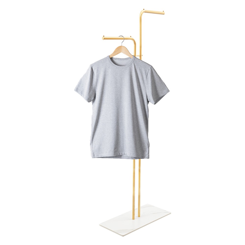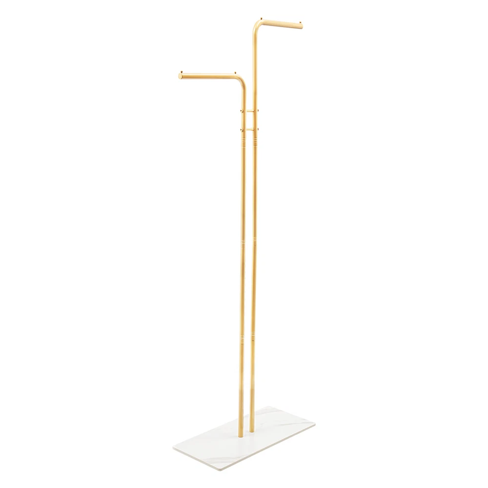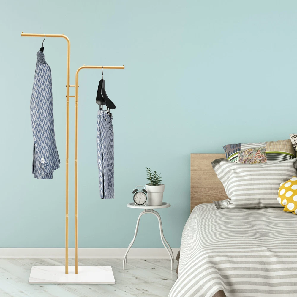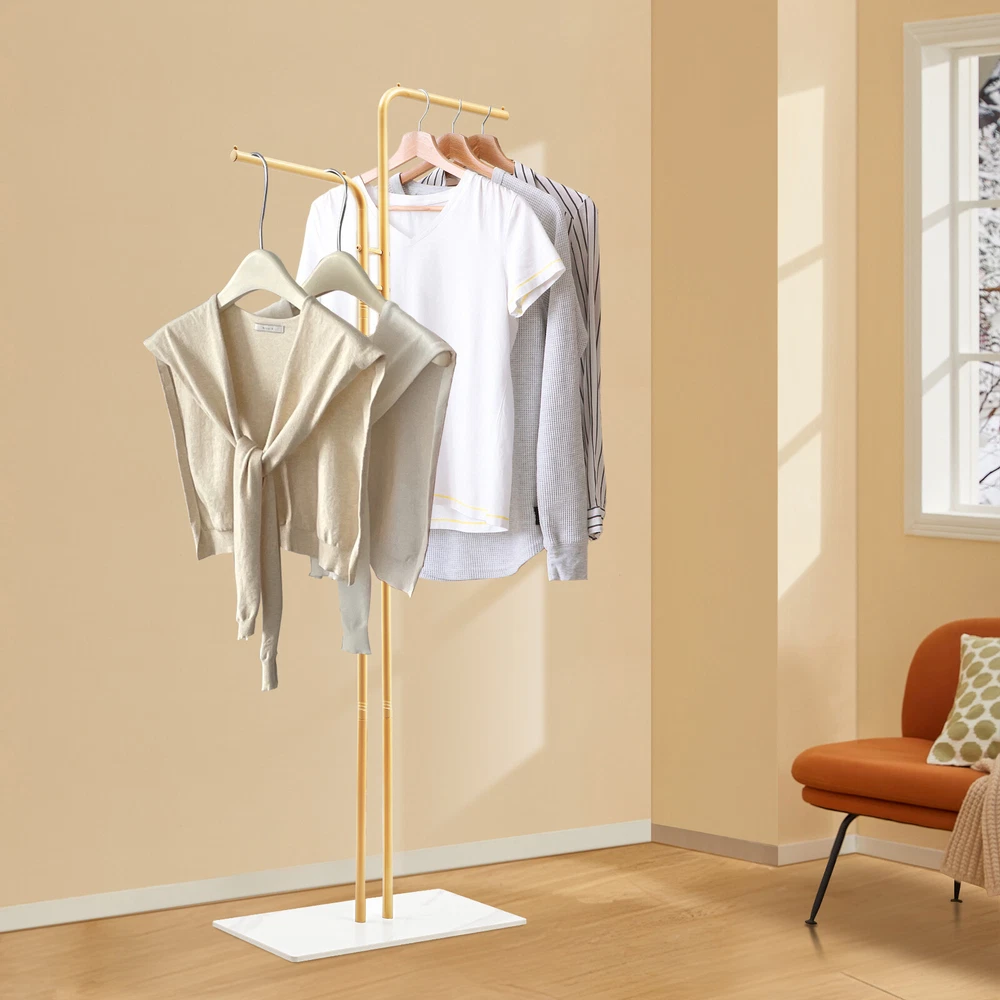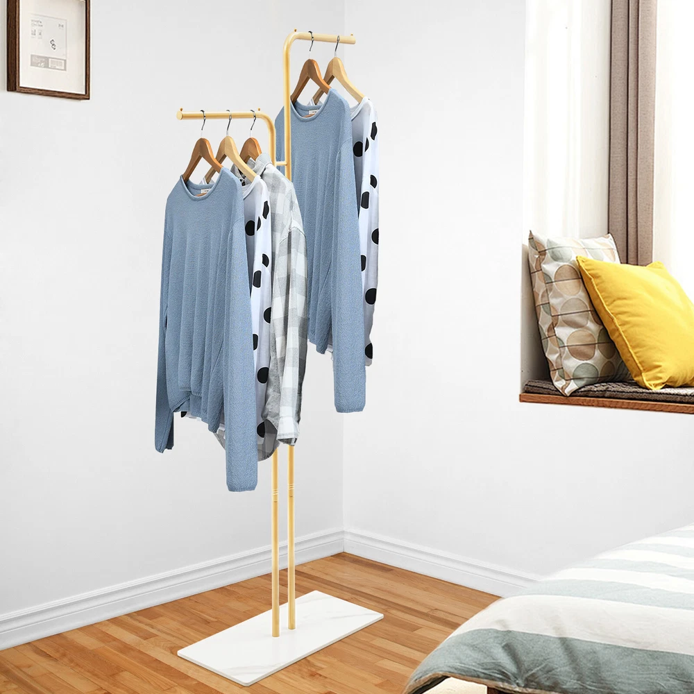 Double L-Shaped Metal Coat Rack with Slate Base and 8 Non-Slip Pads