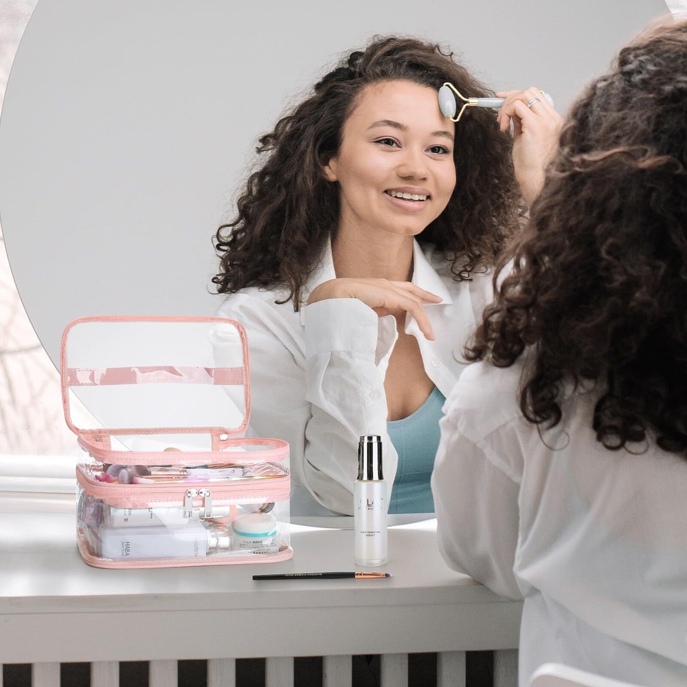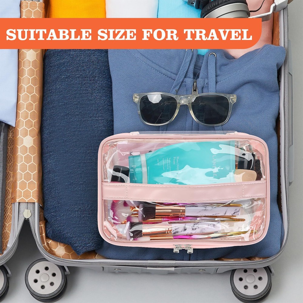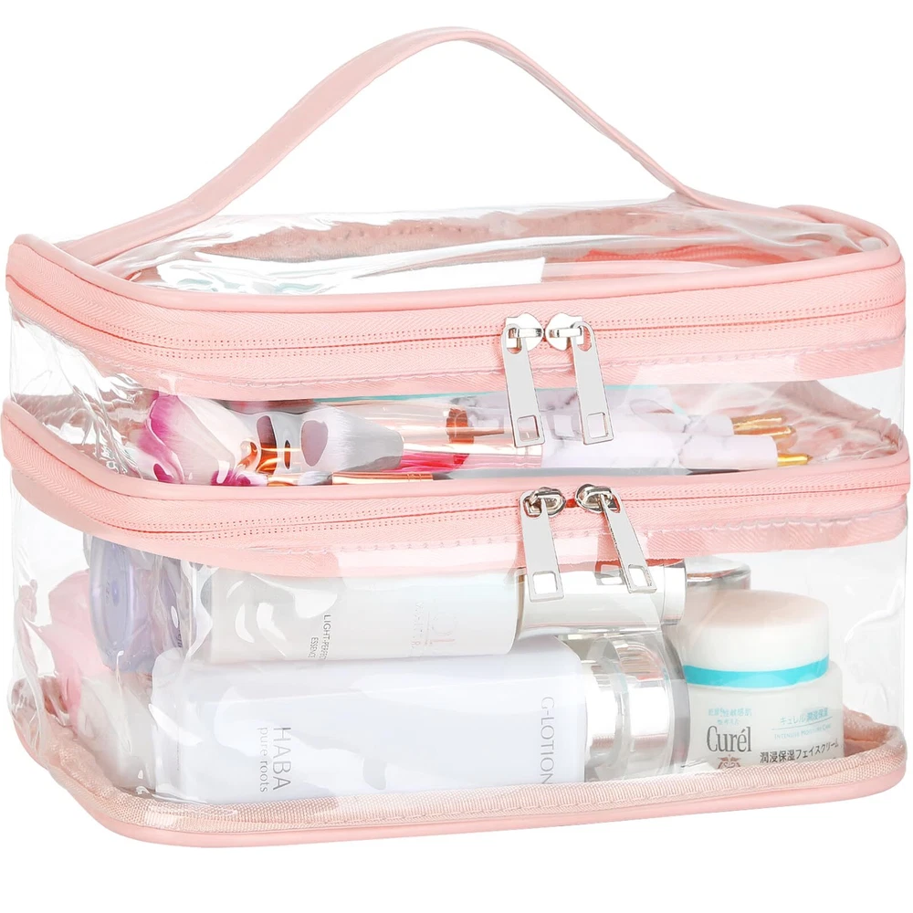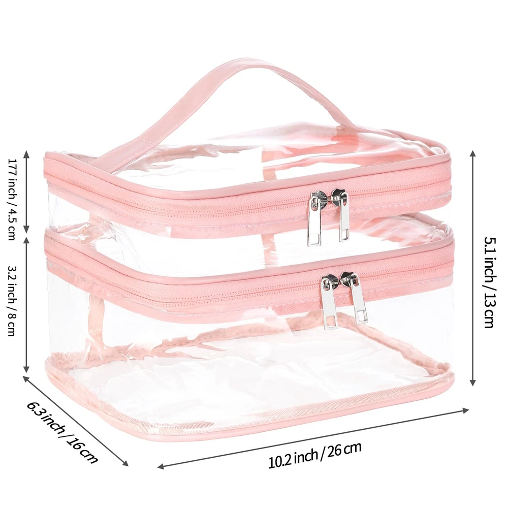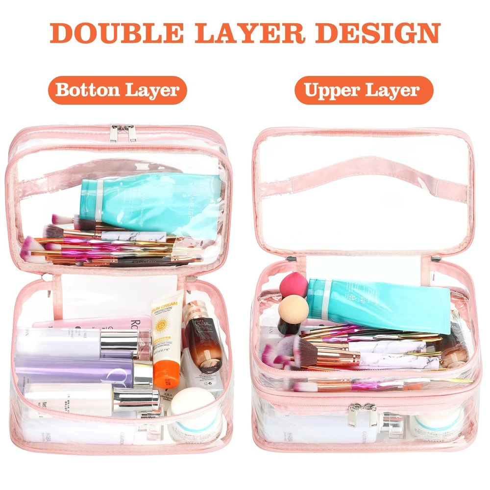 HAOGUAGUA Double Layer Clear Cosmetic Bag Makeup Bag, Waterproof Travel Toiletry Bag, Transparent PVC Pouch Organizer (Pink Large) QUALITY MADE - Made from durable and clear PVC material,Reinforced stitching seam and sturdy double zipper make sure this clear makeup bag can bear long term use without tearing on the seam DOUBLE LAYER DESIGN - This clear makeup bag features double layers, which can be pulled out respectively. You can use the top and bottom layers for different shapes of makeup, or for dry and wet separation, making your makeup better organized LARGE CAPACITY - 9*6.7*4.7inch/233*17*12cm, have enough space to storage your makeup and cosmetic accessories. It is versatile and can accommodate any items other than makeup. FIND ITEMS FASTER - This clear cosmetic bag is made of PVC material, it is the transparent visual performance that you can see clearly what's inside the bag and make finding your daily makeup so much easier to find instead of digging in a bag thus save your time MULTIPURPOSE - This clear bag can be used as cosmetic bag, makeup bag, toiletry bag, medicine bag, storage bag, waterproof bag, gift bag, jewelry bag, general packaging, daily necessities packaging bag, cosmetics bag, travel bag. It can be used for a wide range of small items, such as lipstick, lipstick, blush, makeup brush, eye shadow, etc SHIPPING Domestic Buyers - We have confidence in our products, but if you are not fully satisfied please contact us within 30 days of purchase and you will get full refund. - We ship within 3 business days of payment, usually sooner - We offer FREE shipping on all orders! - We only ship to the lower 48 states, no APO/FPO addresses or PO Boxes allowed International buyers – please note: Import duties, taxes, and charges aren't included in the item price or postage cost. These charges are the buyer's responsibility. - Please check with your country's customs office to determine what these additional costs will be prior to bidding or buying. * Order Cancellation Policy ** You can return a product for up to 30 days from the date you purchased it. 1. The seller reserves the right to cancel the special case only due to eBay cancellation fee. 2. The decision of seller is the final. 3. The seller will respond to the cancellation request within 2 business days. Please wait for the result of cancellation. 4. In case the cancellation is not completed by some reasons, the buyer can follow the options below to get the refund. 4.1 The buyer can reject the item when it arrives. 4.2 The buyer can send the item back to the seller within 30 days If the buyer receives item (USA Shipment ONLY). The seller will provide the FREE return label to the buyer when the buyer opens " Return Item" case on eBay by using the reason as "Change my mind" ONLY. 5. When buyer has placed the order. The order will be processed and completed by automatic warehouse system within 5 minutes. In case that buyer sends the cancellation request after 5 minutes of placing the order, the request will be rejected. **Sending direct message to cancel the order is not allowed for every case.* Return Policy For the return case - If buyer would like to return the items for refund or replacement, please CONTACT SELLER to receive the free return label from seller. The refund or replacement will be processed with the tracking number of return label which is provided by seller only. The other ways of return which are not approved by seller will not be processed for the refund or replacement.