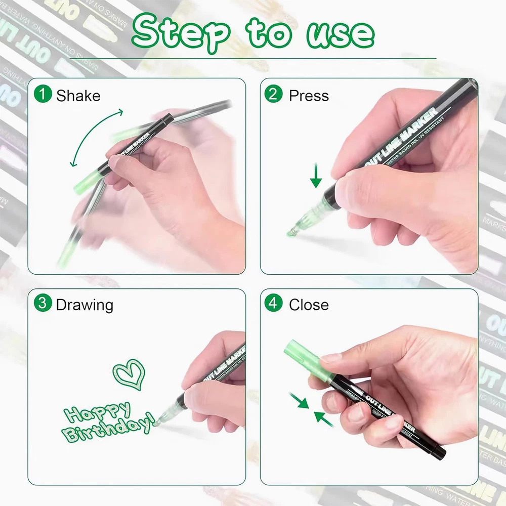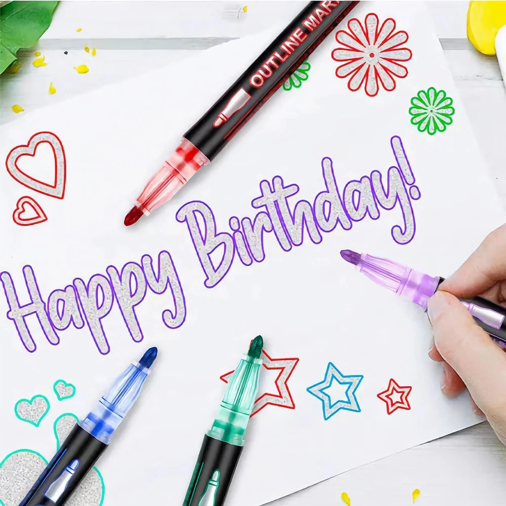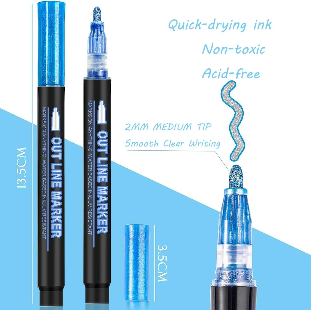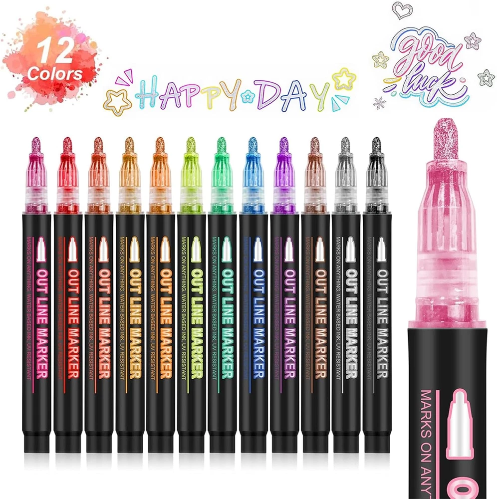 Store New Arrivals Add to Favorite View Feedback Contact Fast deliveries to the customer's home Quality customer service John Make the customers happy! Double Line Outline Markers, Art Markers for Kids,Art Supplies Crafts Gifts for 4-12 Year Old Girl,Metallic Glitter Pens Set for Gift Cards,Rock Painting,Coloring Book (12) Description Multiple Colors: glitter and metallic colors. Our GenuisArt markers for kids designed to create a beautiful silver metal texture surrounded by a colored border effect. And it can make 3 different effects on light colored paper, black paper and smooth surface. More colors let you create whatever you want Safe and Non Toxic: The super cool outline markers are water-based, highly pigmented ink, quick-drying, non-toxic, odorless, fade resistant, harmless to environment and safe for children, which is suitable for all ages of people to use safely, We suggest children under 3 years old should be used under the supervision of adults Easy to Use: Shake the pen well enough to mix the ink before using. Then remove the cap and gently press the pen tip on the paper a few times to pump the ink until it starts to flow. Then you can start your genius idea with this art supplies Versatile on Multiple Surfaces:The GenuisArt markers are perfect for Art, Drawing, Doodles, Posters, Painting, Rocks, Card Making, Eggs to Decorate. You can use it for Christmas Card Writing, Birthday Greeting, DIY Art Crafts. We suggest you using it on smooth surfaces like Wood, Canvas, Ceramics, Metal, Stone, and Glass Best Gift for Kids And Adults:This Shiny and specially textured pen are a great gift for family and friends, kids and adults, for Children’s Day, Easter Day, Birthday Party, Christmas, Halloween, Valentine's Day, Mother's Day, Thanksgiving Day, Back to School, New Year Product Description Item Weight 3.95 ounces Number of Items 12 Color Multicolor Manufacturer Part Number Fu-outline Ink Color Multicolor Recommended Uses For Product Writing Point Type Jumbo Product Dimensions 5.26 x 0.47 x 0.47 inches ABOUT US We offer the best prices around on high quality products. Our E-store includes media such as books, movies, music and games while offering electronics, toys, sporting apparel, clothing, tools, general home, garden items and more. SHIPPING We are always working hard to ensure your package arrives as soon as possible. Please understand that some factors like weather, high postal traffic, and the performance of shipping companies are outside of our control. We offer free shipping to the lower 48 states and ship within 2 business days of payment, usually sooner. We do not accept P.O. Boxes. Please provide a physical address. For shipping outside of the continental USA, we only use eBay's Global Shipping Program. The item is shipped to KY and then sent to the rest of the world. International customers are responsible for all duties and taxes. Continue to 'check out' to calculate costs for shipping the item to your country. Messages regarding eBay's Global Shipping Program MUST be directed at eBay EXCLUSIVELY. RETURNS We offer a 30-Day Return Policy on items in which you are not completely satisfied with. You have the option of a full-refund or an exchange of the item. No returns are available on items shipped outside of the USA PAYMENT We accept PayPal. CONTACT US This page content is yet to come Please ad us to your favorite seller and visit again later Thank You CUSTOMER SATISFACTION We try our very best to make sure every customer is completely satisfied. If there's a problem, message us! We're happy to help. WE ACCEPT