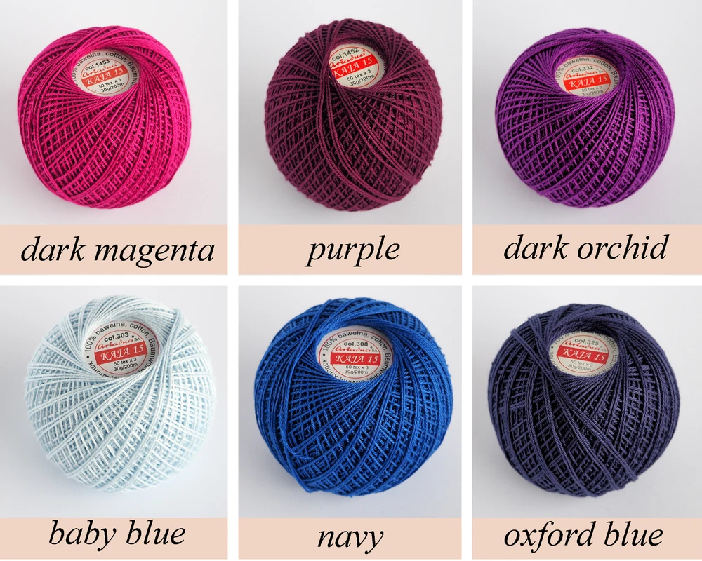 Free eBay listing template designed by dewiso.com Double Mercerized Crochet Cotton 30g Size 15 Threads recommended by lovers of handicrafts. The yarn is perfect for beginners and advanced crochet enthusiasts , knitting, embroidery, and other handmade art. Wide range of colours from classic white, beige, or black to beautiful vibrant colours like a fuchsia, lagoon, etc. The colour range consists of more than 40 gorgeous shades , so you will undoubtedly find a colour that matches your project Strong, easy to use, and provides a luxurious feel to decorative homeware and baby accessories. Features and further details Mercerized 100% Cotton Size 15 Weight - 1.05oz / 30g Lenght - 220yd / 200m 50 tex x 3 Recommended Crochet Hook size 1.0 mm Knitting Needle size 1.5 mm Perfect for: - crochet - knitting - embroidery - and many other handmade arts Contact us We can be contacted through eBay messages if you have any questions, comments, or product requests. We will respond to you within 12 hours and do our best to help you out! We encourage our customers to contact us with any questions or concerns! We want to be sure you are delighted with your purchase. Shipping FLAT RATE SHIPPING - buy any thread for a flat rate of £3.00 shipping (within the UK)! Buy as many thread balls as you like for only £3.00 shipping! . THANK YOU