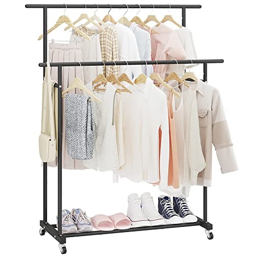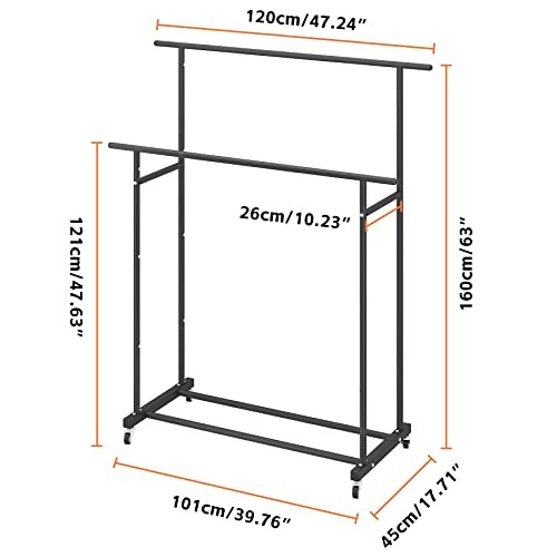 Return Policy Fast Delivery Trusted seller Double Rod Clothing Garment Rack,Rolling Hanging Clothes Rack,Portable Clothes Organizer for Bedroom,Living Room,Clothing Store,Black Product Description 【Large Storage Space】- Double rod can meet different length of clothing. The bottom shelf can also put multiple pairs of shoes, but also can put blankets, storage bags and other items. So that the daily organization is more orderly. 【Strong & Firm】- The hanging bar is strong and strable. The whole bar can be hung and placed all kinds of clothing. Support rods on both sides not only make the clothes rack more stable, but also provide storage space for scarves and towels. 【Move or Stay】- The 360° rotating wheels make it easy to move this hanger anyw with just a gentle push, and the wheels can be braked in place to lock it in place when stability is needed. 【Modern Design】- Unique garment design, suitable for cloakroom, porch, living room, bedroom, balcony, office and other places. Simple and versatile, will not make mistakes. 【Convenient Installation】- The clothing rack is easy to install, the instructions are simple to understand, and equipped with installation tools. Of course, please do not hesitate to contact us if you have any questions during use. Shipping Returns Payment Shipping Shipping is FREE to all addresses other than APO/PO boxes in the lower 48 states. All our stock ships from US-based warehouses. Shipped via USPS or UPS (depending on location and package weight) Unless stated otherwise, all orders will ship within 24-72 hours of your payment being processed. Check our feedback to see the great reviews of FAST shipping we offer. Returns Seller does not accept returns Payment We currently accept payment via eBay managed payments only. Once payment is cleared, we will dispatch your shipment within 1-3 business days. Please refer to the "Shipping" tab for more information regarding shipping speed to your destination.