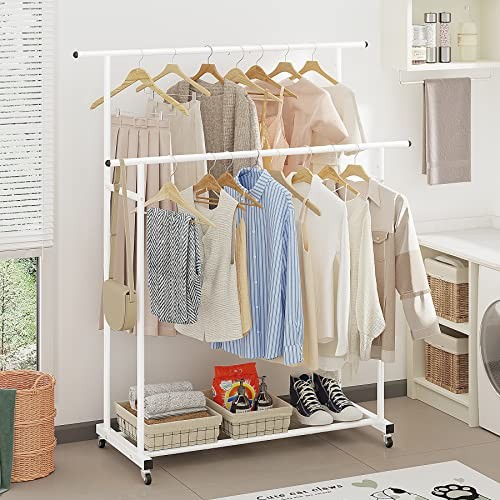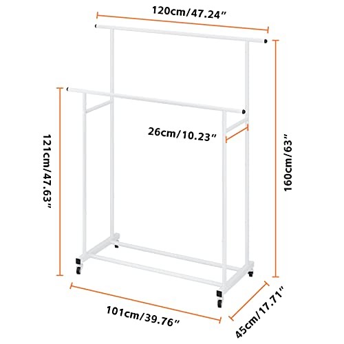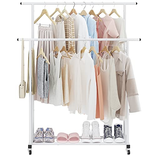 Double Rod Rolling Garment Rack Portable White Clothes Hanger Organizer