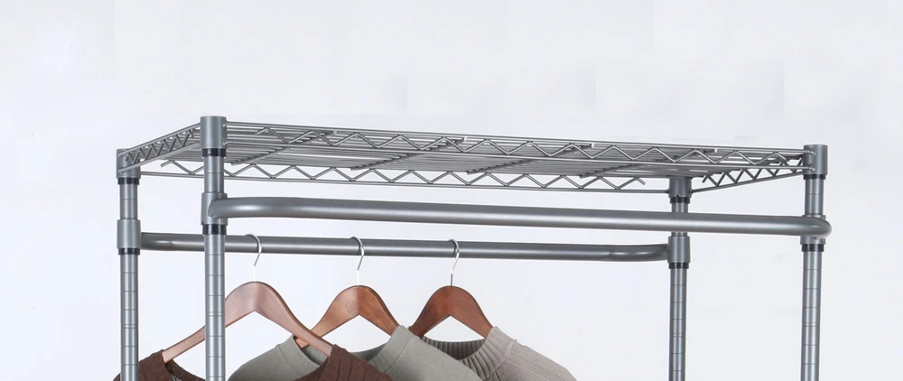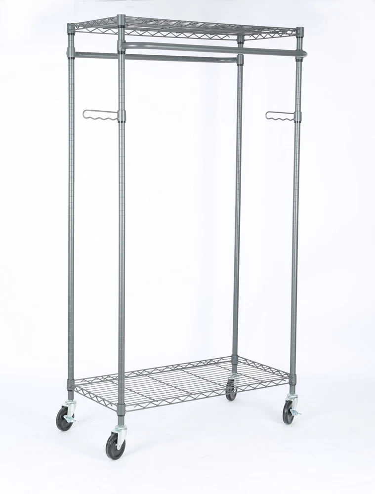 You may also like 12Cube Storage Organizer Metal C Grids Shelving Modular Bookshelf Closet Cabinet 67.57 USD 71.13 USD Free shipping 5% off 21 Pack Foldable Drawer Organizer Dividers Cloth Storage Box Closet Dresser New 51.29 USD 53.99 USD Free shipping 5% off Portable Closet Organizer Rack W/ Shelves Hanging Rods Side Pockets Easy Set Up 48.73 USD 51.29 USD Free shipping 5% off Portable Wardrobe Closet Clothes Organizer Non-Woven Fabric Cover with 6 Shelves 51.29 USD 53.99 USD Free shipping 5% off Wire Cube Storage Organizer Metal Shelf Closet Cabinet Plastic Modular Bedroom 47.1 USD 49.58 USD Free shipping 5% off Cube Storage Organizer 16-Cube Shelves Units Closet Cabinet Modular Book Shelf 49.94 USD 52.57 USD Free shipping 5% off Cube Storage Organizer Modular Bookshelf DIY Plastic Closet Clothes Shelves Home 53.86 USD 56.69 USD Free shipping 5% off 12-cube Closet Organizers and Storage Portable Closet Shelves for Kids Bedroom 46.16 USD 48.59 USD Free shipping 5% off 15 Cube Stackable Storage Organizer Shoes Bags Crafts Hobbies Wall Mount Closet 53.84 USD 56.67 USD Free shipping 5% off 9 Cube Closet Organizers Storage Cube Bins Unit With Drawers Closet Bedroom Dorm 82.03 USD 86.35 USD Free shipping 5% off 15 Cube Stackable Storage Organizer for Shoes Bags Crafts Hobbies W/Wood Shelves 67.03 USD 70.56 USD Free shipping 5% off Ventilated Shelf Kit Closet Rod Heavy Duty Super Slide Shelving Wall Mountable 51.51 USD 54.22 USD Free shipping 5% off Easily add extra garment storage to any space with this Double Hanging Garment Rack from the home experts . Equipped with both hanging rods and shelving, this smartly designed organizational piece boasts 2 ultra durable shelves and 2 sturdy metal hanging rods as well as fold-out attachments to hang smaller items like belts, hats, purses or scarves. Perfect for a bedroom that is short on closet space, or perhaps has no closet at all, this Double Hanging Garment Rack is easy to assemble and features extremely durable construction as well as locking rolling casters that allow for effortless portability. Whether for a bedroom, guestroom or even a college dorm room, this heavy duty garment rack from is an optimal choice for ridding your space of clutter and disorganization. Rolling garment rack includes 2 sturdy shelves and 2 adjustable hanging rods Designed with 2 fold-out arms for additional hanging space?perfect for smaller items like scarves, belts and more Designed on four rolling casters that can be used on nearly any surface for easy maneuvering?casters lock for safety and stability Heavy-duty construction?2 shelves hold up to 250 lbs. (113.5kg) each, one on top and on the bottom Simple assembly required?includes all hardware necessary Perfect for use in a small-closet or no-closet bedroom?great for a guest or dorm room