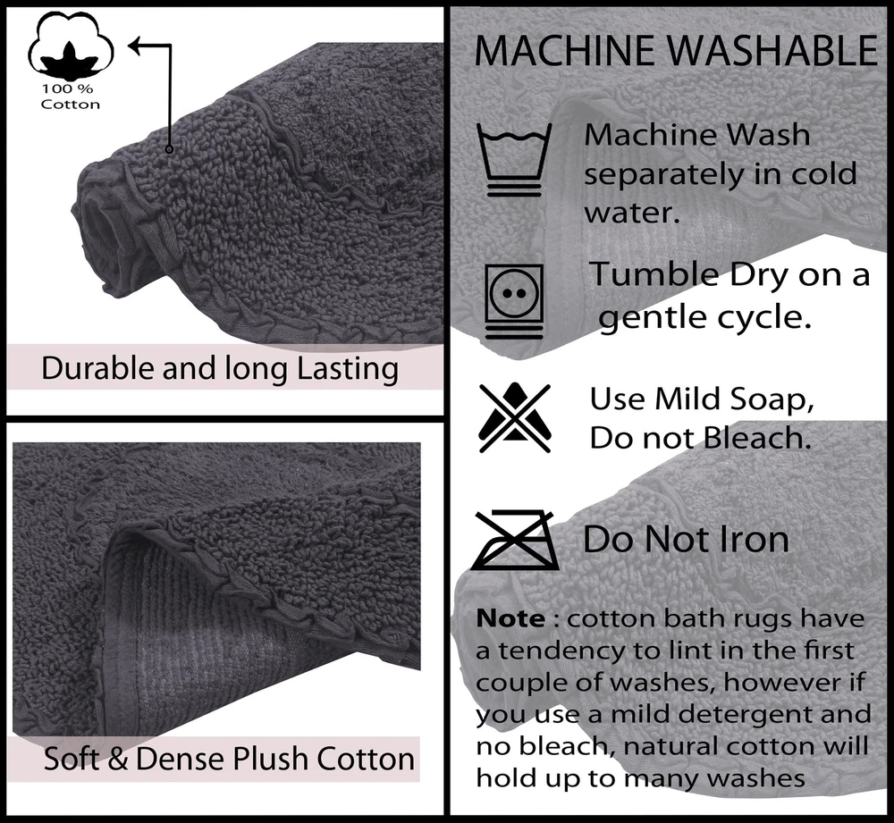 Introducing the Double Ruffle Bath Rug Collection, a harmonious blend of sophistication and comfort that adds an exquisite touch to your bathroom decor. Immerse yourself in a realm of luxury as you step onto the cloud-like plushness of these meticulously crafted rugs. Carefully constructed with high-quality materials, each rug is a testament to refined craftsmanship, transforming your bathroom into a haven of comfort and style. What sets the Double Ruffle Bath Rug Collection apart is its subtle yet captivating charm—double ruffle detailing that adds a touch of grace to each rug. This intricate design element enhances the visual appeal, creating a focal point that seamlessly complements a variety of bathroom aesthetics, from classic to contemporary. Versatility takes center stage as the collection offers a range of sizes, ensuring a seamless fit for any bathroom layout. Whether you're adorning a cozy powder room or infusing sophistication into a master bath, these rugs effortlessly balance functionality with captivating design. Curate your own oasis of comfort with the Double Ruffle Bath Rug Collection, where each rug becomes a statement piece, adding a layer of charm to your bathroom space. Immerse yourself in the transformative power of these thoughtfully designed rugs, creating an atmosphere of relaxation and refined luxury. Invest in the intersection of comfort and design with the Double Ruffle Bath Rug Collection, where every thread weaves a story of quality and dedication. Elevate your daily rituals with these rugs, turning your bathroom into a sanctuary of grace, style, and unparalleled comfort. Luxurious Craftsmanship and Opulent Comfort: Immerse yourself in the Double Ruffle Bathroom Rug Collection, crafted from premium 100% cotton for a luxurious feel and comfort beyond compare. Superior Absorbency: Crafted from high-quality, ultra-absorbent materials, our bath rug excels at soaking up moisture, helping to keep your bathroom floor dry and safe. It's a reliable choice for preventing slips and falls. Non-Slip Spray Latex Backing: Safety is paramount. Our bath rug features a non-slip backing that securely grips various flooring surfaces, including tile, hardwood, and linoleum. You can confidently step onto it without worrying about accidents. Durability and Easy Maintenance: Built to withstand daily use, our bath rug is both durable and low-maintenance. It can handle the traffic of a busy bathroom and is easy to clean, ensuring it retains its quality over time. Variety of Colors and Designs: Personalize your bathroom decor effortlessly with our extensive range of colors and designs. Find the perfect bath rug to complement your style, adding a cohesive and aesthetically pleasing touch to your space.