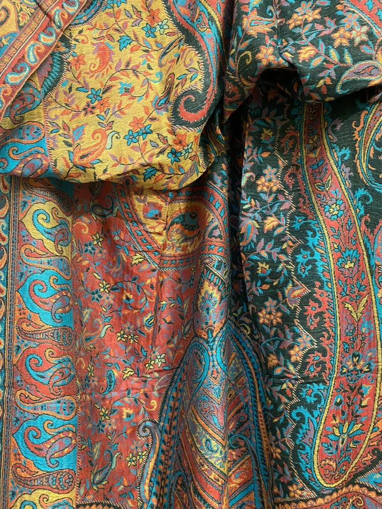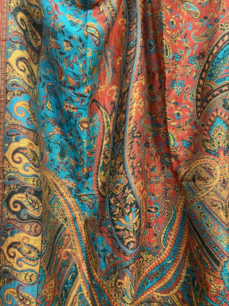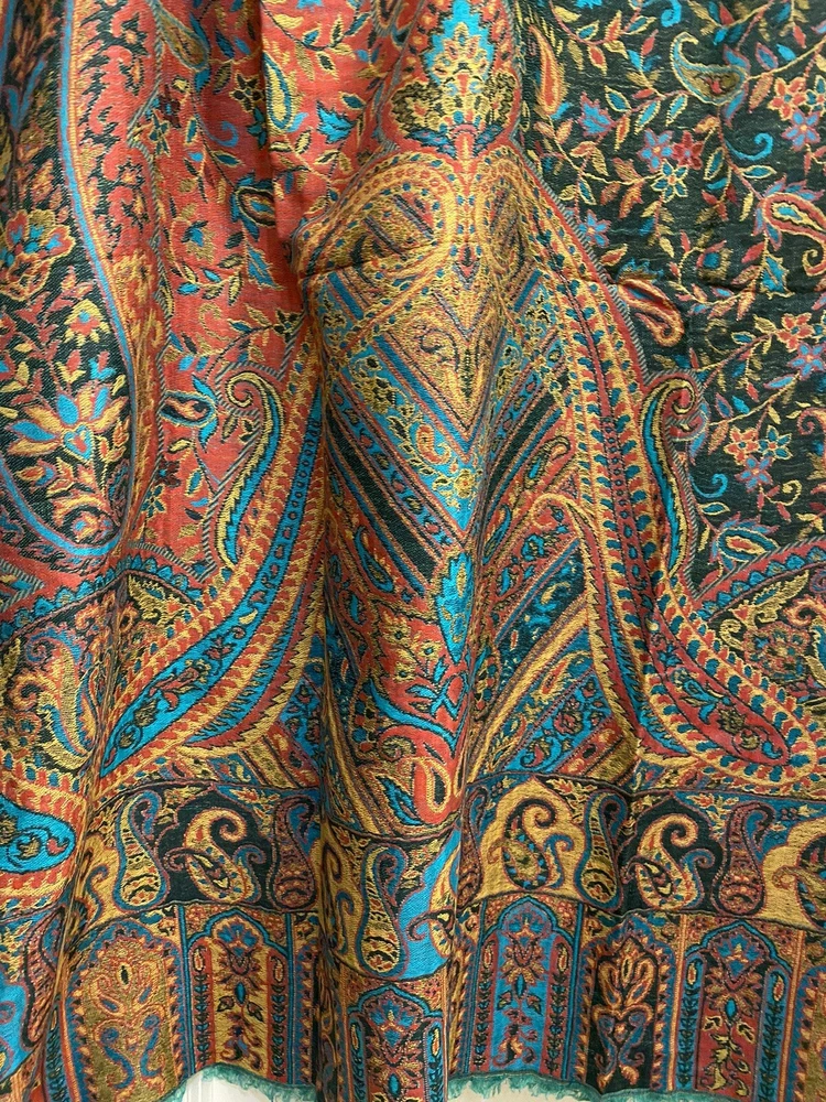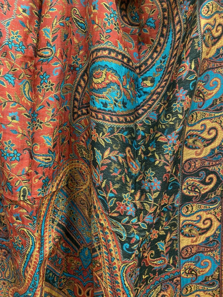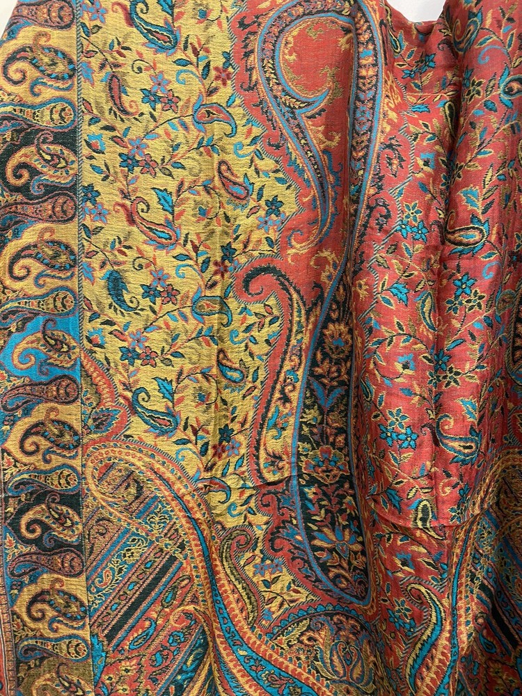 $ 71.2870% Cashmere 30% Silk Double Face Shawl with Trees Flowers Print 53 Inch Wrap Scarf