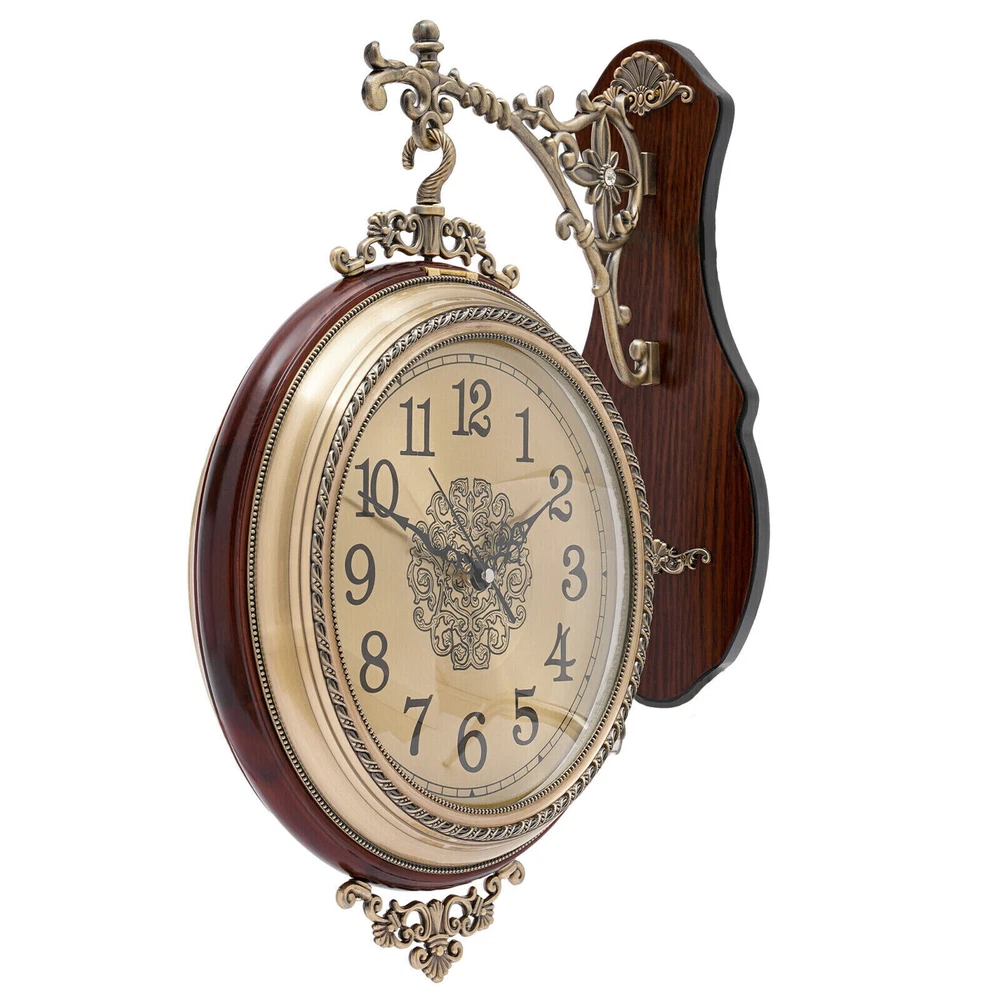 Double Sided 12" Wall Clock Antique Style Railway Station Wall Decor Gift Home Description Our double-sided wall clock not only tells the time accurately, but its vintage style looks great in any room. Its silent movement ensures a quiet environment while you rest and work. The double-sided dial design gives you multiple angles suitable for viewing. It comes with a full range of accessories for effortless installation. It will surely be your ideal choice. Key Features Sturdy and Durable: The product is mainly composed of painted wood and electroplated alloy with high hardness, high wear resistance, anti-corrosion and anti-rust properties. Easy to Read: The large 12-inch diameter dial, large black numerals, and large hands make it easy to read, and the double-sided and 360-degree rotatable designs make it easy to see the time from different angles. Quiet and Accurate: This item is equipped with a silent movement, which provides you with a quiet sleeping and working environment and ensures the smooth running of the clock hands. Space Saving: Using the wall-mounted installation can effectively utilize the free space on the wall and beautify the home environment at the same time. Easy Installation: The simple structure of the product and the complete set of mounting parts make it possible for even a novice to complete the installation quickly and accurately. Easy to Clean: Thanks to the painted and electroplated smooth surface and simple structure, you can easily wipe off the dirt on it with a soft cloth. Protective Package: To prevent the product from being damaged during transportation, we packed it with foam to protect your products to the maximum extent possible. Customer Service: We aim to provide quality products and services. If you have problems, please feel free to contact us. We will reply and solve the problem for you as soon as possible. Details Enclosed Battery Compartment: The enclosed design protects the battery compartment from water splashing and dust accumulation, making it safer to use and easier to clean. Smooth Edge: The rounded and smooth edges not only add to the aesthetics of the product but also improve the safety of use. Application It is suitable for use as a wall clock and wall decoration in bedrooms, dining rooms, living rooms, entrances, offices, hotels, classrooms, cafes, meeting rooms, and so on. Specification Material: Wood, Alloy, Glass Color: Brown, Golden Style: Vintage Process: Spray Paint, Electroplated Shape: Round Indoor/Outdoor Usage: Indoor Assembly Required: Yes Mounting Type: Wall-Mounted Battery: 2*AA Carbon-zinc Battery(Not Included) Gross Weight: 2.4 kg/ 5.29 lbs Net Weight: 2.1 kg/ 4.63 lbs Package Size: 49*42*9 cm/19.29*16.54*3.54 in Product Size(H*W): 46*37cm/ 18.1*14.6in Wall Hanging Size: 27*8cm/ 10.6*3.1in Dial Diameter: 24cm/ 9.4in Clock Diameter: 30.5cm/12in Package Included 1*Double-sided Wall Clock All Accessories for Installation Notes Please allow the slight color difference caused by the shooting light and the 1-3 cm error due to manual measurement, and make sure you do not mind before ordering. Payment Delivery details Terms of sales About us Contact us Payment We accept ebay payment 。 Fees such as import duties, taxes are not included in the item price or shipping costs. These charges are the buyer's responsibility. Delivery details Shipping: 2-9 working days to: USA Terms of sales We maintain high standards of excellence and strive for hundred percent customer satisfaction. Feedback is very important to us. We hope that you contact us immediately before you give neutral or negative feedback, so that we can address your concerns. It is impossible to address issues if we do not know about them! About us Your satis faction is our ultimate goal. We work hard to earn your trust and future business. Our certified technicians have tested each item before shipping. The unit comes with 1 year limited warranty on all manufacturing defects. a) If you receive a defective item, you may return it or ask for a discount. Please contact us within 14 days after you receive the package. b) What you returned must be intact and in its original packaging as re? u. Customer is responsible for shipping costs of the returned item. c) We will cover the cost of shipping back t with the shipping rate indicated in the registration page. We will send you a new unit or refund the full payment you paid. Thank you. Contact us Business Hour Business Hour: Monday To Friday: 8:30 AM to 5:00 PM (Beijing China time) Due to time zones, our reply to your questions may not be immediately. But within above working time, we will reply your email within 24 hours. If it's non-workdays, please kindly be patient and wait till Monday. Please contact us with ebay message. Please feel free to contact us if you have any questions. Monday To Friday: 8:30 AM to 5:00 PM (Beijing China time) Due to time zones, our reply to your questions may not be immediately. But within above working time, we will reply your email within 24 hours. If it's non-workdays, please kindly be patient and wait till Monday. Please contact us with ebay message. Please feel free to contact us if you have any questions. Brand Unbranded Type Hanging Wall Clock Features Double-Sided Clock Theme Retro & Lounge Style Art Deco Material Alloy Metal Display Type Analog & Digital Movement Quartz (Battery Powered) Power Source Battery Powered Character Family Does not apply Frame Material Metal Color Brown Finish wood+metal Room Home Office/Study, Living Room, Dining Room, Bedroom Chime Sequence Does not apply Era Unknown MPN Does not apply Model Does not apply Shape Round size As Shown Installation Type Wall-Mounted UPC Does not apply EAN Does not apply On Nov 13, 2024 at 01:18:50 PST, seller added the following information: