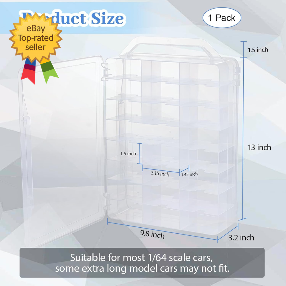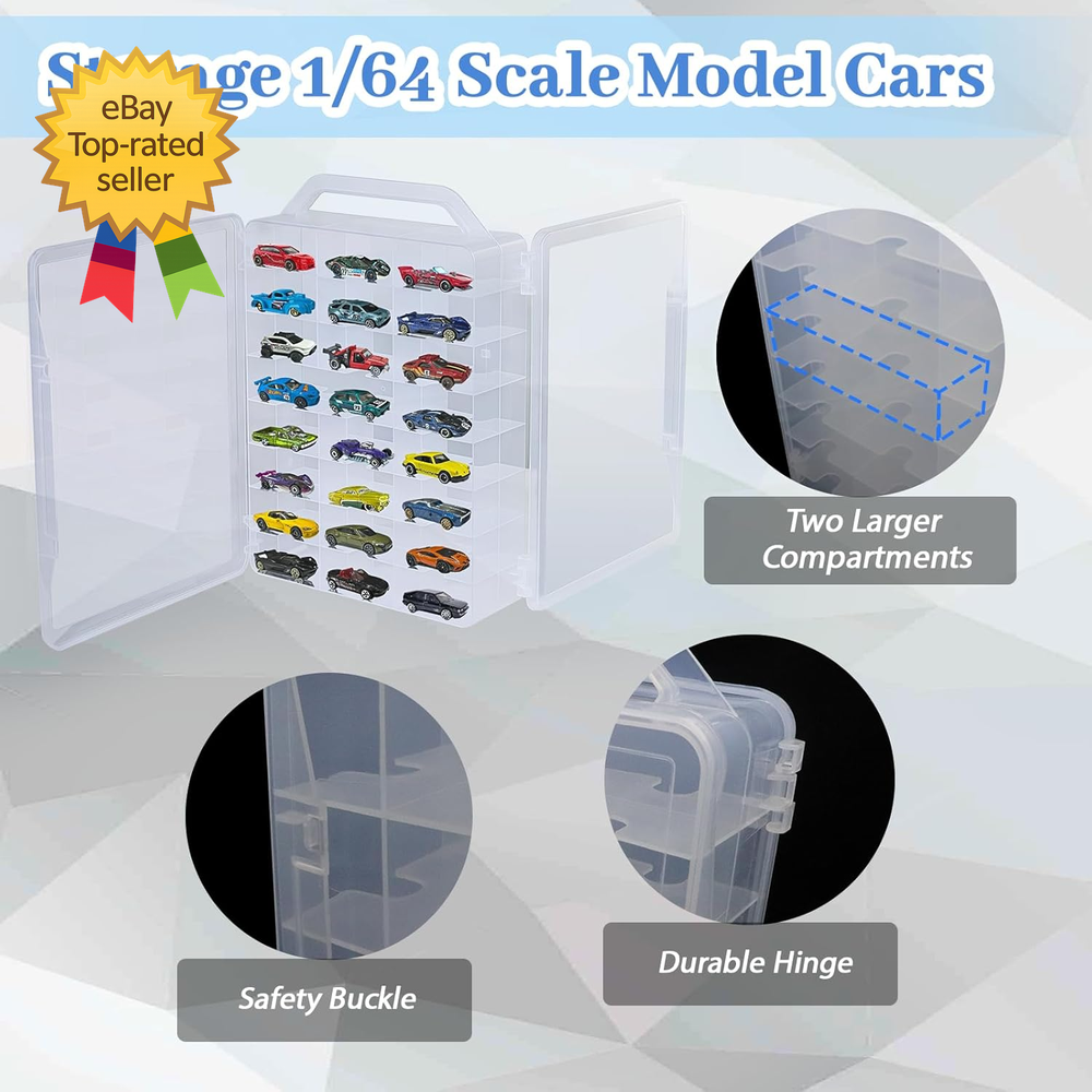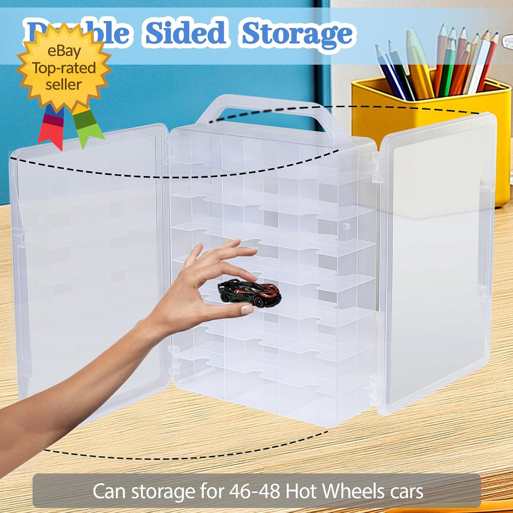 Store New Arrivals Add to Favorite View Feedback Contact Double Sided Storage Case for Hot Wheels Storage with Carrying HandlePortable Description Item Package Quantity 1 Color Clear Material Plastic Water Resistance Level Not Water Resistant Product Dimensions 3.15"L x 1.45"W x 1.5"H Item Weight 2 pounds Batteries required No Shape Rectangular Opening Mechanism Lift-Off Lid Recommended Uses For Product For Toys Special Feature Portable Fabric Type Plastic Included Components Shade included Plastic Storage Case for Hot Wheels Storage: This carry storage case designed with a carrying handle, making it easy to storage and carry for 1/64 scale toy cars. It keeps your collection stays organized and portable wherever you go Generous Storage Capacity: This portable storage case has 46 slots, and two storage cases will have a total of 92 slots, with each measuring 3.15”(L)x1.45”(W)x1.5”(H). Two long compartments (6.3”L) fit longer vehicles like trucks, or two small car, holding up to 46-48 cars in total Double-Sided and Easy Access: The clear carrying storage case double-sided design allows you to have more storage for 1/64 scale Hot Wheels Matchbox cars, and they can be easily accessed from both sides when needed Durable and Transparent Plastic: Made from high-quality plastic, this toy cars storage case is both strong and durable. The transparent design allows you to quickly view and access your cars, making it easy to find you need toy cars ABOUT US We offer the best prices around on high quality products. Our E-store includes media such as books, movies, music and games while offering electronics, toys, sporting apparel, clothing, tools, general home, garden items and more. SHIPPING We are always working hard to ensure your package arrives as soon as possible. Please understand that some factors like weather, high postal traffic, and the performance of shipping companies are outside of our control. We offer free shipping to the lower 48 states and ship within 2 business days of payment, usually sooner. We do not accept P.O. Boxes. Please provide a physical address. For shipping outside of the continental USA, we only use eBay's Global Shipping Program.The item is shipped to KY and then sent to the rest of the world. International customers are responsible for all duties and taxes. Continue to check out in order to calculate costs for shipping the item to your country. Messages regarding eBay's Global Shipping Program MUST be directed at eBay EXCLUSIVELY. RETURNS We offer a 30-Day Return Policy on items which you are not completely satisfied with. You have the option for a full-refund or an exchange of the item. No returns are available on items shipped outside of the USA. PAYMENT We accept PayPal. CONTACT US This page content is yet to come Please ad us to your favorite seller and visit again later Thank You CUSTOMER SATISFACTION We try our very best to make sure every customer is completely satisfied. If there's a problem, message us! We're happy to help.