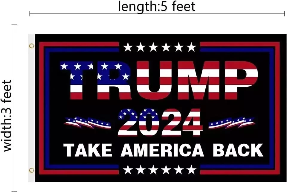 About this item Trump 2024 Flags - Trump 2024 Flag are made of 100% Polyester,have 2 brass grommets for easy and secure outdoor or indoor hanging.The Trump flag is perfect for outdoor indoor use .FLAG POLE NOT INCLUDE. Take America Back - You can hang the Trump flag 2024 in your room, outside windows, corridors, or on the flagpole of the front door wherever you want. It is very suitable for indoor or outdoor use. Product Description - Trump 2024 flag 3x5,tear resistance,anti-wind,flag up and down two-thread reinforcement,improve flag durability,two rust-proof copper buckle,strong and durable,do not fall off. Not easy to fade - The Trump 2024 flag is very vivid. It can withstand all kinds of bad weather without fading and damage after our repeated upgrades of materials and experimental tests. Show Your Support - Display this patriotic flag to express your vote for Trump in 2024.