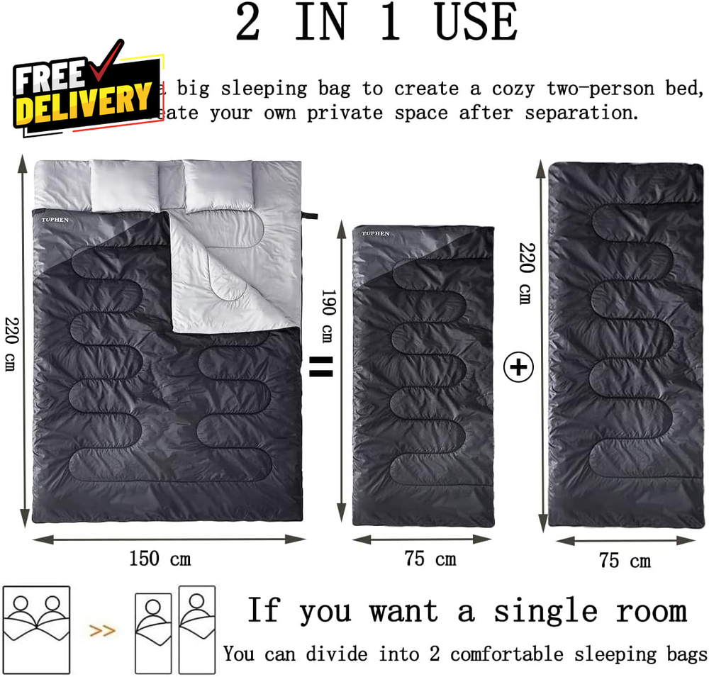 ultimatesavvyshop New Arrivals Add to Favorite View Feedback Contact Double Sleeping Bag with 2 Pillows Queen Size XL Waterproof for Camping Hiking ? PLEASE CONTACT US FIRST BEFORE TAKING ANY ACTION ? If you face any kind of issue , please reach out to us directly . Especially before leaving Negative Feedback, opening an “Item Not Received” case, or starting a Return . ? We are always happy to assist and resolve any problem quickly and professionally! If you have any questions or require assistance, please don’t hesitate to reach out. Description Temperature Rating 1 to 5 degrees Celsius Occupancy 2 Person Material Nylon Outer Material Nylon Model Name TP-2-SD Seasons 3 Seasons Item Package Dimensions L x W x H 18.03 x 13.19 x 6.81 inches Included Components No Closure Type Zipper Age Range (Description) Adult Item Weight 1 Pounds Fill Material Polyester Package Weight 3.18 Kilograms Part Number sleeping bag001 Sport Backpacking,Camping Item Dimensions LxWxH 86.61 x 59.06 x 3 inches Color Black Grey Fill Material Type Polyester Shape Semi-Rectangular Maximum Height Recommendation 183 Centimeters Product Dimensions 78"L x 59"W Outer Cover Material: 210T Nylon,Waterproof and Breathable Fabrics; Lining Material: 190 T Polyester Pongee; Fill-Material: 100% hollow Microfiber. Imported Warm & comfortable: The sleeping bag is made of microfiber filling, which can keep warm and cozy even in cold night. This double sleeping bag sleeps 2 adults with ample room and comfort. Durable outer shell: Our double sleeping bag for adult is crafted with high quality water-resistant nylon, lined with microfiber fabric and filled with microfiber that designs to last a lifetime in the most severe conditions. Dual Usage: The double sleeping bag , which fits two happy campers comfortably, and can be disassembled by a zipper to become two independent sleeping bags.Imagine the memories you will leave with it. Two pillows: The double sleeping bag is designed with a convenient carrying bag and two small pillows, which can provide good and stable support for your neck. This sleeping bag is very suitable for a couple or a family with only child. ABOUT US Prior to making any purchase from our store, we’d like to introduce ourselves. My name is Shahzad Yaqub , and I am the proud owner of Epic Emporium Deals , located in the great state of Illinois, USA. I have been an active and trusted eBay seller since Jan 14, 2025 . At Epic Emporium Deals , we are committed to offering competitive prices and top-quality products . Our extensive collection features a wide variety of items, including media such as books, movies, music, and games , as well as electronics, toys, sporting apparel, clothing, tools , and general home and garden essentials —and much more! Your satisfaction is our priority, and we look forward to providing you with an exceptional shopping experience. SHIPPING We are always working hard to ensure your package arrives as soon as possible. Please understand that some factors like weather, high postal traffic, and the performance of shipping companies are outside of our control. We offer free shipping to the lower 48 states and ship within 2 business days of payment, usually sooner. We do not accept P.O. Boxes. Please provide a physical address. For shipping outside of the continental USA, we only use eBay's Global Shipping Program. The item is shipped to IL and then sent to the rest of the world. International customers are responsible for all duties and taxes. Continue to 'check out' to calculate costs for shipping the item to your country. Messages regarding eBay's Global Shipping Program MUST be directed at eBay EXCLUSIVELY. RETURNS We do not accept returns under normal circumstances. However, we will gladly consider a return if the item is received broken or if the wrong size is sent to you. In all other cases, returns will not be accepted. CUSTOMER SATISFACTION We try our very best to make sure every customer is completely satisfied. If there's a problem, message us! We're happy to help.