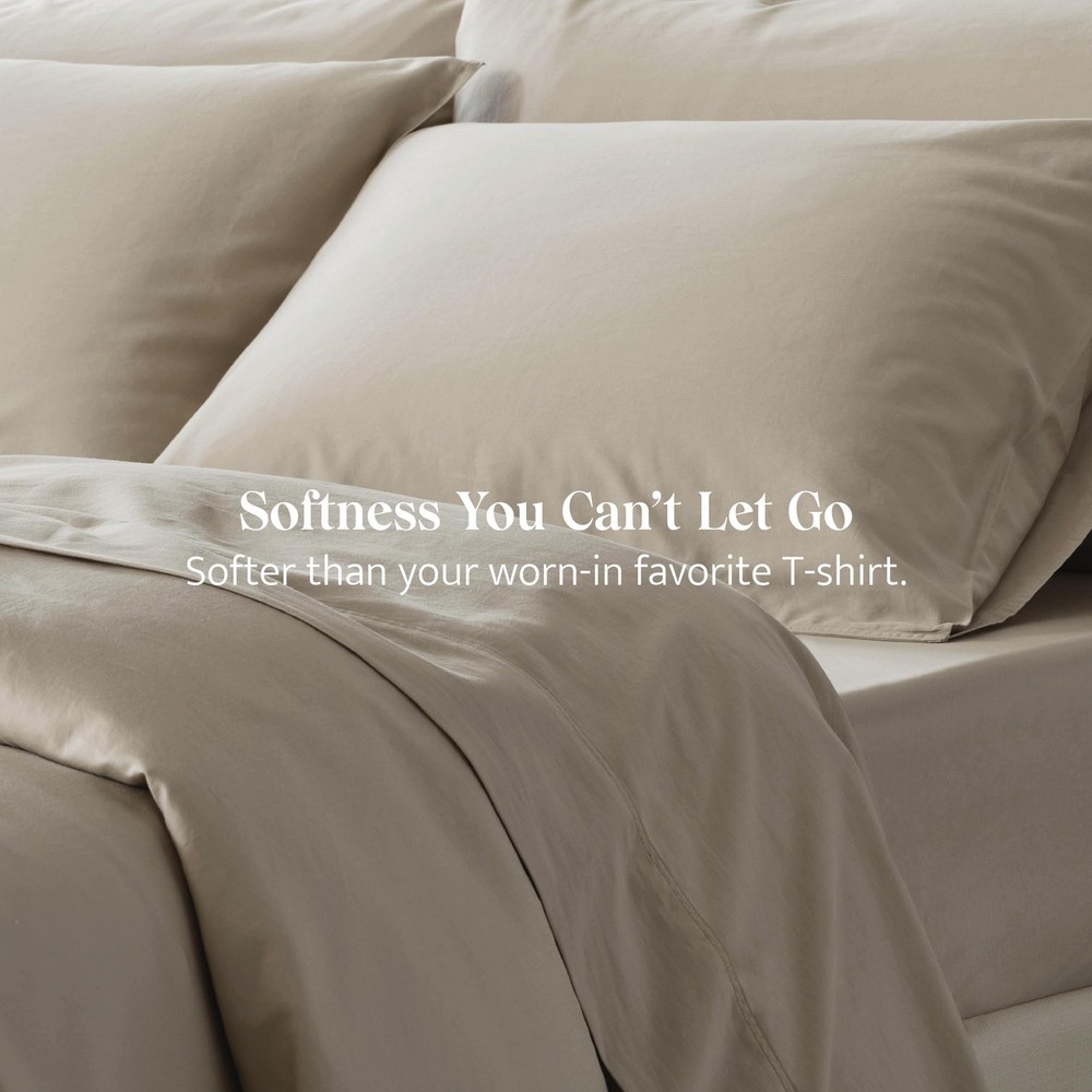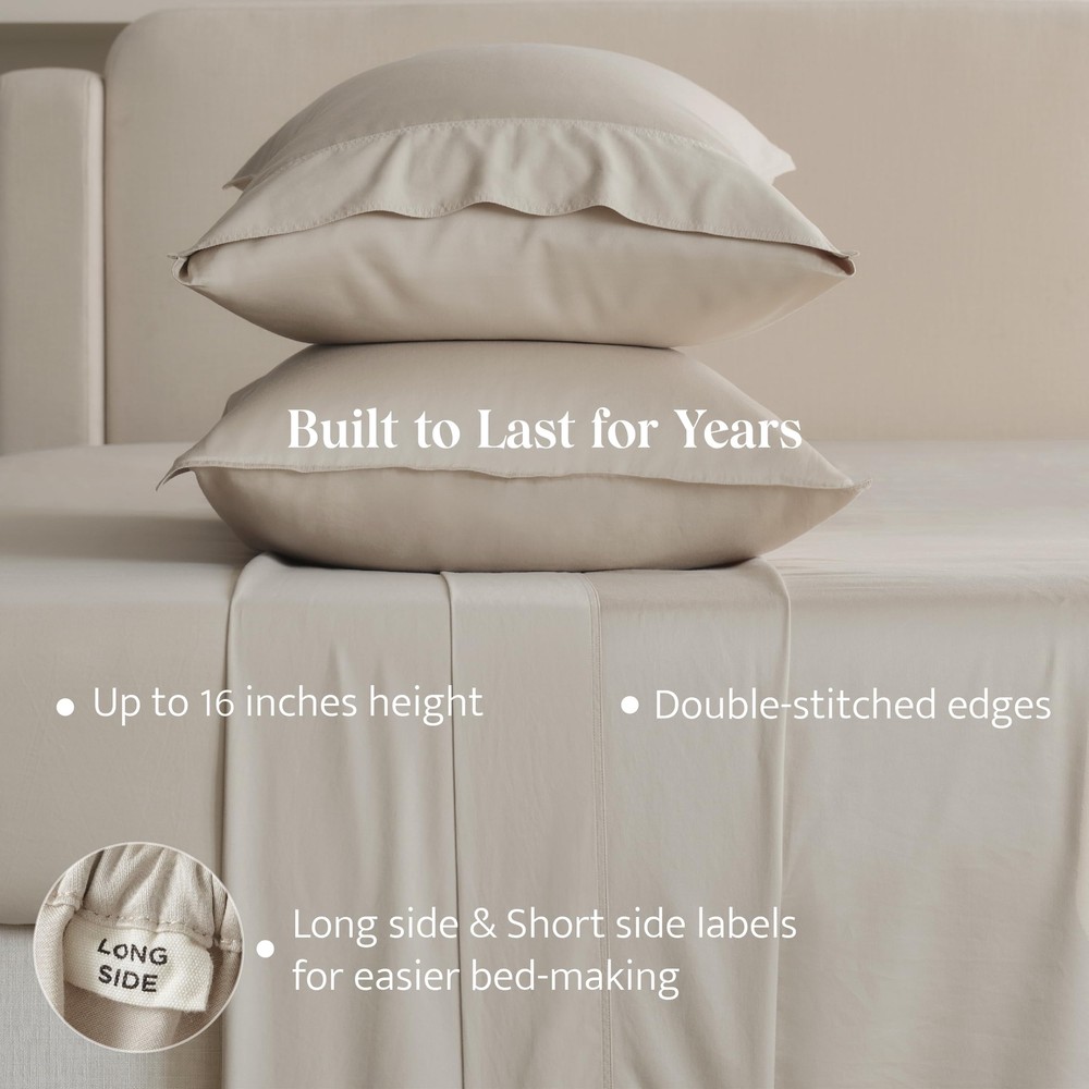 【Good Housekeeping Award 2024 Winner】: Our Cotton Tencel Series won the Good Housekeeping’s Best Bedding Award 2024 with cotton TENCEL lyocell blended cooling fabric. "It earned perfect scores for softness, comfort and overall satisfaction, my dog’s hair doesn't seem to stick in the fabric at all." — Good Housekeeping 【Exquisite Softness】: Crafted from premium US-grown OEKO-TEX certified cotton and TENCEL fibers known for their unparalleled softness. This sheet set goes through Double Stitch's proprietary garment washing process to create a superior hand feel. Ideal for sleepers looking to experience serenely smooth and cozy sheets. 【Natural Benefits】: Our carefully chosen blend of 65% TENCEL and 35% US-grown cotton provides the perfect balance of performance and luxury. With natural anti-wrinkle properties, these sheets also offer excellent resistance to pilling. Cooler than linen and more absorbent than 100% cotton, our Cotton TENCEL Sheet's moisture-wicking properties, temperature regulation, and long-lasting lifespan ensure a restful and comfortable sleep. 【Responsibly Sourced】: Designed for unparalleled comfort and to ensure we make informed choices for the planet. Crafted with US-grown OEKO-TEX certified cotton, recognized globally for its quality control practices, and TENCEL Lyocell True Carbon Zero fabric sourced from eucalyptus trees grown in sustainably managed forests. The production process recycles nearly all solvents, curbing undue ecological impact and ensuring that your comfort doesn't come at the cost of the environment. 【Thoughtful Details】: Our Cotton TENCEL Sheet Set features our signature double-stitched detailing for enhanced durability and a deep pocket to fit mattresses up to 16". Comes as a complete set of a fitted sheet, top sheet, and two pillowcases. Every detail and color is designed with your comfort in mind to provide a blissful sleep experience.
