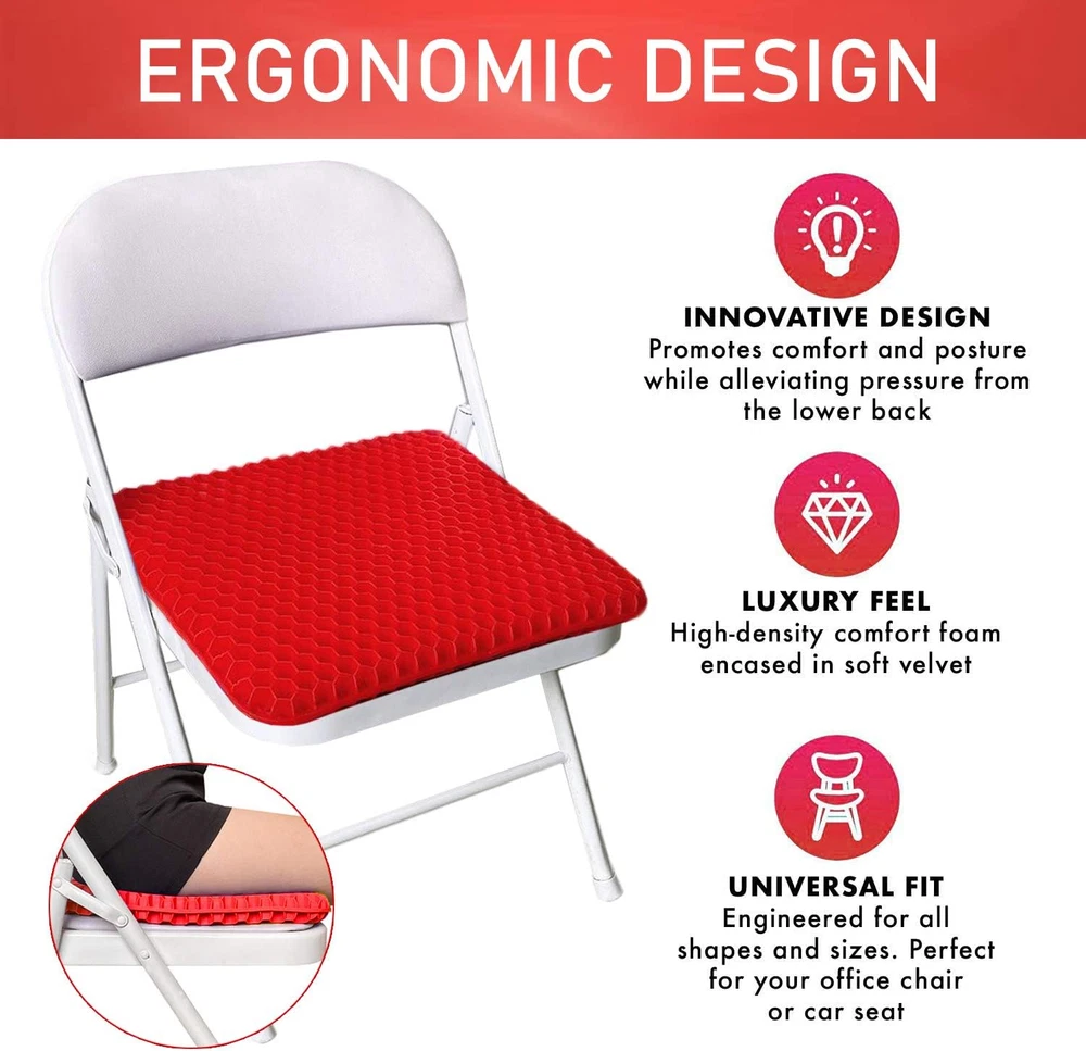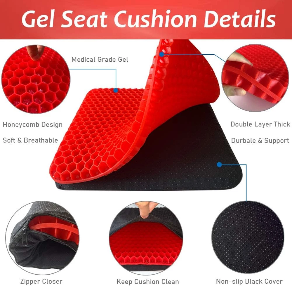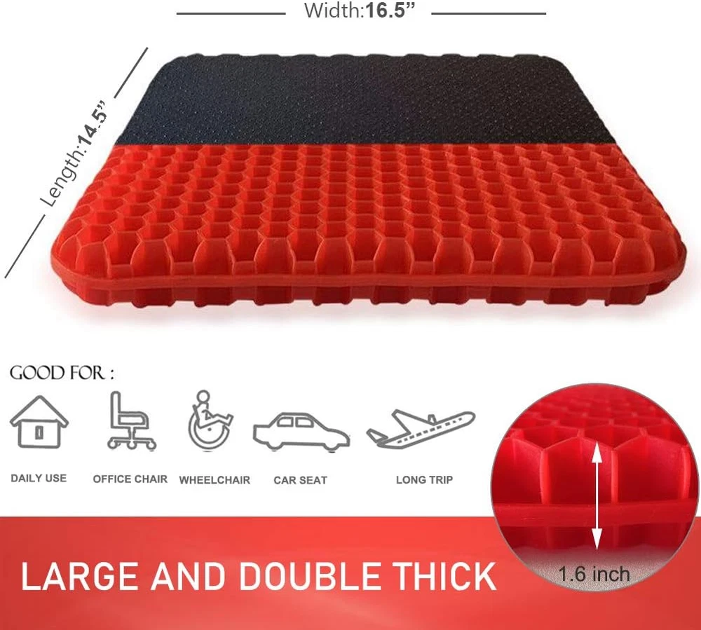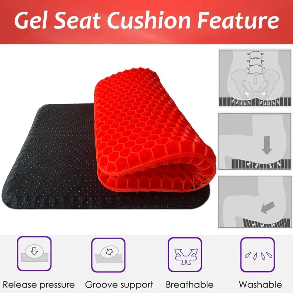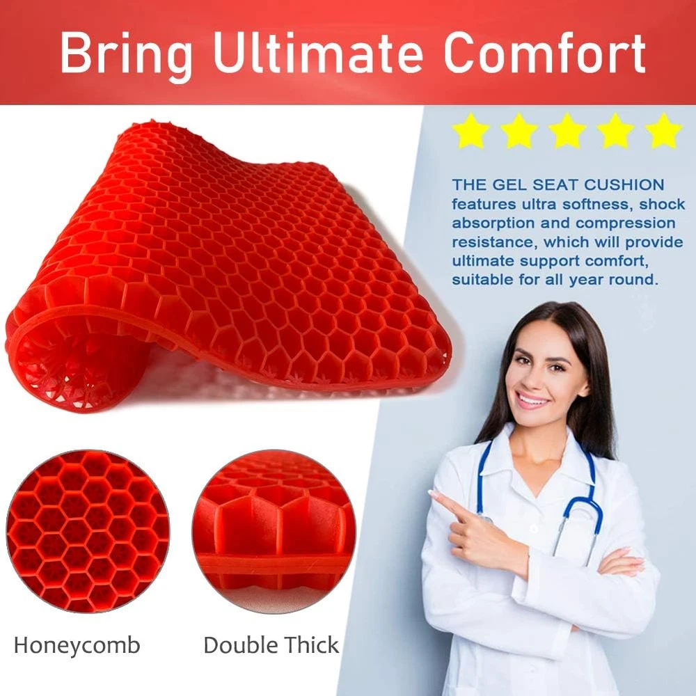 Double Thick Gel Seat Cushion, Red, for Tailbone, Sciatica, Back Pain Relief [[IMAGE]] Hello, We Do Sell Mobiles, Computers Tablets & Network Accessories! Features 【Cooling Honeycomb Structure】The seat cushion is made of premium gel material, which makes it cool to sit on and helps people who are in long sitting to deal with the steam heat. With honeycomb structure, it can make the air flow, ventilation, even if sitting for a long time will not be stuffy. 【Super Soft, Hard to Deform】 Soft and elastic gel material, double design, excellent flexibility, can be squeezed back to the original shape immediately after stretching, it will always maintain its original shape and it won't lose its support, even after a long term use. 【Assists In Back Pain Relief】 Ergonomically designed seat cushion provides maximum support and comfort while reducing pressure on the coccyx / tailbone and promotes healthy posture. Supports recovery from lower back problems, helps with most sitting pain due to sciatica, herniated discs, tailbone injuries, pregnancy, hip pain and hemorrhoids. 【With Non-slip Washable Cover】The removable cover has a non-slip PVC base to prevent the cushion from sliding on any type of surface. Conveniently washable, the mesh cover is also breathable to prevent heat buildup, also keeps the cushion clean. 【Widely Application】 Great for: Office Chair, Computer Desk, Kitchen, Dining Room, Living Room, Patio, Couch, Recliner, Car, Truck, Train & Airplane Travel, Classrooms. Take it with you to Sporting Events to use on Benches. Also can be used as Pet Cushions. Product Description Have you felt the discomfort caused by sedentary? Suffer from tail bone, chronic back pain, sciatica? Do you want to say goodbye to achy muscles? Choose our cooling Purple Gel Seat Cushion, you will never regret it. Our seat cushion absolutely helps you reduce the pressure on your butt and coccyx. Helishy GEL SEAT CUSHION Gel is a semi-solid state with characteristics between liquid and solid, it has many features: soft, physical cooling, cool and breathable. Our seat cushions are made of the gel material, which greatly different from the traditional seat cushions. It adopts more than 500 balanced pressure and flexible honeycomb grids, disperses the pressure of the whole buttocks and thighs. It's not only soft, cooling, breathable; but also helps relieve body pains in long time sitting. Effectively prevent and alleviate various pain symptoms, including tail bone problems, lumbar strain, sciatica, and degenerative disc disease. Product Specifications Material: Gel Size: 16.5*14.5*1.6 inch Cushion Color: Red Weight: about 1100g Package Including : 1x Gel Seat Cushion 1x Black Non-slip Cover Suitable for various use scenarios: home, office, car, travel, stadium, wheelchair, etc. Helishy Gel Seat Cushion Highlights: Honeycomb Structure The honeycomb structure greatly reduces heat transfer between the buttocks and the seat, increases air circulation and keep cool at the bottom. Premium Gel Material Made of premium gel which are super soft to sit, and the material doesn't irritate the skin. Soft and Flexible Soft material make it perfectly fits the buttocks curve, disperses the pressure of the whole buttocks and thighs. Double Layer Thickness Upgraded to double layer thick, makes it enough to support any weight of the body without limited. Breathable Fabric Cover The cushion cover made of breathable fabric, which can prevent heat buildup, keep hip cooling. Non-slip Bottom The anti-slip dots bottom ideal for prevent the cushion from sliding. it is stably fixed in any place. Durable Zipper The cloth cover has a zipper design that can be easily removed to be washed by machine. Keep Cushion Clean The black cover also can keep your gel cushion clean, create a comfortable and healthful sitting position. Unit Count 1.0 Count Product Dimensions 16.5"L x 14.5"W Variety Seat Cushion,Gel Seat Cushion Color 6-red Pattern Honeycomb grids Material Solid Gel Fabric Type Premium Gel Item Weight 2.38 pounds Shape Square Fill Material Gel Material Feature Breathable Age Range (Description) Adult Recommended Uses For Product Sitting Use for Buttocks Size 16.5*14.5*1.6inch Special Feature Cooling, Removable Cover Item Firmness Description Medium Soft Product Care Instructions Hand Wash Only Number of Pieces 1 14.5 "w x 16.5 "w. Weight: 2.38 lb Payment We accept all payments via Ebay using Credit Cards , PAYPAL , Apple Pay and many others Shipping We are always working hard to ensure your package arrives as soon as possible. Please understand that some factors like weather, high postal traffic, and the performance of shipping companies are outside of our control. Delivery & Return Policy We offer a 30-Day Return Policy on items in which you are not completely satisfied with. You have the option of a full-refund or an exchange of the item. No returns are available on items shipped outside of the USA.