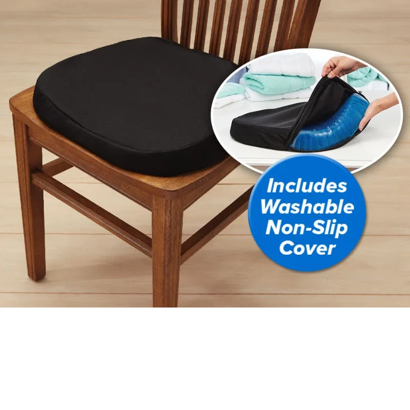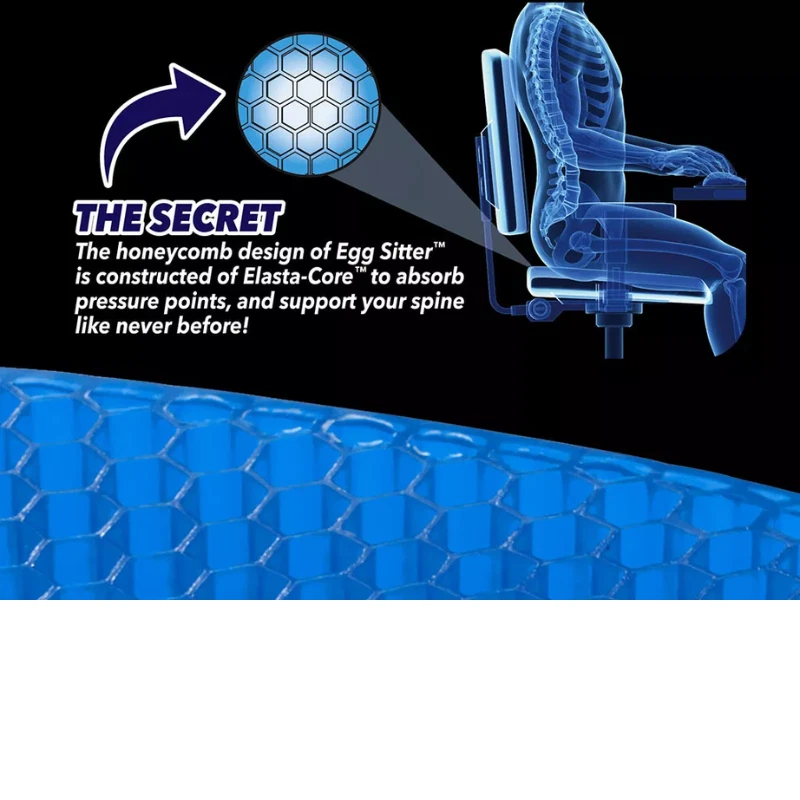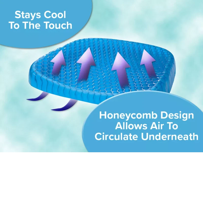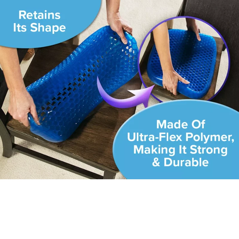 mGel Double Thick Gel Seat Cushion for Pain Relief Experience ultimate comfort and support with the mGel Double Thick Gel Seat Cushion, designed to relieve pressure and provide pain relief for various seating needs. Perfect for use in the office, car, wheelchair, or home, this cushion combines an ergonomic honeycomb design with cooling and breathable features to ensure your comfort all day long. Key Features Honeycomb Design: Over 500 balanced pressure and flexible honeycomb grids effectively distribute weight, perfectly fitting the buttocks curve for maximum comfort and support. Cooling and Breathable: The unique gel honeycomb structure reduces heat transfer, increases airflow, and keeps you cool even during extended sitting sessions. Relieves Pain: Helps alleviate pain associated with tailbone issues, lumbar strain, sciatica, and degenerative disc disease. Prevents fatigue and muscle compression, promoting better relaxation and posture. Non-Slip Cover: Comes with a removable magnetite anti-slip cloth cover with a zipper design for easy washing. The gel cushion itself can also be washed as needed. Wide Application: Suitable for home, office, car, travel, stadiums, and wheelchairs. Includes a 45-day money-back guarantee and an 18-month warranty for peace of mind. Product Specifications Feature Details Color Blue Material Gel Cushion & Polyester Cover Dimensions 15.6" L x 15" W Special Features Pain Relief, Breathable Recommended Uses Office Chair, Car Seat, Wheelchair, Travel Why Choose mGel Gel Seat Cushion? The mGel Gel Seat Cushion is not just another cushion. Its innovative honeycomb design and high-quality materials make it stand out as the best solution for pressure relief and enhanced sitting comfort. Whether you're working, driving, or relaxing at home, this cushion provides the perfect balance of support and breathability. Package Includes: 1 x mGel Double Thick Gel Seat Cushion 1 x Magnetite Anti-Slip Cloth Cover Product Images
