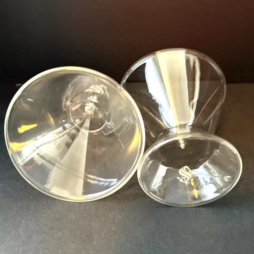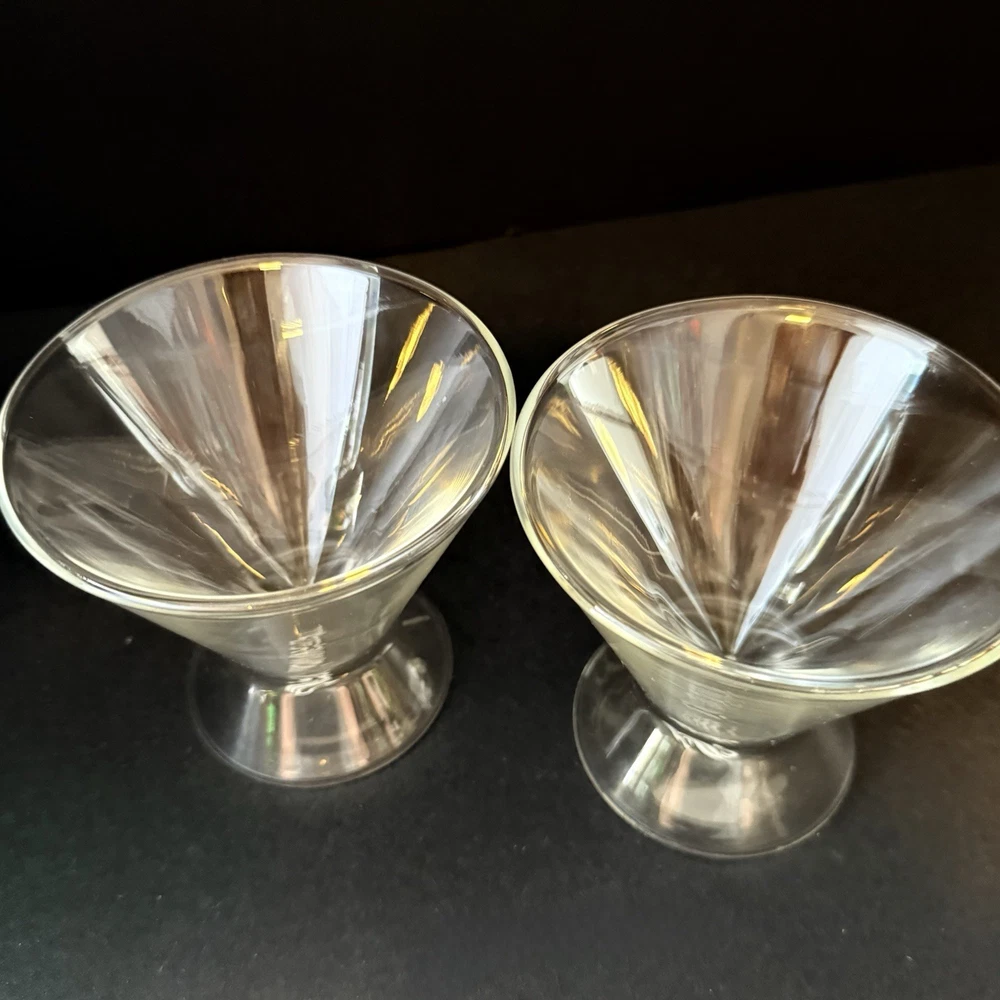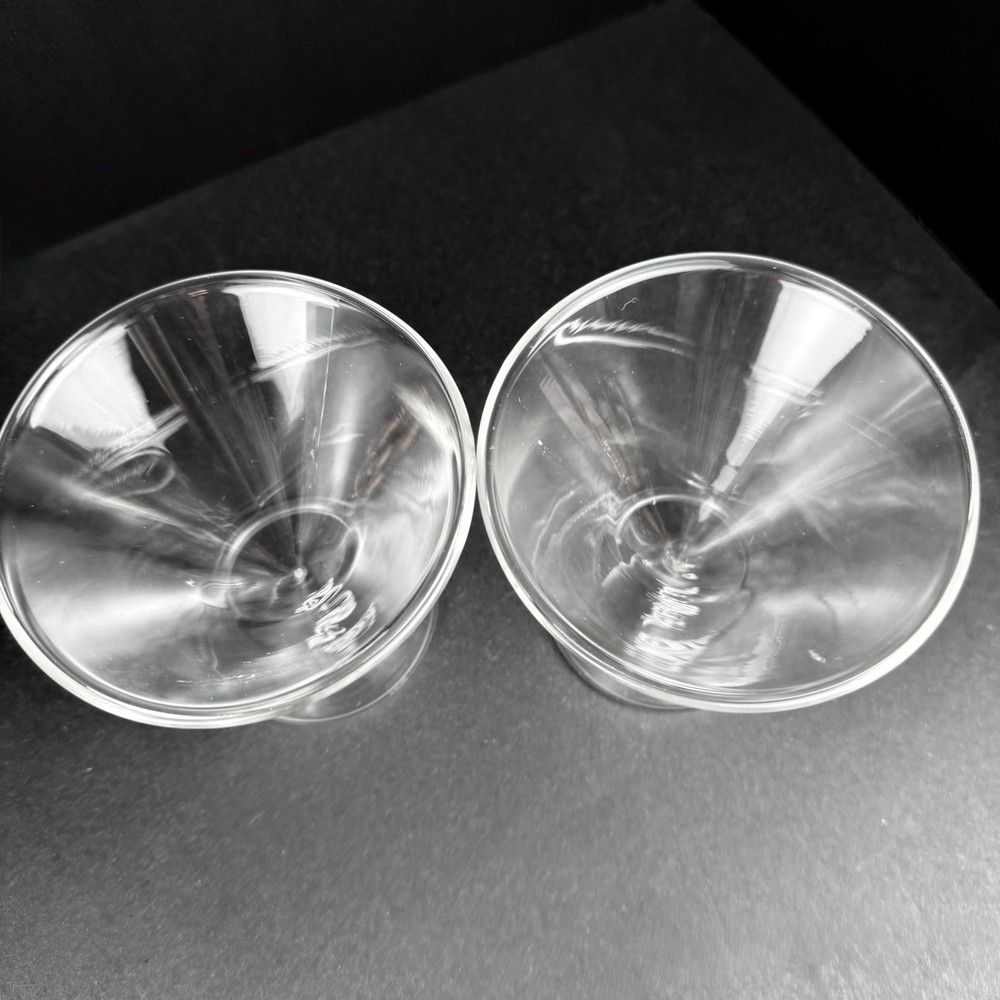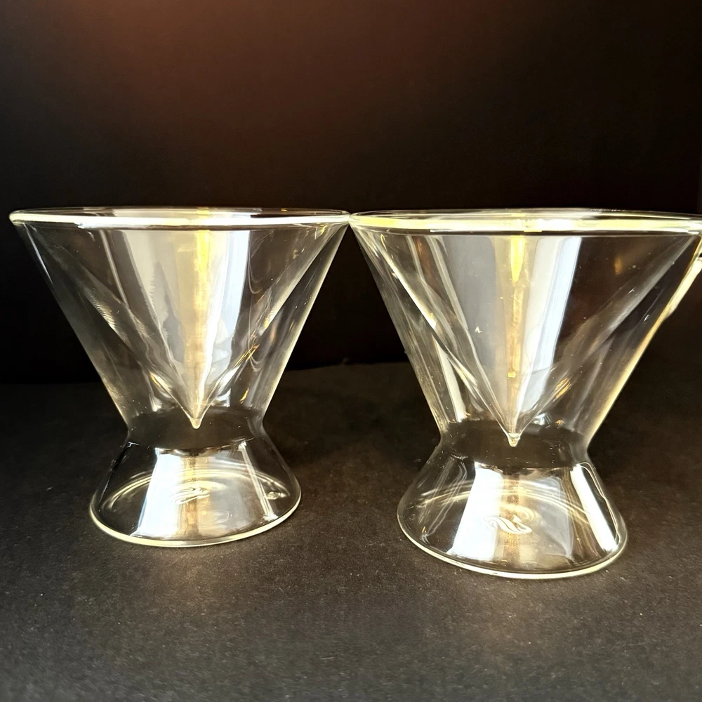 Dragon Glassware Stemless Martini Cocktail Glass Double Wall Insulated Set of 2 These wonderful martini glasses are from a family owned small business based in Sacramento, California.They have a modern design that is perfect for all occasions. The double walls of the glass insulate the drink to keep it cold and tasty. Both glasses are in excellent condition with no chips, scratches, nicks or wear to the luster finish. There are small manufacturers flaw in each glass, see last photo. The glasses are made of borosilicate glass, which is exceptionally sturdy. Borosilicate is the same glass used in laboratories and resists scratches, nicks and breakage. These glasses are100% Lead and BPA Free. This high quality glass is refrigerator and freezer safe, suitable for daily use and cleans easily. Let me know what questions you have. Blessings to you! 🤍🤍🤍🤍🤍🤍🩶🤍