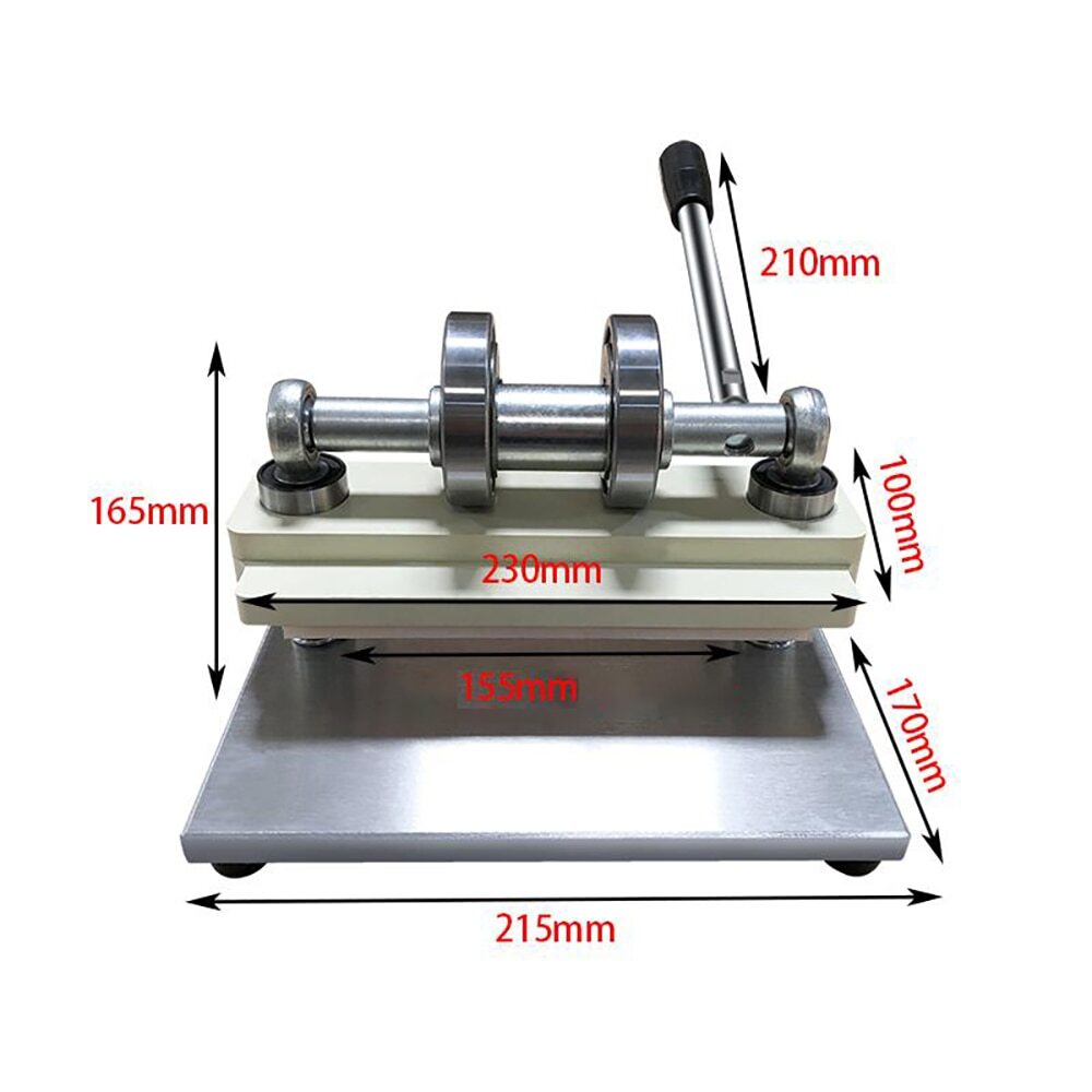 eBay Specification: Compact body: weight is 6.5KG, easy to carry Mirror bottom plate: the bottom is made of stainless steel mirror surface, which is more flat Upper pressure plate: PC material, reduce weight Rubber feet: make the body more stable, anti-slip design Universal fisheye: all-round strong pressure without friction Linear bearing: linear guide rail without resistance movement Stainless steel spring: high-quality spring with better toughness Eccentric wheel pressure: consistent with mainframe pressure Maximum Mold width: 155MM Maximum Mold height: 40MM Maximum Press Force: 0.8T