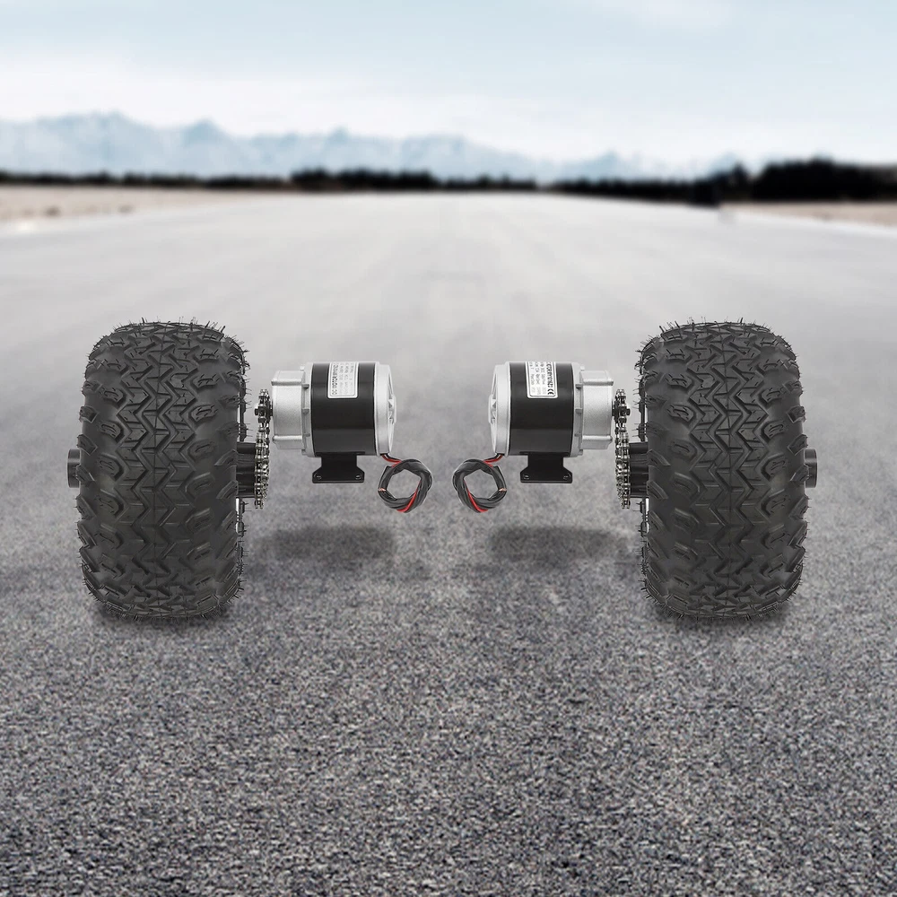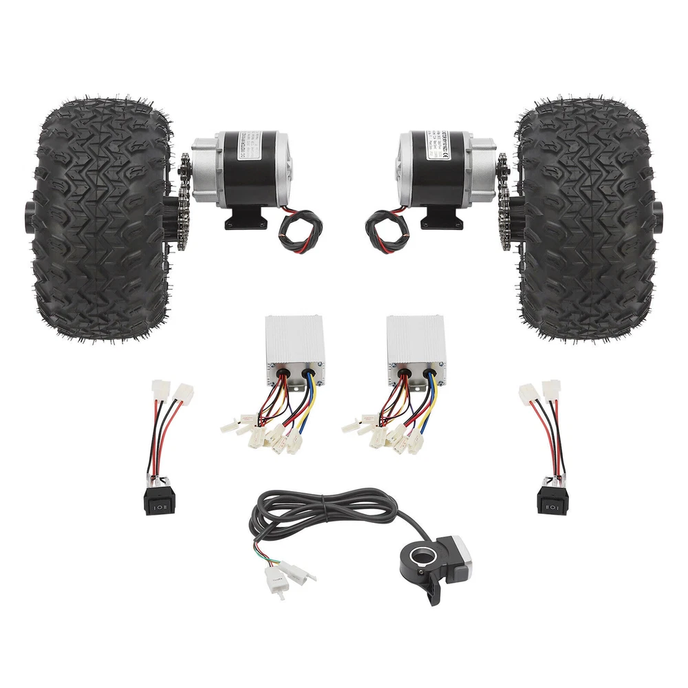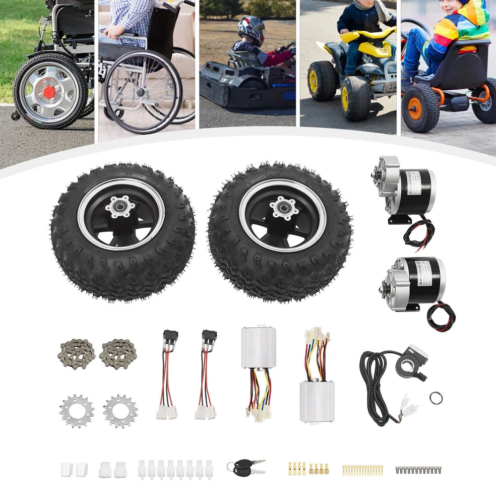 Double Wheel Motor Drive Wheel Conversion Kit For Electrical Beach Scooter 350W Description If you are looking for a professional and safe kit for your scooter, then our set can be an ideal choice. Our products are made of high-quality materials and are built to last. Complete accessories are available to meet your needs. Its simple structure allows you to install and use it quickly. It is efficient and safe to use, providing a guarantee for your riding. Key Features Made to Last: This product is made of high-quality copper, iron, aluminum, magnetic and rubber, sturdy, stable, rust-proof and wear-resistant, ensuring long service life and strong load-bearing capacity, up to about 330.69-440.92lbs. Complete Kit: This kit contains the complete set of accessories needed to modify your scooter without the need to purchase them separately. Matching kits will provide you with more stable and consistent performance. Powerful Motor: With a 350W brush gear motor, it can reach a maximum speed of 6.21mile/h. Compared to brushless geared motors, it has high starting torque, simple control and high adaptability. High Safety: The F insulation class and IP33 protect grade make it safe and reliable, so you can use it with confidence. Electrical Assistance: The motor kit provides electric assistance to reduce the physical burden on the rider, especially when riding uphill, against the wind or over long distances, making the ride easier and more enjoyable for riders of all ages and fitness levels. Environmentally Friendly : Scooters, as a green mode of transportation, are conducive to environmental protection and are in line with the current concept of low-carbon life. Ideal Gift: With its good performance, you can give it as a gift to your family or friends who love to ride, so that they can enjoy the fun of riding. Good Customer Service: We aim to provide quality products and services. If you have problems, please feel free to contact us. We will reply and solve the problem for you as soon as possible. Details Large Wheels: 10inch diameter wheels with anti-skid design can easily handle most road conditions. Reverse Gear Switch: It solves the problem of traditional scooters that are difficult to reverse in narrow spaces or on steep ramps. It enables you to maneuver your scooter more safely and conveniently when you need to reverse, improving the flexibility and practicality of your vehicle. Thumb Throttle: The thumb grip with power indicator allows you to easily adjust the motor boost level with a simple press of the thumb, while making it easy to see the status of use, improving the safety and convenience of control while riding. Application This product is suitable for small go-karts, electric wheelchairs and senior mobility scooters. Specification Material: Copper, Iron, Aluminum, Magnetic and Rubber Color: Black Assembly Required: Yes Motor Type: Brush Gear Motor Rated Voltage: 36V Output Power: 350W Unload Current: ≤2A Rated Current: ≤12.5A Unload Speed: 370rpm Rated Speed: 330rpm Rated Torque: 1.1N.m Efficiency: ≥80% Gear Ratio: 9:7:1 Insulation Class: F Protect Grade: IP33 Speed: 10km/6.21mile/h Wheel Diameter: 25.4cm/10in Axle Hole Diameter: 12mm/0.47in Package Size: 48*37*30cm/18.9*14.57*11.81in Load Capacity: About 150-200kg/330.69-440.92lbs Gross Weight: 16kg/37.48lbs Package Included 2* Wheels 2* Motors 1* Thumb Throttle (with Battery Indicator Lights & Button Switch) Other Accessories for Assembly Notes Please note that this product cannot change gears, you can adjust the speed by throttle. Please note that this kit does not include batteries, you need to buy batteries separately, lead-acid batteries and lithium batteries are available, recommended battery capacity is 36V 15Ah. Please note that the wheels are vacuum tires without tubes. Please allow the slight color difference caused by the shooting light and 1-3cm error due to manual measurement, and make sure you do not mind before ordering. Payment Delivery details Terms of sales About us Contact us Payment We accept ebay payment 。 Fees such as import duties, taxes are not included in the item price or shipping costs. These charges are the buyer's responsibility. Delivery details Shipping: 2-9 working days to: USA Terms of sales We maintain high standards of excellence and strive for hundred percent customer satisfaction. Feedback is very important to us. We hope that you contact us immediately before you give neutral or negative feedback, so that we can address your concerns. It is impossible to address issues if we do not know about them! About us Your satis faction is our ultimate goal. We work hard to earn your trust and future business. Our certified technicians have tested each item before shipping. The unit comes with 1 year limited warranty on all manufacturing defects. a) If you receive a defective item, you may return it or ask for a discount. Please contact us within 14 days after you receive the package. b) What you returned must be intact and in its original packaging as re? u. Customer is responsible for shipping costs of the returned item. c) We will cover the cost of shipping back t with the shipping rate indicated in the registration page. We will send you a new unit or refund the full payment you paid. Thank you. Contact us Business Hour Business Hour: Monday To Friday: 8:30 AM to 5:00 PM (Beijing China time) Due to time zones, our reply to your questions may not be immediately. But within above working time, we will reply your email within 24 hours. If it's non-workdays, please kindly be patient and wait till Monday. Please contact us with ebay message. Please feel free to contact us if you have any questions. Monday To Friday: 8:30 AM to 5:00 PM (Beijing China time) Due to time zones, our reply to your questions may not be immediately. But within above working time, we will reply your email within 24 hours. If it's non-workdays, please kindly be patient and wait till Monday. Please contact us with ebay message. 