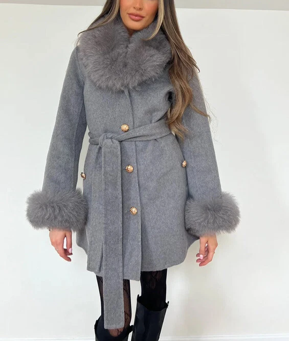 Wow sophisticated Ladies, The grey color Coat made from wool Bled trimmed with beautiful matching detachable real fox fur collar and cuffs. Been seen all celebrities and Instagram models , inspired by luxury designers style. delivery 5-7 business days Coat is available in all sizes. Please note coat is made from wool and polyester blend . Different colours available on my other listings About fox fur we use : domestic European red fox vulpes Non-endangered or non-threatened animal and follow US Fish & Wildlife regulations - International dispatch of animal products must follow all country laws All original materials we used are ranch raised animals, non wild &non-endangered or non-threatened animal and follow USA fish &wildlife regulations, (International dispatch of animal products are follow all country laws). All animals are carefully raised by our trust farmers in Europe and ethically picked by our professional fur experts from authoritative institutions to make sure the origin materials are ethically and high quality. Species : European fox & american fox, non wild &non-endangered or non-threatened animal All of our furs (Fox ) are from Fur farms, not wild anima ls.