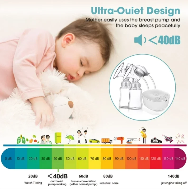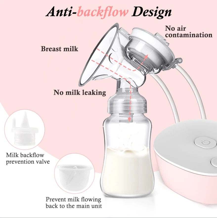 Efficient and Convenient: With 9-speed settings, this electric nursing breast pump allows you to customize the suction level to your comfort and maximize milk production. Double-Breast Design: Save time by pumping both breasts simultaneously with this double-breast breast pump. USB-Powered: No need to worry about finding an outlet, this breast pump can be powered by any USB port, making it perfect for on-the-go pumping. Silent Operation: Say goodbye to loud and disruptive pumping sessions with this silent breast pump. Easy to Clean: The breast milk bottle and pump parts are easy to disassemble and clean, ensuring a hygienic pumping experience. Description Electric silicone breast pump is an ideal breastfeeding tool for Moms. No noisy sounds, simple operation. The breast pump is made of food-grade silicone, not contain BPA, which is very safe. Massage-like suction, easy breast pumping! Features: Anti-Backflow, Anti-Overflow Dual-channel anti-backflow design, fully separated gas and liquid, will not pollute the host when overturned, milk will not be spilled and wasted, milk will not flow back, only up and down, long-term use, clean and pollution-free! Noise Free Performance Double electric breast pump is made with better craftsmanship. The baby won't be woken by the gentle milk sucking and low noise design of 40 dB. The electric breast pump has a longer battery life, and is easier to use. Mom can rest assure about baby sleep and use electric breast pump double freely. Ergonomics Technology 105°soft silicone breastshield, which conforms to the breast shape of most types of mothers, perfectly fits the breasts, allowing mothers to secrete breast milk in a relaxing and comfortable way. The breast pump has a soft edge that will not harm the skin and can be adjusted 360° to the most comfortable position. Give Mum more comfort and give babies more milk. Painless The electric breast pump has a soft edge and is made of food-grade soft silicone. Made of food-grade silicone and PP, it is skin-friendly, safe and BPA-free. It won't be painful while maintaining a good seal to get the best suction power. Breast pump can achieve effective pumping in a short time. It can save up to 50% of the time and produce 18% more milk. Easy to Clean The parts of the electric breast pump are easy to assemble and clean. Except for the electrical parts, all other removable parts are dishwasher safe. The pump is small size and portable, it's convenient to carry around, especially for mothers on work. Be Careful It is recommended to use automatic mode for the first time to gradually adapt the breast to suction. If the nipple is chapped or bitten by the baby, please do not use this product for the time being to avoid discomfort. Leaks? First of all, check whether the sitting posture is correct. The correct sucking posture is to sit sucking, lean forward 45 degrees, and keep the container upright after sucking.In addition, parts are also recommended to be replaced within 1 to 2 months. Pain? Solution: first check whether there are lumps in the breast? Is the nipple chapped?It is recommended to use the automatic gear first.And do not use too much force to connect the breast to the lowest position.In addition, it is recommended that the sucking time should not exceed 15 minutes. Specifications: Style: Double electric breast pump Material: PP, Liquid-silicone Gears: 9 gears for each mode Capacity: 150mlx2 Power Supply: USB Plug in Size: Host size: 9.35x8.15x4.05cm/3.68x3.21x1.59in, bottle size: 18x5.5cm/7.09x2.17in Package: Breast Pump host x1 Breast Bottle set x2 USB line x1 Health tips: 1. Wash hands before using a milk pump to milk 2. Breasts or nipples should stop milking when they feel pain 3. Do not put refrigerated breast milk and fresh breast milk together 4. After the defrosted breast milk is thawed, you baby can not finish drinking after 24 hours, please do not repeat the refrigerated breast milk Search keywords portable breast pump, baby buddha pump, breast pumps, wireless breast pump, breast pump hands free, electric breast pump, mom cozy pump, brestfeeding pump Electric Breast Pumps for Women Adjustable Mode& Suction Pain Free and Comfortable Fast USB Rechargeable Completely Closed System 3 Modes 9 Levels