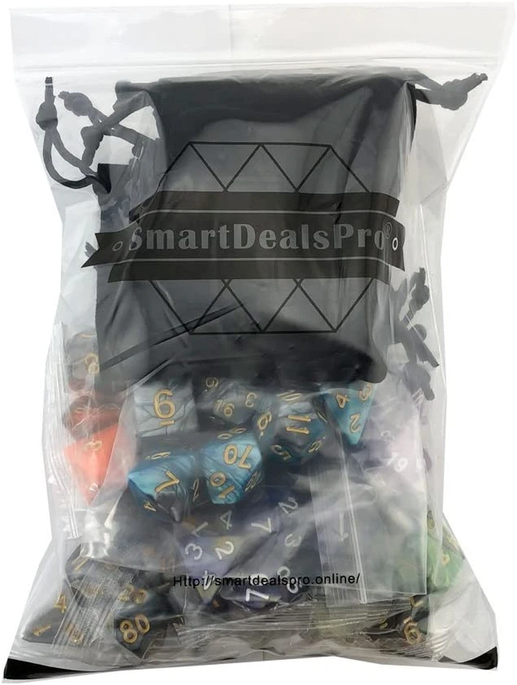 You will receive 6 x 7-Die dice sets with 6 small pouches and 1 big pouch. A single 7-die set contains one d20, one d12, two d10 (00-90 and 0-9), one d8, one d6, and one d4. Colors are the same with the first picture. Made of acrylic materials which is durable and hardwearing. Each die with large and easy to read golden numbers. Perfect for Table Games, Board Game, Dungeons and Dragons, MTG, RPG, Shadowrun, Pathfinder, Heroscape, Savage World, Yahtzee, Math Teaching, etc. TIPS: if you receive defective dices, missing dices sets or sets which have wrong colors, please contact us. Product Description This sets of 6 double- color series dices comes with 6 sets of 7-die dices (totally 42pcs) with 7 pouches. A single 7-die set contains one d20, one d12, two d10 (00-90 and 0-9), one d8, one d6, and one d4. Feature 1 You will receive 6 x 7-Die dice sets with 6 small pouches and 1 big pouch. A single 7-die set contains one d20, one d12, two d10 (00-90 and 0-9), one d8, one d6, and one d4. Feature 2 Guaranted no duplicate colors. Colors are the same with the first picture. Feature 3 Made of acrylic materials which is durable and hardwearing. Each die with large and easy to read golden numbers. Feature 4 Perfect for Table Games, Board Game, Dungeons and Dragons, MTG, RPG, Shadowrun, Pathfinder, Heroscape, Savage World, Yahtzee, Math Teaching, etc.