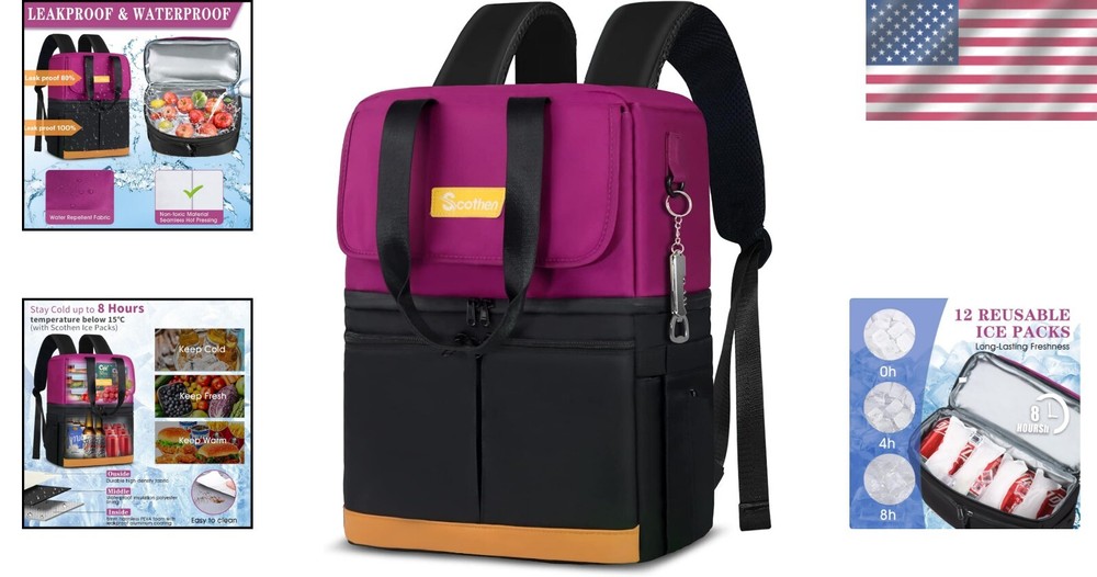 Double-Decker 36-Can Leak-Proof Cooler Backpack for Travel Adventures