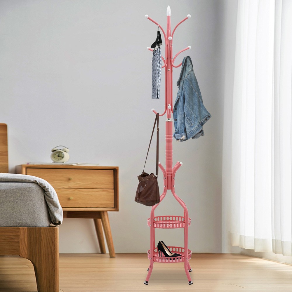 This coat rack is a stylish and sturdy addition to any home! The pink iron frame is durable and holds up to 33lbs, perfect for coats, bags, and hats. Easy to assemble and freestanding, it saves space while adding a chic touch. Love how functional and cute it is—great value for the price!