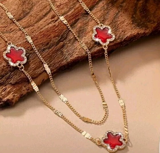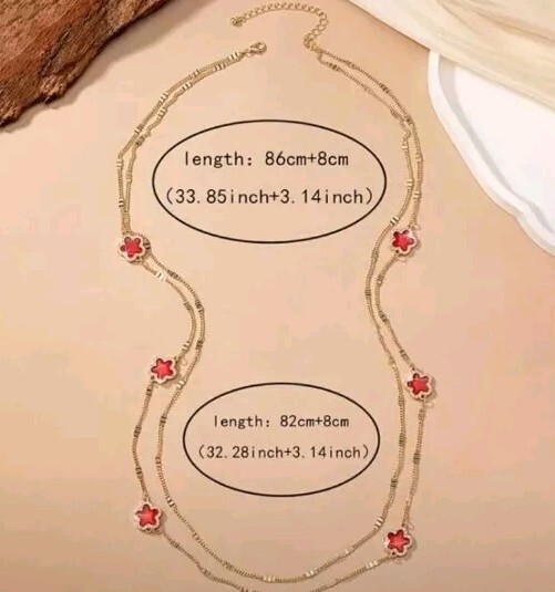 Main Stone: No Stone Features: Adjustable Type: Necklace Metal: Multi-Tone Gold Occasion: Wedding, Valentine's Day, Mother's Day, Engagement, Confirmation/Communion, Christmas, Christening, Birthday, Anniversary Closure: Lobster Pendant Shape: Clover Style: Chain, Layered Necklace Length: 86 cm Brand: Unbranded Base Metal: 14k gold plated Main Stone Colour: Red Colour: Gold Theme: Family & Friends, Flowers & Plants, Beauty, Art, Beach, Bohemian, Ethnic, Fairytale & Fantasy, Fashion & Costumes, Holiday, Love, Luck, Magic, Music & Dance, Retro Main Stone Shape: Clover