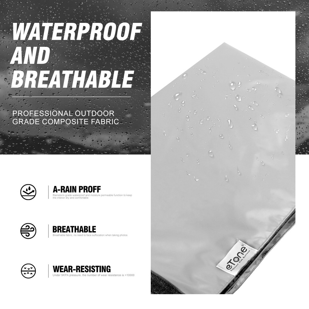 eTone Professional Dark Cloth Black Silver For 4x5 Camera Feature: * This dark cloth is designed to shield excess light from the outside, making you more convenient with focus, concentrate on the composition. * Composite layer fabric, which is shading, breathable and water proof. * It also can wrap the camera for protect your equipment, applicable to all brands of professional 4x5 large format camera. Material: It is made of fabric cloth, it's light weight, only 302g(0.67 lb) It is also very convenient to carry outdoors. Color: Inner color is black and outside color is silver. Size: 108cmx120cm. Package: 1x Dark Cloth Note: Camera and tripod not included.