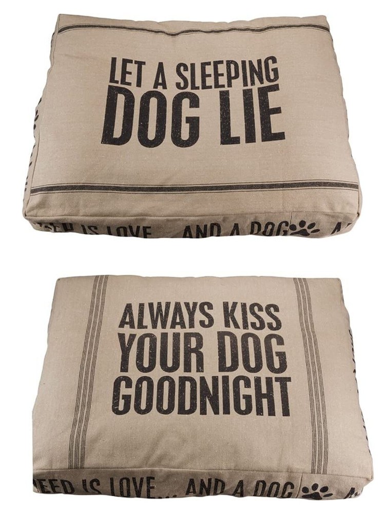 Cover 100% Cotton Imported Durable double-sided dog bed with flour sack style detailing 100% polyester fiber insert On front: Always Kiss Your Dog Goodnight; Back: Let a Sleeping Dog Lie Bed comes flat for eco-shipping; remove from bag, hand fluff heartily Authentic Primitives by Kathy pet bed designed in Lancaster, Pennsylvania; machine washable Size Large: Removable cover measures 20 x 26 x 6-Inches; Size XL: Removable cover measures 36 x 27 x 6-Inches; Please be aware there are many variances in color shades and color variate. These colors can also be affected by screen display settings. If item is not listed as Best Offer (Make an Offer) Pricing is as Listed Shipping Domestic shipping rates apply, discounts given for additional items. If Item is Free Economy Shipping - no shipping charges apply. Orders are packaged and shipped daily during normal business hours. Orders are not processed during weekends and national holidays. Items are shipped according to shipping method requested at time of purchase. Processing is 1-2 business days. Most orders are shipped within 24 hours Monday thru Friday. Morning orders are generally shipped same day. We only ship to confirmed address provided to us by Ebay. REFUSED DELIVERY OR UNABLE TO FORWARD: If a customer refuses to take delivery of an order, the customer will be charged all shipping fees associated with the order. LOST PACKAGES: We cannot control the delivery methods of the U.S. Postal Service Military Postal Service, UPS, DHL or Federal Express. All carriers may leave packages unattended at door steps, porches and back doors. It is critical that you take steps to secure your packages when they are delivered. If you do not receive a package and believe it was lost or stolen, please contact us through your order details and/or by phone. We will try to assist you in finding any misplaced package. Your local U.S. Post Office does have geo-tracking technology which tells them exactly where a package has been delivered. We accept all ebay forms of payment Return Policy: If you are not satisfied or would like to exchange your item, we provide a 30 day return policy. -Returns must be received within 30 days of initial request -Please package items carefully for return (items damaged on the return trip may not be refunded) -Refunds (less original shipping and return shipping costs) are issued within 1-2 business days of receipt of original item sent -Restocking fee may apply If the wrong item is returned the buyer must provide a prepaid shipping label if they want the incorrect item back. If the buyer does not provide a return label within 30 days, the item is forfeit. If the correct item is not received within 30 days, the refund will be denied The product(s) MUST be returned in the same condition as shipped. If the item is returned damaged or otherwise unsalable and out of return policy window the return will be denied or 50% of the refund will be withheld. Pet apparel is non-returnable if worn and/or covered with pet hair. Items must be returned shipped packaged appropriately. -If you are returning a shoe PLEASE NOTE: A shoe box is not a shipping box item should be returned in proper shipping container. -If state item defective or doesn't work - explanation is needed. -If you feel description is inaccurate - please describe inaccuracy. We aim to show you accurate product information. Manufacturers, suppliers and others provide what you see here Feedback: - We appreciate positive feedback. -If for any reason there is a problem or concern with your order please contact us for a solution. We appreciate the opportunity to resolve any problem by contacting us before leaving negative or neutral feedback. - We pride ourselves on prompt, accurate service and making sure you are pleased with your shopping experience. THANK YOU FOR SHOPPING WITH US