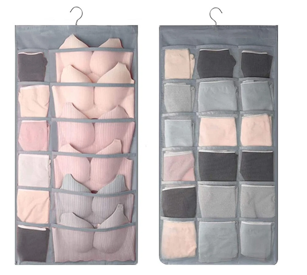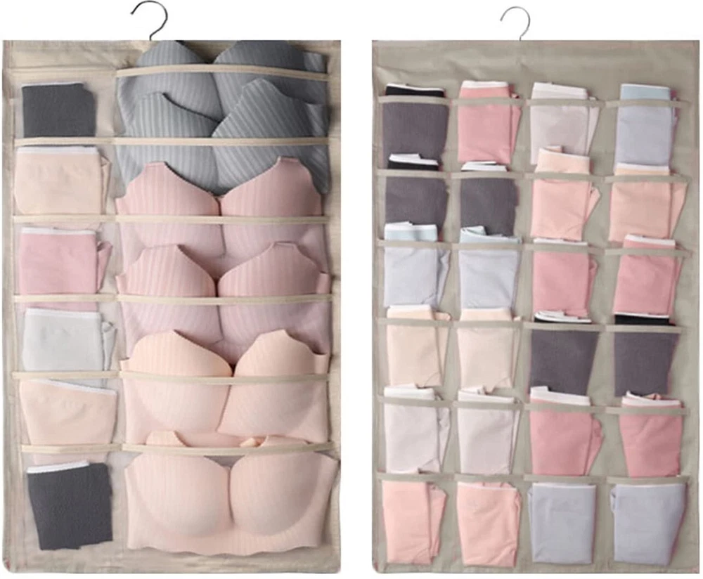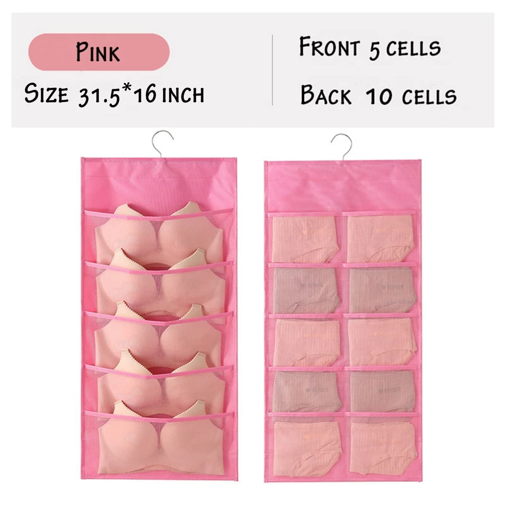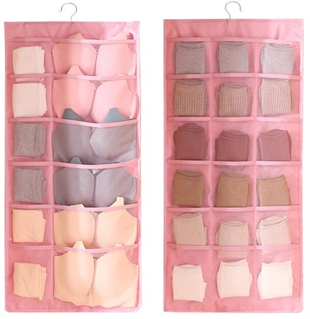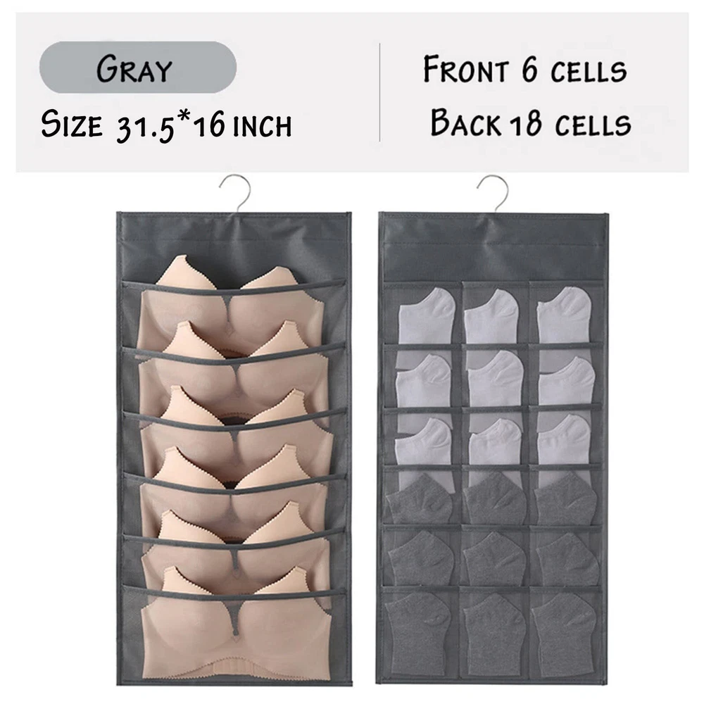 1.Eco-friendly and Durable Material: made of breathable nonwoven mesh cloth 2.Transparent, can make you see and find stuff easily. 3.Two-sided organizer, space saving. 4.Comes with a stainless-steel hanger. Hand wash, and it can dry in air quickly. 5.Versatile usage: you can hang this organizer in closet, laundry room, bedroom, storage room, dorm, travel RV etc. It will give you a cleaner space.