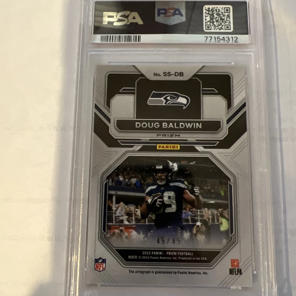 HomeDoug Baldwin 2022 Panini Prizm Sensation Signatures Purple Power Auto /49 PSA 9