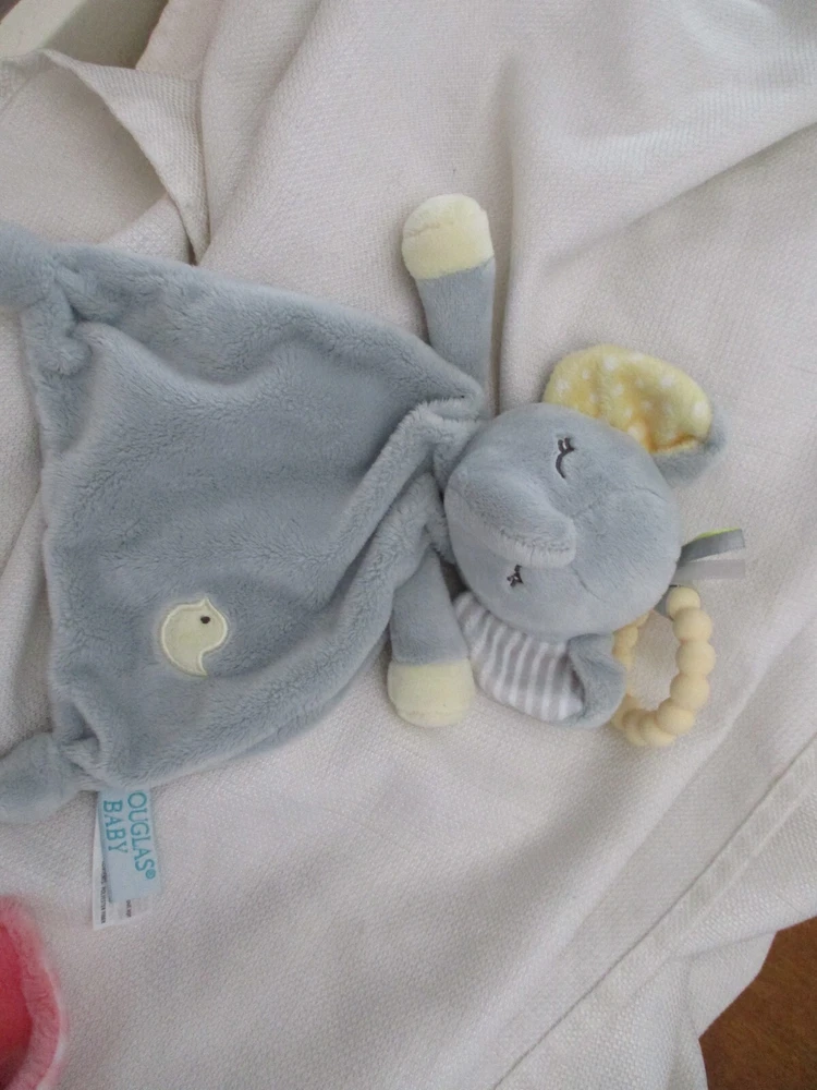 YOU ARE LOOKING AT good preowned CONDITION : Douglas Baby Knotted Feet Elephant Gray Lovey Security Blanket Teether Ring SO SOFT AND CUTE NO STAINS RIPS OR TEARS SMOKE AND PET FREE HOME.USA SHIPPING ONLY. PLEASE CONTACT ME THROUGH E-BAY ONLY. SEE MY OTHER ITEMS IN AUCTION. I AM HAPPY TO COMBINE SHIPPING. THANKS FOR LOOKING. PLEASE ASK QUESTIONS. I TRY TO DESCRIBE ACCURATELY AND WANT YOU TO BE HAPPY WITH PURCHASE SO IF ANY PROBLEMS, PLEASE CONTACT ME.