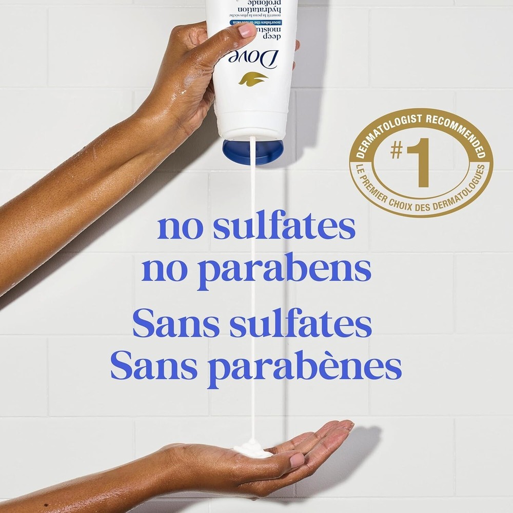 Dove Body Wash Deep Moisture for 24hr Lotion-Soft Skin Moisturizing Skin Cleanse Product Features 24-hour moisture: advanced micromoisture technology locks in hydration for a full day. Gentle & nourishing: sulfate-free and ph-balanced formula respects your skin’s natural barrier. Dermatologist recommended: trusted by skin care professionals for its gentle yet effective cleansing. Eco-friendly packaging: bottles made from 100% recycled plastic; 98% biodegradable formula. Vegan & cruelty-free: peta-approved, ensuring ethical and compassionate production practices. Product Description Experience the ultimate in skin hydration with dove deep moisture body wash, formulated to provide 24-hour lotion-soft skin. This nourishing body wash is enriched with dove’s 24hr renewing micromoisture technology, delivering millions of microdroplets that absorb deeply into the skin, leaving it feeling soft and smooth long after you’ve stepped out of the shower. Its gentle, sulfate-free formula cleanses without stripping moisture, making it suitable for dry and sensitive skin types.