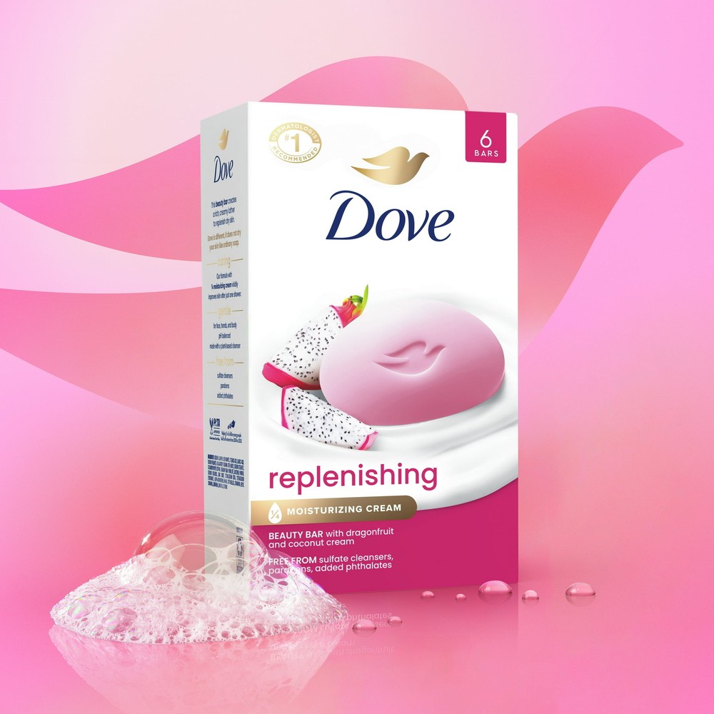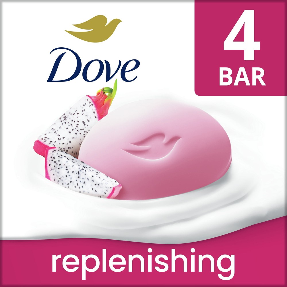 About this item Product details Dove Bar Soap Deep Nourishment Dragonfruit for Women Calm Replenished Skin, 15 oz 4 Count. This Dove Beauty Bar offers an indulgent & replenishing experience. Unlike ordinary bar soap, the Beauty Bar is made with moisturizing cream to deeply nourish skin and prevent dryness. This cleansing bar is uniquely created with plant-based cleanser for skin care that maintains pH balance and the natural skin barrier. Made with Dragon Fruit & Coconut Cream scent, this gentle skin cleanser is multi-purpose: gently washing away dirt and oil while moisturizing your skin. It is gentle enough for face, hands, and body use, allowing it as a facial cleanser and body soap bar. Treat yourself to the ultimate in skincare and experience the difference with this Dove Dragon Fruit Beauty Bar. For adult use. Dove Bar Soap Deep Nourishment Dragonfruit for Women Calm Replenished Skin, 15 oz 4 Count This Dove Beauty Bar offers an indulgent & replenishing experience. Unlike ordinary bar soap, the Beauty Bar is made with moisturizing cream to deeply nourish skin and prevent dryness. This cleansing bar is uniquely created with plant-based cleanser for skin care that maintains pH balance and the natural skin barrier. Made with Dragon Fruit & Coconut Cream scent, this gentle skin cleanser is multi-purpose: gently washing away dirt and oil while moisturizing your skin. It is gentle enough for face, hands, and body use, allowing it as a facial cleanser and body soap bar. Treat yourself to the ultimate in skincare and experience the difference with this Dove Dragon Fruit Beauty Bar. LOCK IN MOISTURE: Formulated with moisturizing cream, this Beauty Bar and gentle skin cleanser leaves skin instantly soft and smooth with lasting nourishment EFFECTIVE CLEANSER: Gently wash away dirt and germs, for use every day on body, face, and hands. This Dove Beauty Bar creates luxurious lather and won’t dry your skin like ordinary bar soaps No.1 DERMATOLOGIST RECOMMENDED: Formulated with moisturizing cream, Dove moisturizing Beauty Bar and gentle skin cleanser leaves skin instantly soft and smooth with lasting nourishment VERSATILE CLEANSER: The unique formulation for effective skin care can be enjoyed by the entire family as this all-in-one cleanser nourishes your face, body, and hands for beautiful skin THOUGHTFULLY MADE: This Beauty Bar is Certified Cruelty-Free by PETA and sulfate free cleansers, so you can feel good about switching from ordinary bar soap to Dove Beauty Bar CARE WITH YOUR CLEANSER: Our mission is to help the next generation of women develop a positive relationship with the way they look, helping them raise their self-esteem. For adult use.