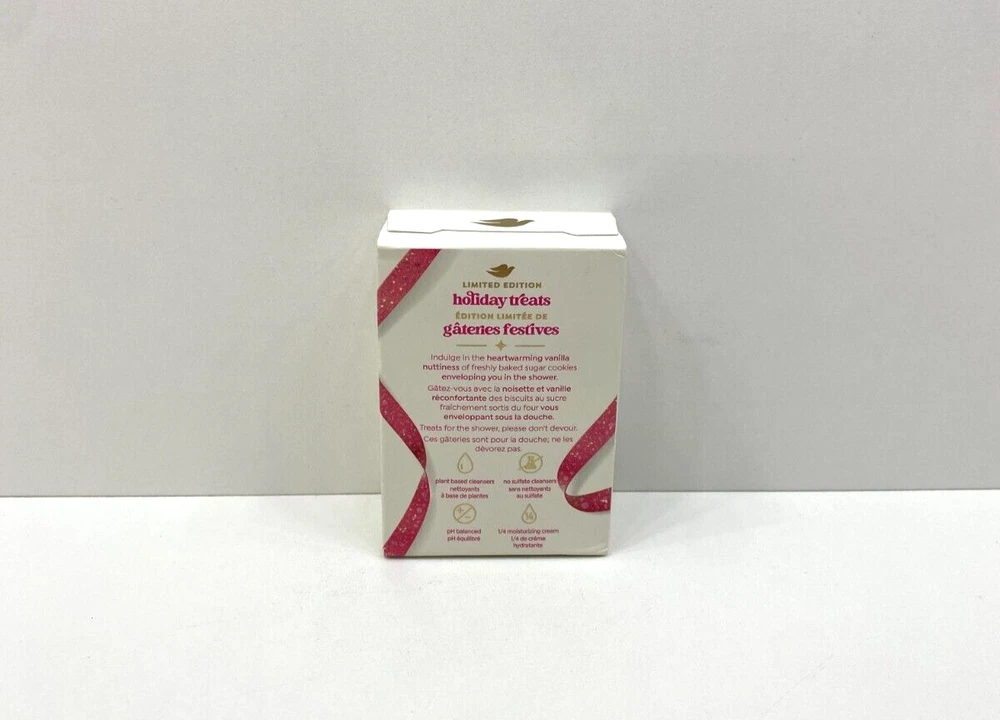 Dove Limited Edition Holiday Treat Beauty Bar Soap - Sugar Cookie Sprinkle, 5 Oz. Indulge in a Sugar cookie…now in a Beauty Bar Heartwarming scent of sweet vanilla in freshly baked cookies Plant-based cleansers & ¼ moisturizing cream to deeply nourish skin No sulfate cleansers Holiday season is the most magical and busiest time of the year. Make sure you schedule some me-time with our Sugar Cookie Sprinkle Beauty Bar, a Limited Edition Holiday Treat. Close the door, turn on the water, later up and be instantly transported to a holiday home of baked goodness with the scent of warm vanilla in freshly baked cookies. Without stepping foot in the kitchen. As the scent invigorates your senses, the plant-based cleansers and ¼ moisturizing cream are lathering up to deeply nourish your skin, leaving it soft to the touch. It may smell good enough to eat but remember - this treat is only for the shower, so don’t devour!