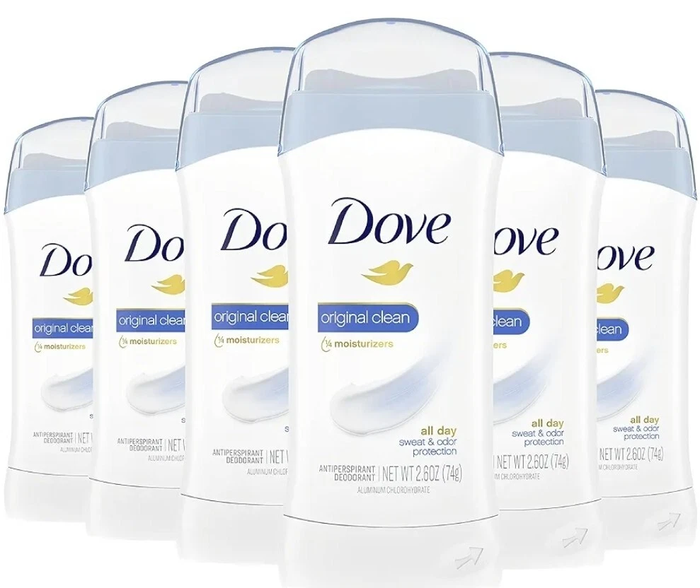 Dove Invisible Solid Deodorant Stick for Women, Original Clean 2.6 Oz, Pack of 6