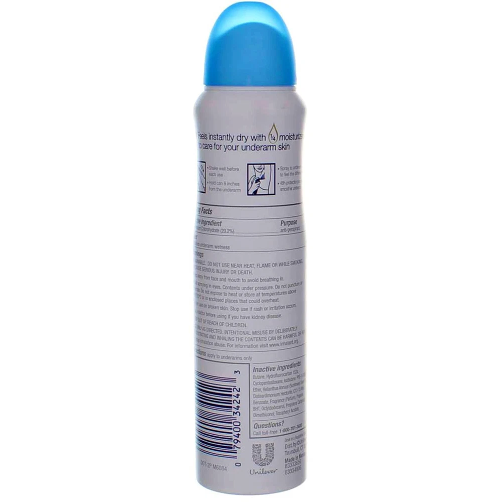 Dove Dry Spray Antiperspirant Deodorant Nourished Beauty 3.8 oz (12 Pack) Dove Advanced Care Long Lasting Women's Antiperspirant Deodorant Dry Spray Floral, the everyday essential that helps repair your skin barrier after shaving with every use. Indulge in the crisp apple, zesty citrus and soft powder fragrance in this antiperspirant, which refresh and soothe your senses as you go about your day. Did you know that when you shave About this item Dove Advanced Care Nourished Beauty Antiperspirant Deodorant Spray for beautifully soft, resilient skin 72-hour antiperspirant deodorant with sweat protection and underarm odor control CARING FORMULA: Featuring Pro-Ceramide Technology Antiperspirant deodorant spray that helps skin barrier repair, recover and improve from shaving Antiperspirant infused with a crisp apple and zesty citrus scent PETA Approved Vegan, alcohol-free antiperspirant All Day Protection: Provides long-lasting protection from sweat and odor Nourishing Formula: Contains moisturizing ingredients to leave skin feeling soft Fresh Scent: Light, refreshing fragrance leaves skin smelling clean Spray Application: Easy to apply with a quick, light mist Suitable for All Skin Types: Gentle formula is formulated for sensitive skin Ingredients Active ingredient: Aluminum Chlorohydrate (20.2%). Inactive ingredients: Butane, Hydrofluorocarbon 152a, Cyclopentasiloxane, Isobutane, PPG-14 Butyl Ether, Fragrance (Parfum), Helianthus Annus (Sunflower) Seed Oil, Disteardimonium Hectorite, C12-15 Alkyl Benxoate, Propane, BHT, Octyldodecanol, Propylene Carbonate, Dimethiconol, Tocopheryl acetate
