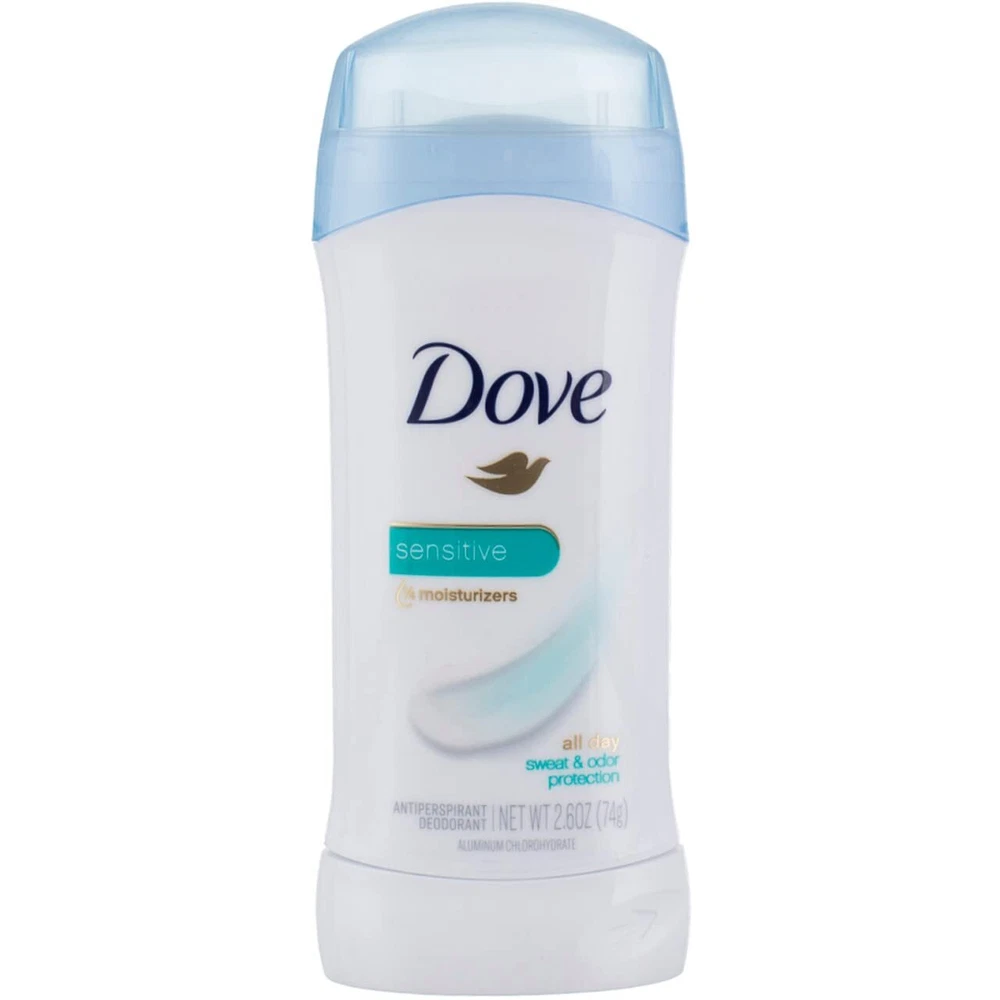Product Description Dove Sensitive Antiperspirant & Deodorant Invisible Solid 2.6oz For soft, smooth underarms and invisible protection that lasts all day, look no further than Dove Invisible Solid Sensitive Antiperspirant Deodorant Stick. Formulated with 1/4 moisturizers, this antiperspirant deodorant for women leaves your underarm skin feeling soft and smooth. The 0% alcohol (ethanol) formula helps your underarm skin recover from irritation caused by shaving, too. And it doesn't stop there. Dove Invisible Solid Sensitive Antiperspirant Deodorant Stick provides all day underarm sweat & odor protection Our antiperspirant deodorant for women, containing 1/4 moisturizers, cares for your underarm skin The 0% alcohol (ethanol) formula of our antiperspirant stick helps skin recover from underarm irritation that shaving can cause This woman's deodorant stick provides a light, clean fragrance custom designed for sensitive skin Antiperspirant deodorant stick glides on for easy application Globally, Dove does not test on animals, so all of our antiperspirant deodorants are cruelty free and certified by PETA Dove Invisible Solid Sensitive Antiperspirant Deodorant Stick provides all-day underarm sweat & odor protection Our Antiperspirant deodorant for women, containing 1/4 moisturizers, cares for your underarm skin The 0% alcohol (ethanol) formula of our Antiperspirant stick helps skin recover from underarm irritation that shaving can cause This women's deodorant stick provides a light, clean fragrance custom designed for sensitive skin Antiperspirant deodorant stick glides on for easy application Ingredients Active Ingredient: Aluminum Zirconium Tetrachlorohydrex Gly (15.2%);Inactive Ingredients: Cyclopentasiloxane, Stearyl Alcohol, Isopropyl Palmitate, Ppg-14 Butyl Ether, Talc, Mineral Oil, Hydrogenated Castor Oil, Fragrance (Parfum), BAHT, Helianthus Annuus (Sunflower) Seed Oil