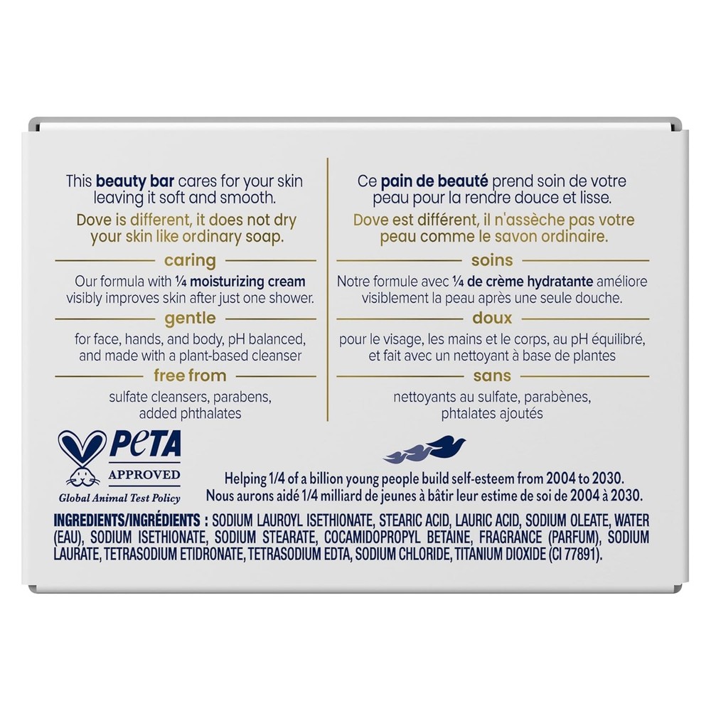 This Dove Beauty Bar is amazing—super creamy and moisturizing, leaving my skin soft and glowing. The ¼ moisturizing cream makes it feel luxurious, not drying like other soaps. Got a great deal on these 8 bars, and they last forever! Perfect for daily use, gentle enough for sensitive skin, and leaves a subtle fresh scent. Highly recommend stocking up when they're on sale!