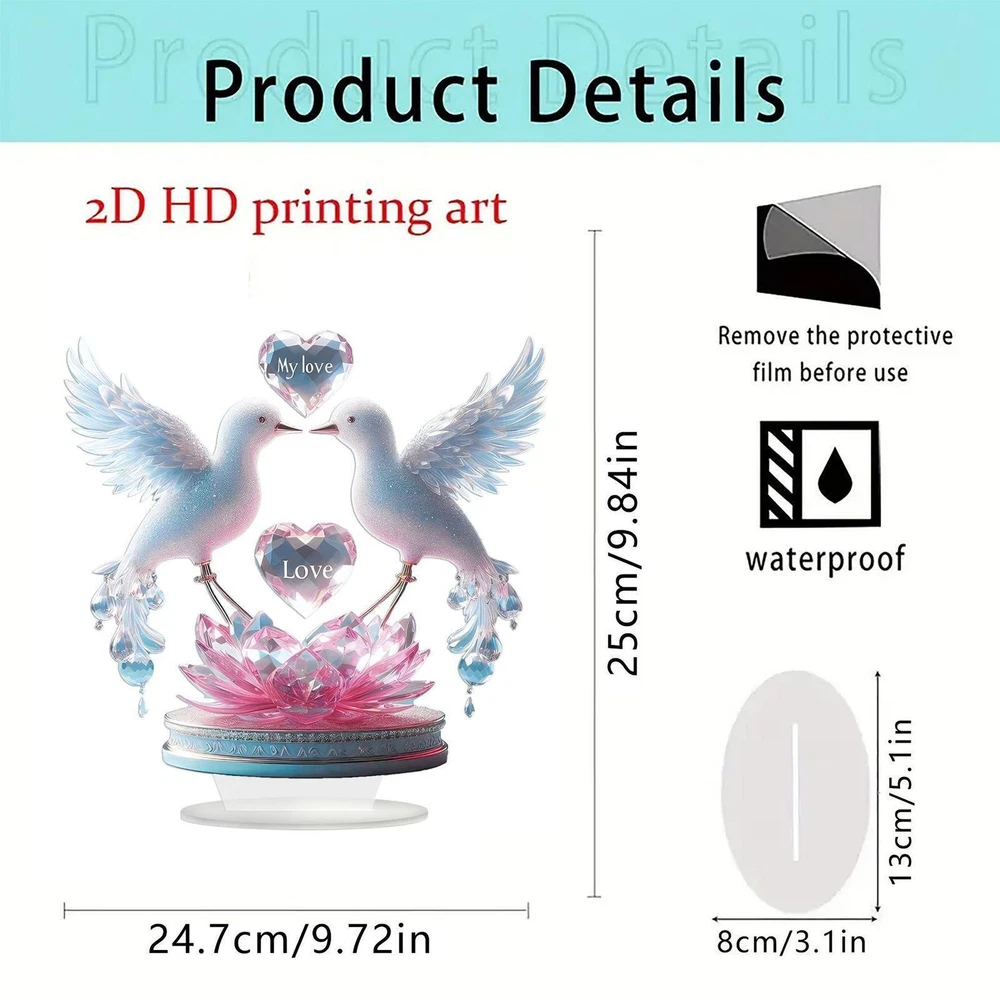 Store Home | Home & Garden | Musical Istruments & Gear | Toys & Hobbies | Sporting Goods | Health & Beauty | Consumer Electronics Doves Heart Acrylic Sign Decorative Plaque Valentine's Day Decoration 2D Description: 【Unique Design】: Delicate 2D flat couple doves and heart pattern acrylic sign Valentine's Day decoration, romantic and elegant, attractive and beautiful, is a nice addition to home decoration 【Valentine's Day Gift】: The love white pigeon Valentine's Day tabletop decoration is a nice gift choice for Valentine's Day, adding a romantic and elegant atmosphere 【Premium Material】: The decorative plaque is made of premium acrylic material, waterproof, clear printing, wear resistant, not easy to deform, sturdy and ensures a long time to use 【Home Decoration】: Delicate desktop ornament sign with a detachable base, is suitable for putting on the table, desk, shelf, office, bedroom, living room, nightstand, etc 【Wide Applications】: Not only is a Valentine's Day gift, but also suitable for engagements, anniversaries, weddings, Christmas, Thanksgiving Day, birthdays, etc. Note: Remove the protective film before use Specification: Material: acrylic Size Chart: 24.7 cm x 25 cm/9.72 inch x 9.84 inch Package Includes: 1 Acrylic Sign Note: Please allow slightly errors 1-2cm differences due to manual measurement. Payment Shipping Returns If you are bidding or ordering more than one item, the items will be combined into one order automatically thus you can pay altogether. If you want not to combine, please buy one and immediately pay one separately. Please pay what you win in 7 days. Unpaid Dispute will be automatically open if payment is not received after 7 days. If you pay the bill after received unpaid dispute, please email us to close the unpaid dispute. Because the unpaid dispute will not be closed automatically, and we may ignore it. The buyer is responsible for any applicable import duties and local taxes. Please verify with your customs before making your purchase. Please verify your address during checkout. We are not responsible for any wrong or undeliverable addresses. We are committed to give you the best customer service possible. If for any reason you are unsatisfied with a purchase, please contact us and we'll assist you with a prompt solution. Please let us work on the issues. We'd like to settle any problem in a friendly manner. Please do not open a case on eBay or PayPal, or leave any negative or neutral feedbacks directly! We always reply to messages within 2 business days (off-duty at weekend). Due to the difference of time zone between Hong Kong and your location, sometimes the answer will be delayed. If you do not get a response from us after 2 business days, please check your junk or spam mailbox. Unsatisfied product can be returned within 30 days from the delivery date . We can offer a full refund or exchange, but we are not responsible for return shipping cost. Please contact us to get a RMA number before sending out your return. Feedback: 1. Since your feedback is very important to our business's development, we sincerely invite you to leave positive feedback with four 5-Detailed Selling Rating (DSR) to us basing on your satisfaction with our commodity and service. It's just take you 1 minute. 2. Unfortunately, If you are planning to give us a neutral/negative feedback because of your bad buying experience with us, please contact us at any time so as to clear up your discontent and resolve the problem. Featured Products People always bought together with