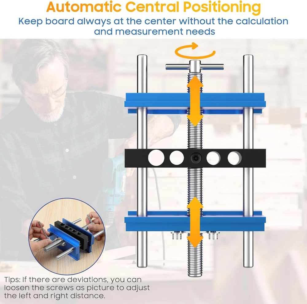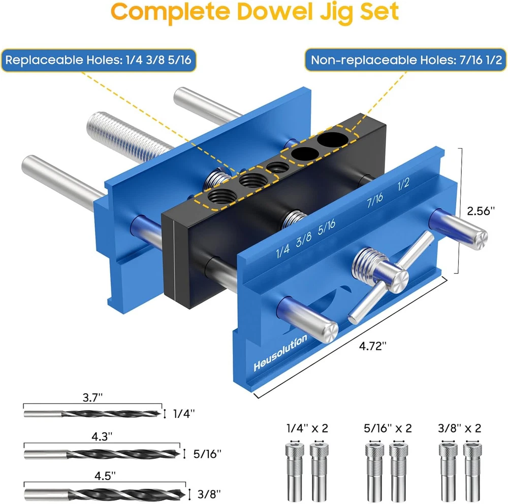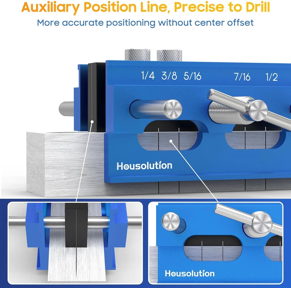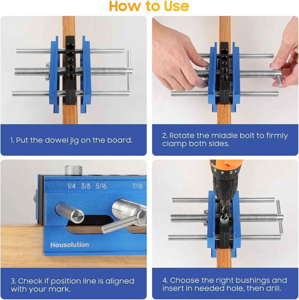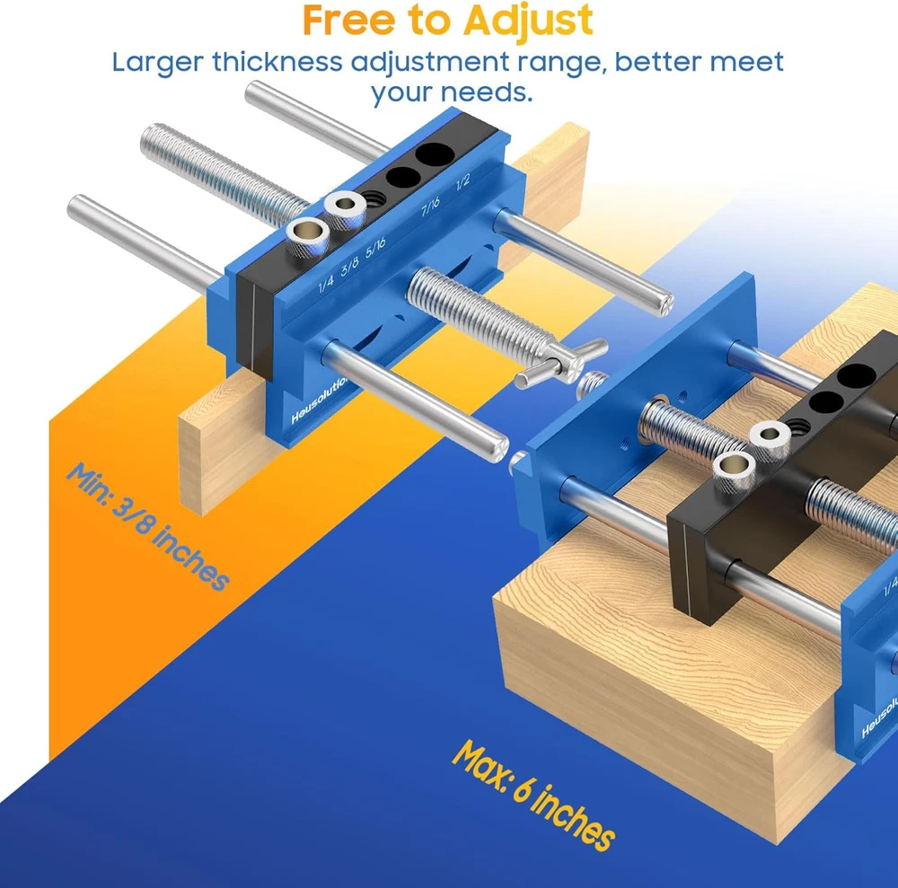 Dowel Jig, 6" Extra Length Self Centering Jig Kit With 6 Drill Blue Product Details Brand: Housolution Item dimensions L x W x H: 7.87 x 4.72 x 2.56 inches Color: Blue Style: Self-centering dowel jig Item Weight: 52.91 Ounces Manufacturer: Housolution Item Weight: 3.31 pounds Product Dimensions: 7.87 x 4.72 x 2.56 inches Item model number: Dowel-Jig-Blue Power Source: hand_powered Item Package Quantity: 1 Included Components: Dowel Jig Batteries Included?: No Batteries Required?: No Brand: Housolution Item dimensions L x W x H: 7.87 x 4.72 x 2.56 inches Color: Blue Style: Self-centering dowel jig Item Weight: 52.91 Ounces Manufacturer: Housolution 【Unique Advantages】 The Housolution self centering dowel jig kit has been upgraded, more accurate positioning without center offset (most other jigs on the market will have center offset), which will not leaving any gaps. Precise drilling can be easily achieved. 【Precision Drilling】 Made of aluminum alloy for aviation, doweling jig for woodworking is sturdy and durable, which can be used for a long time without worrying about wear and tear. When rotating the middle bolt, the aluminum clips on both sides of the self centering dowel jig will be tightened simultaneously, providing uniform and stable clamping pressure for clamping the workpiece, achieving automatic centering without the need for measurement or calculation. 【Larger Adjustment Range】 The drill jig is easy to adjust and can hold boards of different thicknesses from 3/8 inch to 6 inch. Suitable for creating different wooden pin joints and can be used to make precise butt joints, miter joints, and edge joints, as well as for mortise joints. 【Multiple Applications】 Dowel jig is designed specifically for drilling and wooden joints, with 5 standard SAE drill bit sizes which are named 1/4 inch, 3/8 inch, 5/16 inch, 7/16 inch, and 1/2 inch. Easily apply it to mortise and tenon joints, build furniture and repair tables, making it an ideal tool for panel furniture. 【More Accessories】The package includes 1*6'' woodworking doweling jig, 6*hardened steel bushings (2 each for 1/4 inch, 5/16 inch and 3/8 inch), 3*drills (each for 1/4 inch , 5/16 inch and 3/8 inch drill), 3*positioning rings. The complete dowel jig set makes it easier for you to position and punch holes on the board. If you have any questions about the product, please feel free to contact us. Customer satisfaction is our eternal pursuit.