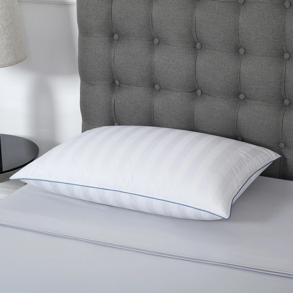 Experience Luxury Rest with the DownHaven Down Filled Pillow Enhance your sleep experience with the DownHaven Luxury Down Filled Pillow , the perfect balance of plush softness and supportive comfort. Designed with premium materials, this pillow offers unmatched luxury for all sleeping positions. Whether you are a side, back, or stomach sleeper, this pillow is tailored for ultimate relaxation. Key Features: Luxurious Cover: 500-thread count, 100% cotton with a sophisticated damask stripe pattern. Premium Fill: 650 fill power white down for cloud-like softness and support. Medium Density: Perfectly balanced to provide gentle yet firm support. Oeko-Tex Certified: Free from harmful chemicals, ensuring a safe and healthy sleep environment. Sustainable Packaging: Environmentally friendly design. Care Instructions: Machine washable for easy maintenance. Specifications: Brand: DownHaven Dimensions: 20" L x 28" W x 5.5" H Weight: 2 lbs Material: 500-thread count 100% cotton cover Fill Material: White down (650 fill power) Pillow Size: Jumbo Support Level: Medium Sleep Position: Suitable for all sleeping positions Care Instructions: Machine wash cold on a gentle cycle. Use an extra spin cycle to reduce drying time. Tumble dry on low until thoroughly dry. Avoid ironing; dry cleaning recommended for best results. Condition: Brand new, sealed in sustainable packaging. Shipping Details: Fast shipping with care. Delivery available to most regions (restrictions apply to certain ZIP codes, P.O. boxes, and remote areas). Transform your nightly rest with the DownHaven Luxury Down Filled Pillow —where elegance meets ultimate comfort. Order now and enjoy free shipping!