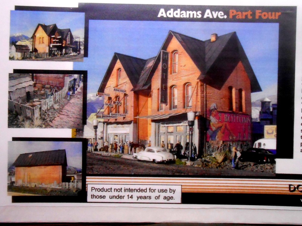 Special this week! Special pricing + will also send a 60 piece unpainted set of detail castings and clutter (a $25 value) at no extra charge! Save $50! The best kits you can buy for 3 reasons!! One. Attention to detail & realism. All of the original pattern work is hand carved by an artisan for maximum realism. This allows Downtown Deco kits to include details you'll never find in other kits. Missing and chipped bricks, "ghost' staircases and walls, crumbling stucco and cracked and weathered concrete. If you can find it in real life you'll see it in a Downtown Deco kit! Two. Ease of construction. We try & keep the kits simple so you can get to the fun part (painting & weathering the buildings) in about 30 minutes. Our instructions are second to none, with complete, easy to understand instructions that walk you through each and every step along the way, from basic assembly to painting & weathering the model. Three. Customer service. Got a question about weathering your model? Give us a call. End up with a broken part somehow? We'll replace the parts for free. Paint your first hydrocal kit & you're unhappy with the way it came out? Drop us an email & we'll send you a second set of castings so that you can try again. Why do we do this? Because we want you to have fun with our kits and to be happy with your finished results. If you need anything at all touch base with us & we'll help you out. Our customer service is second to none. 100% positive feedback! This model kit Addams Ave Part Five features hydrocal castings chock full of the funky detail we're known for, full color signs, plastic doors & windows & complete, easy to understand instructions. This kit is bound to generate more comments from your guests than a boxcar full of quaint little depots! Look at the detail in the stucco, stone & brickwork 6 1/2" x 12" footprint. Cheers!