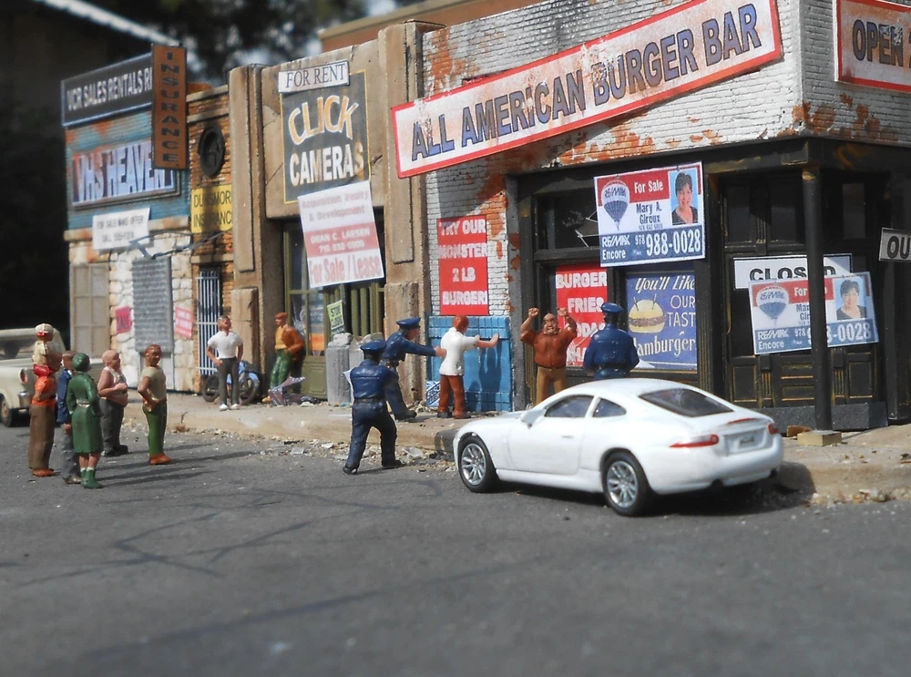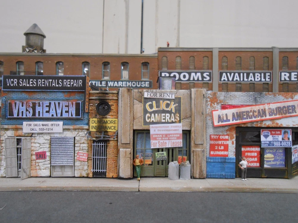 Special of the week! I'll throw in one of our unpainted details casting sets (60 pieces!) at no extra charge. Save $25! The best kits you can buy for 3 reasons!! One. Attention to detail & realism. All of the original pattern work is hand carved by an artisan for maximum realism. This allows Downtown Deco kits to include details you'll never find in other kits. Missing and chipped bricks, "ghost' staircases and walls, crumbling stucco and cracked and weathered concrete. If you can find it in real life you'll see it in a Downtown Deco kit! Two. Ease of construction. We try & keep the kits simple so you can get to the fun part (painting & weathering the buildings) in about 30 minutes. Our instructions are second to none, with complete, easy to understand instructions that walk you through each and every step along the way, from basic assembly to painting & weathering the model. Three. Customer service. Got a question about weathering your model? Give us a call. End up with a broken part somehow? We'll replace the parts for free. Paint your first hydrocal kit & you're unhappy with the way it came out? Drop us an email & we'll send you a second set of castings so that you can try again. Why do we do this? Because we want you to have fun with our kits and to be happy with your finished results. If you need anything at all touch base with us & we'll help you out. Our customer service is second to none. 100% positive feedback! They say that a picture is worth a thousand words so take time to check these out....this isn't an ordinary dime a dozen plastic kit like you see on every other layout, this kit is something special. You just have to ask yourself, "Do I want my layout to look like every other guy's I see in the magazines or do I want to make my layout look unique? Our first brand new HO Scale kit in a long time! A This kit features hydrocal castings (new master patterns chock full of all of the character & detail you've come to expect from me), full color signs, plastic doors & windows, faux razor wire and completely illustrated, easy to understand assembly, painting & aging instructions. I like to see people have fun with my kits & have them happy with the results so if any where along the way you've got a question or problem you are welcome to call me directly at my shop & I'll be glad to help you. Approx 12" x 6". Figures/vehicles not included. Cheers! Randy Pepprock Downtown Deco Cheers!
