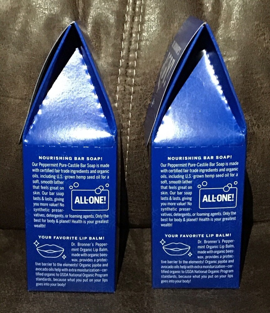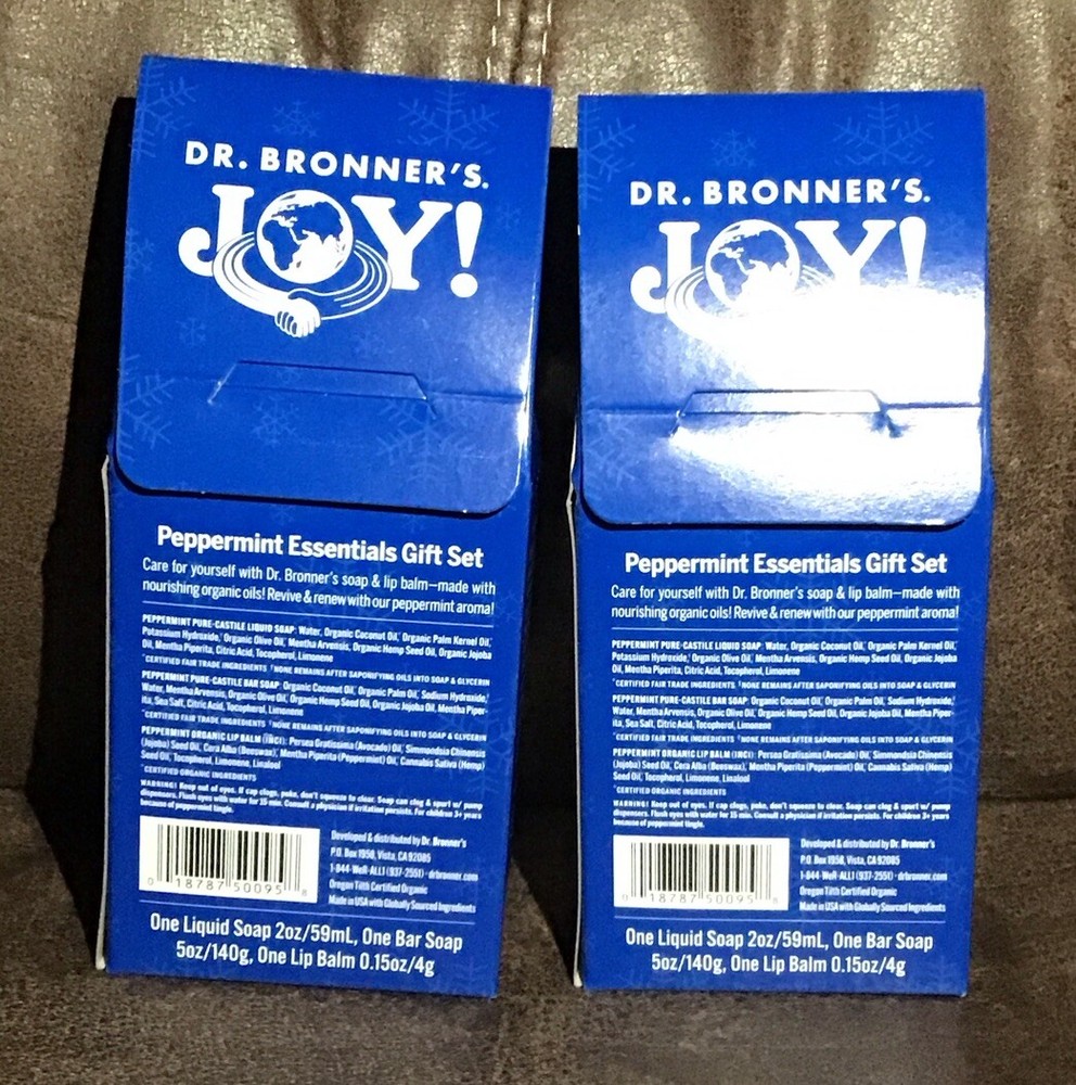 x2 Dr. Bronner's Castile Bar Soap Lip Balm Essential Gift Set Peppermint Joy. Condition is new, sealed box. Shipped with USPS Ground Advantage. Free shipping!